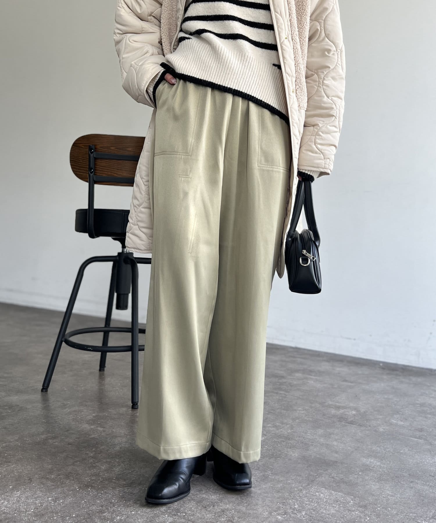 カジュアルになりがちなイージーパンツですが