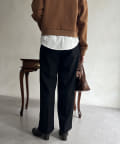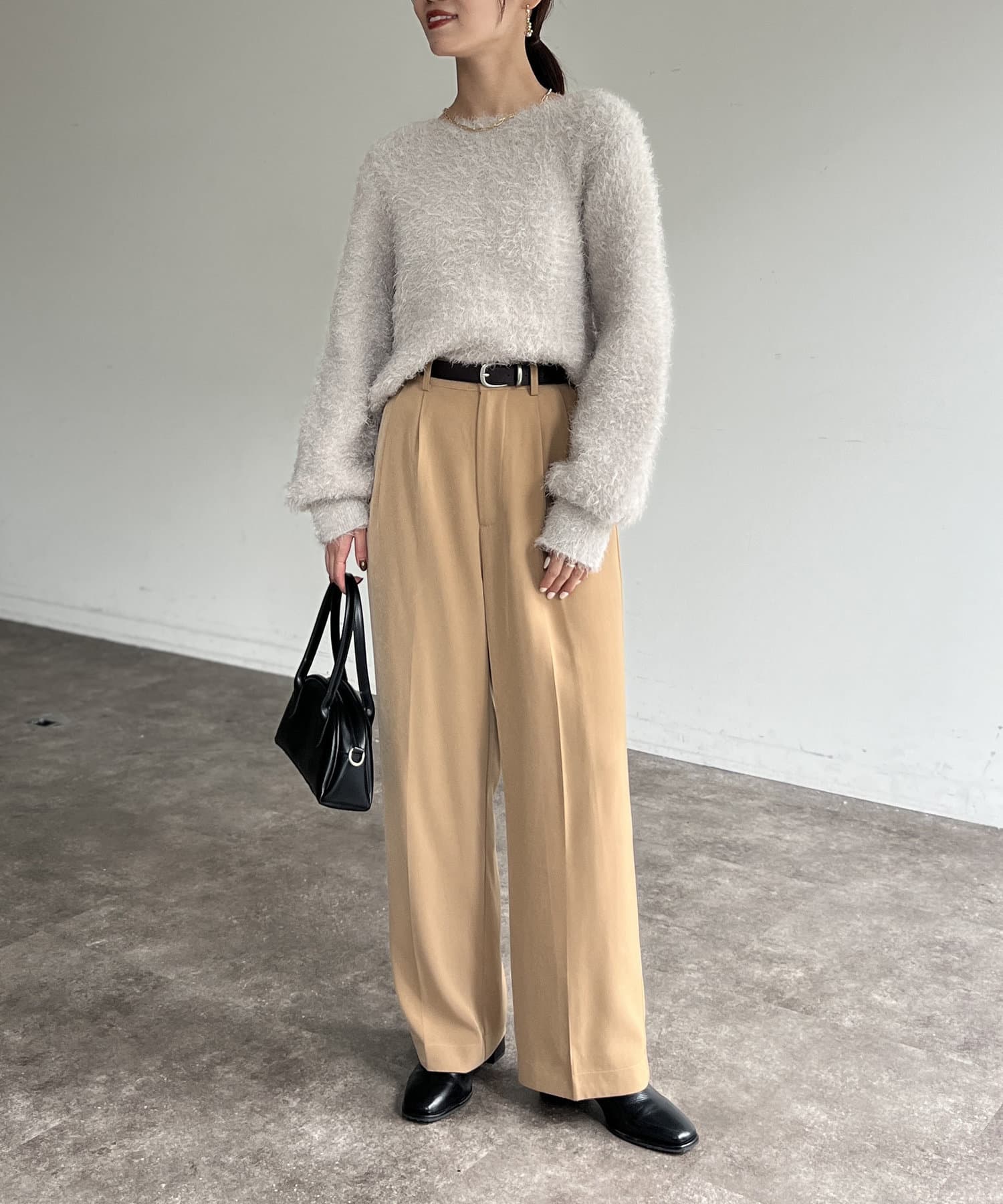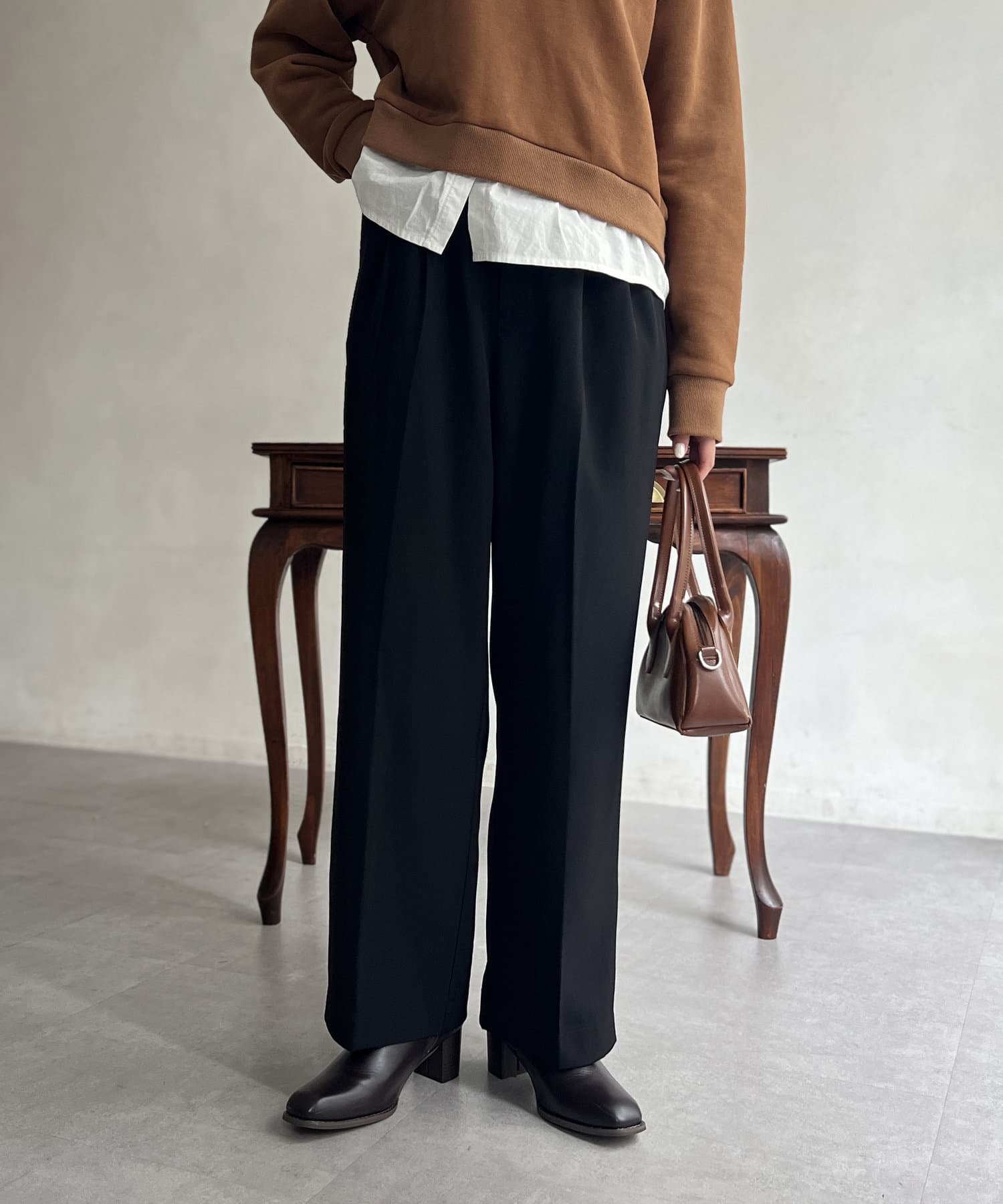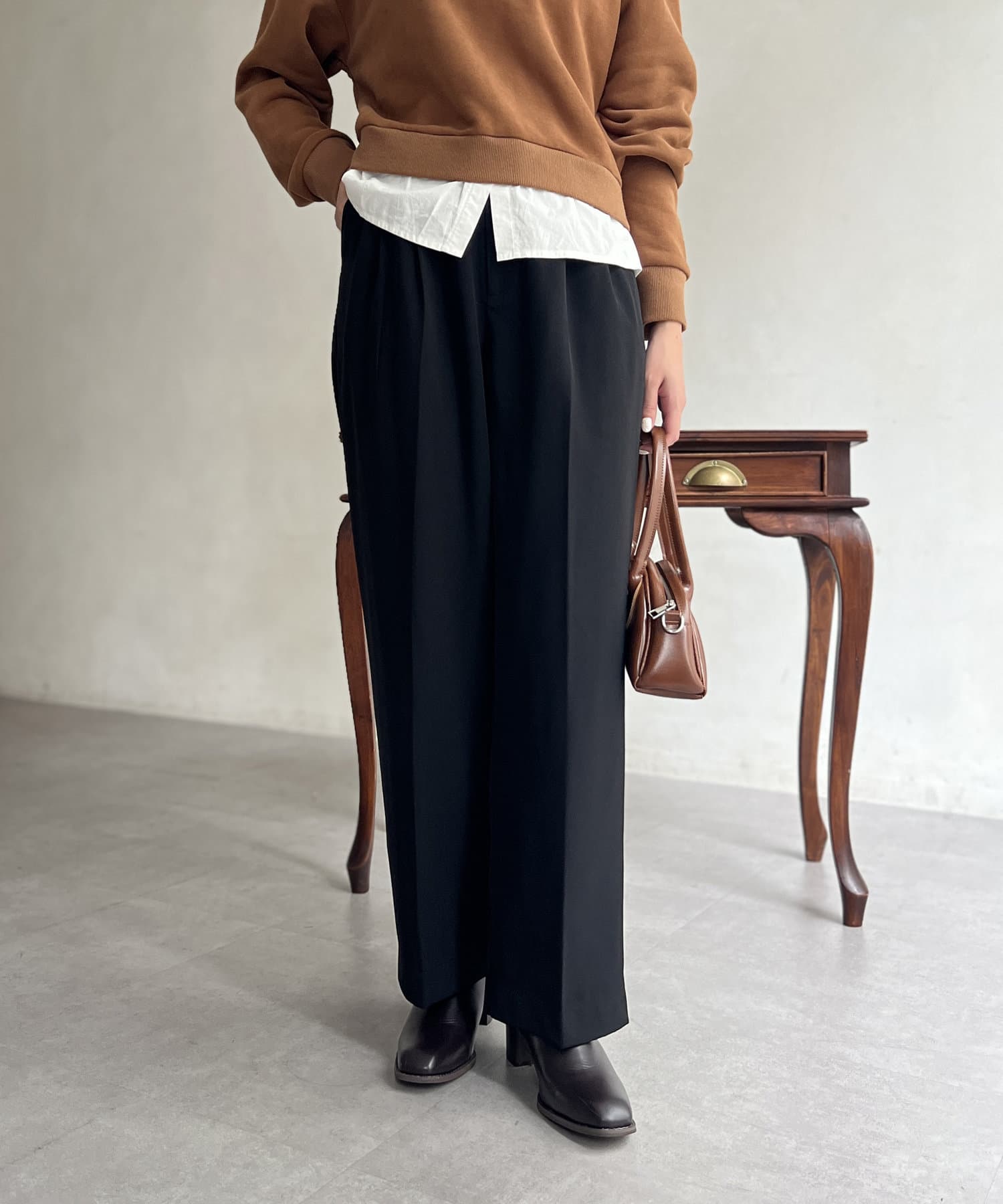 張りのある生地感はきれい見えするのでオンオフ問わず使える万能ボトムスです。