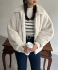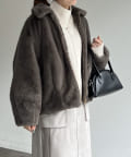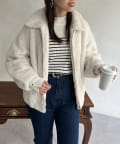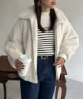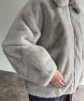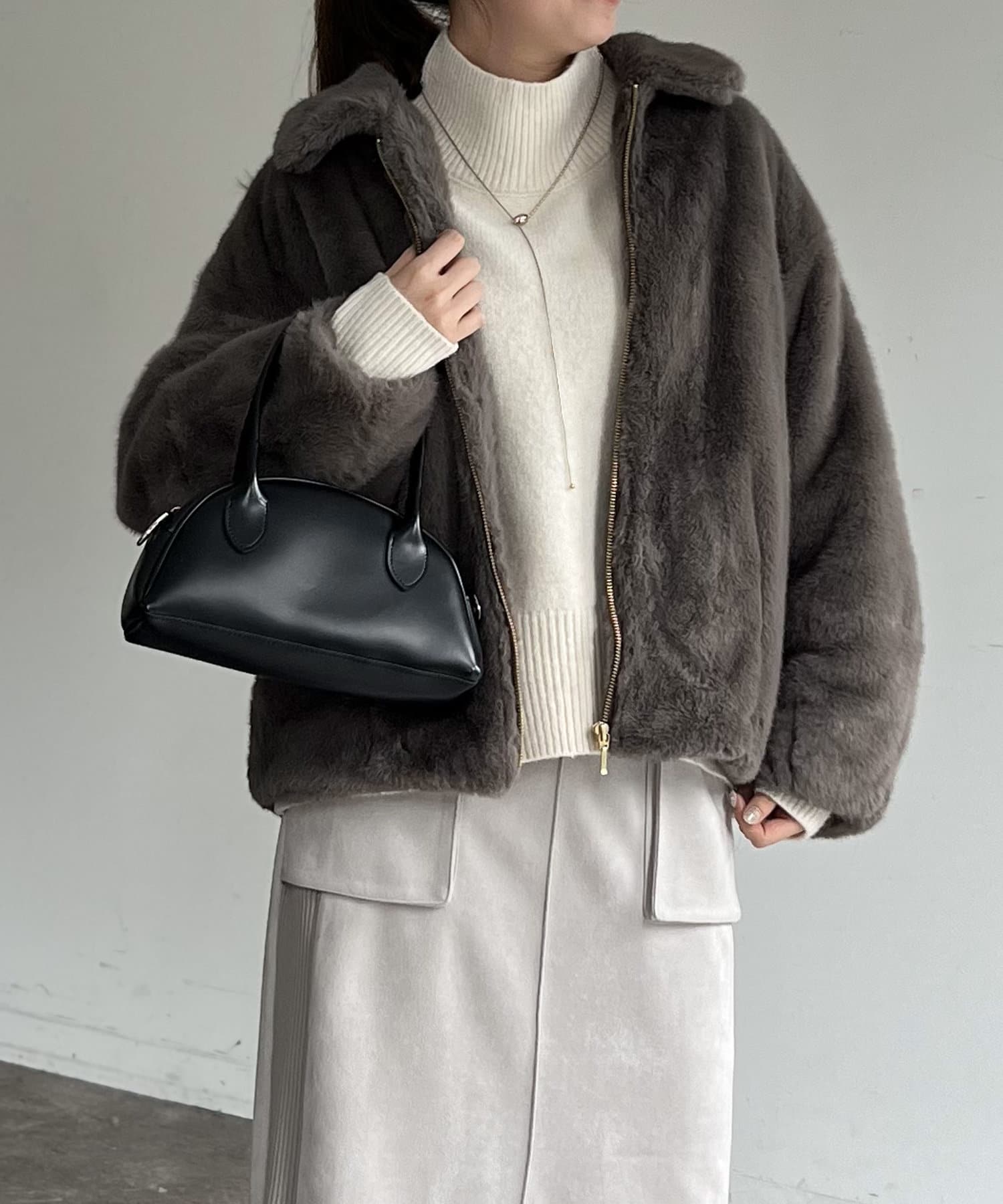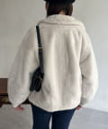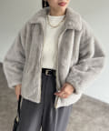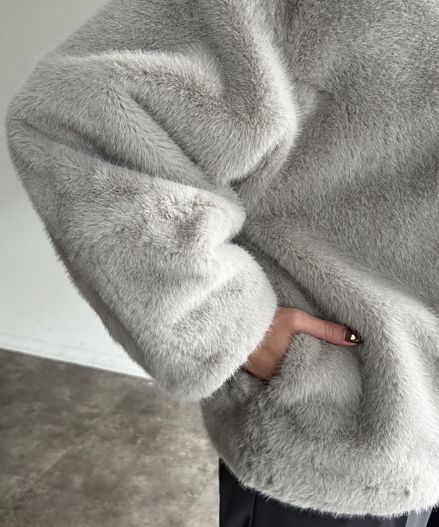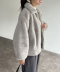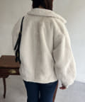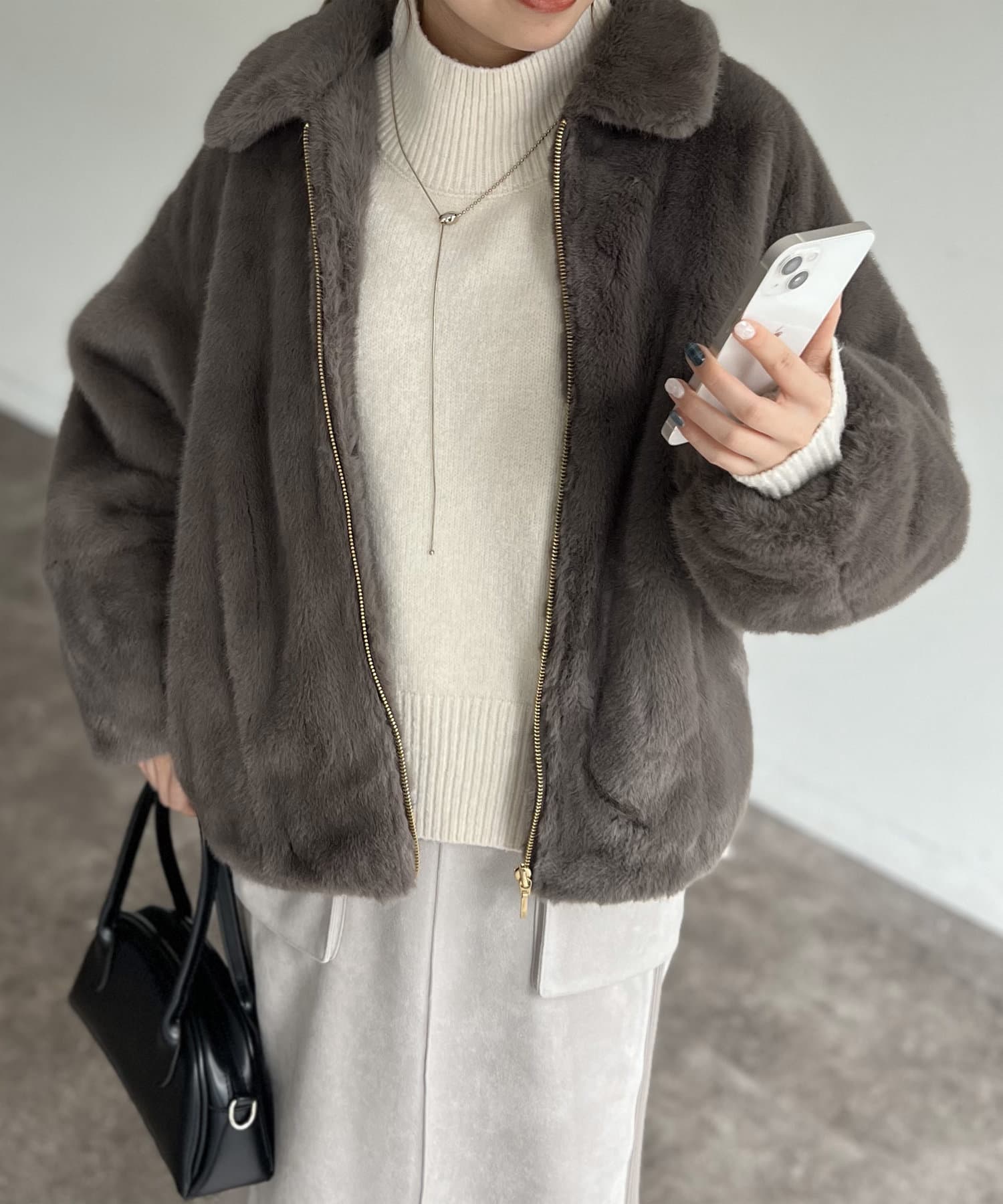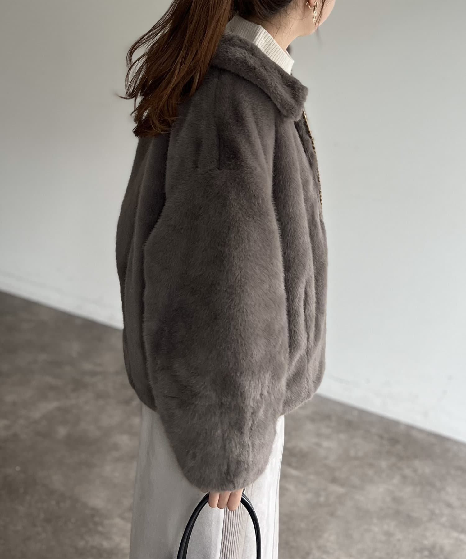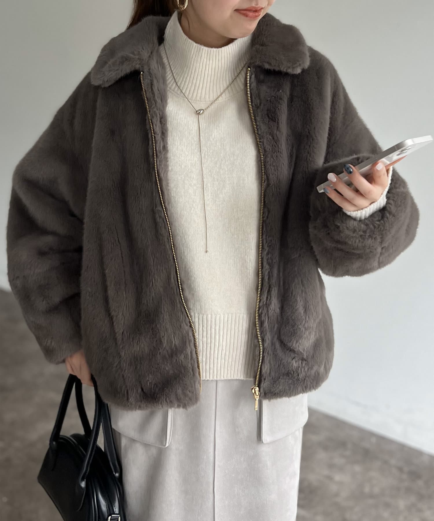 ふわふわの柔らかいフェイクファー素材のジャケット。