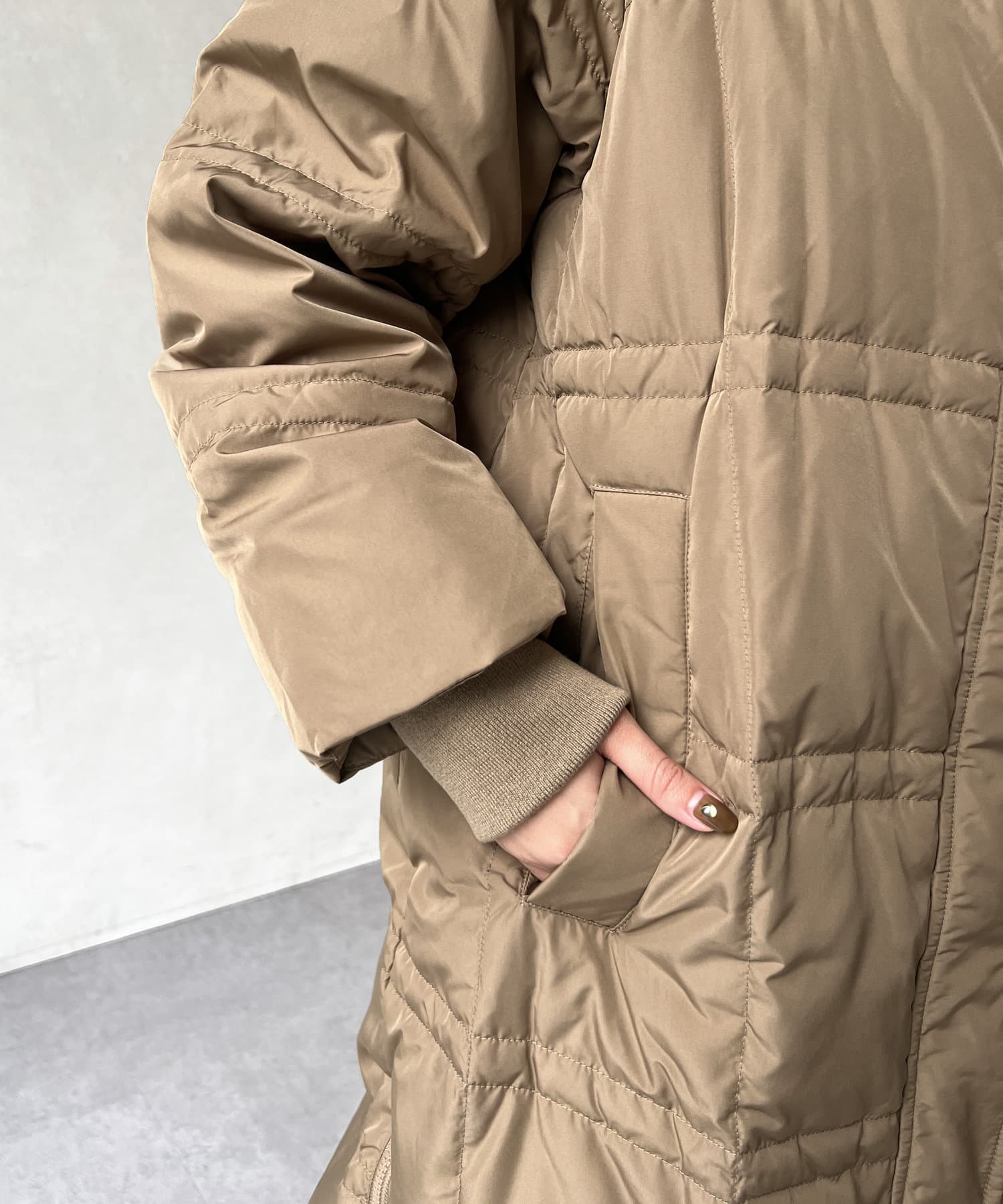 縫い目の錯覚でダウンなのにスッキリ見えます