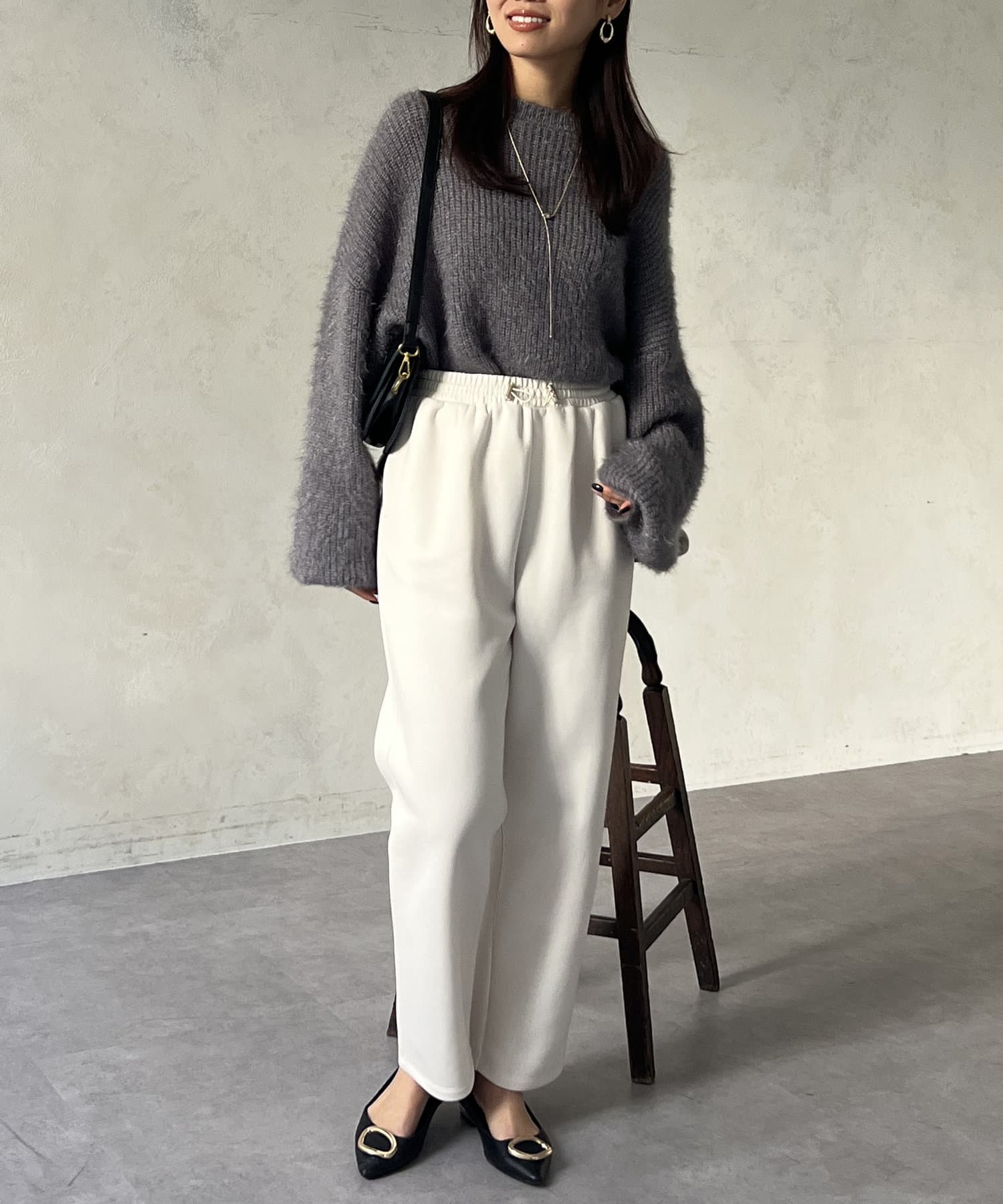 • Chez toi(シェトワ) 軽量ボンディングウエストドロストパンツ