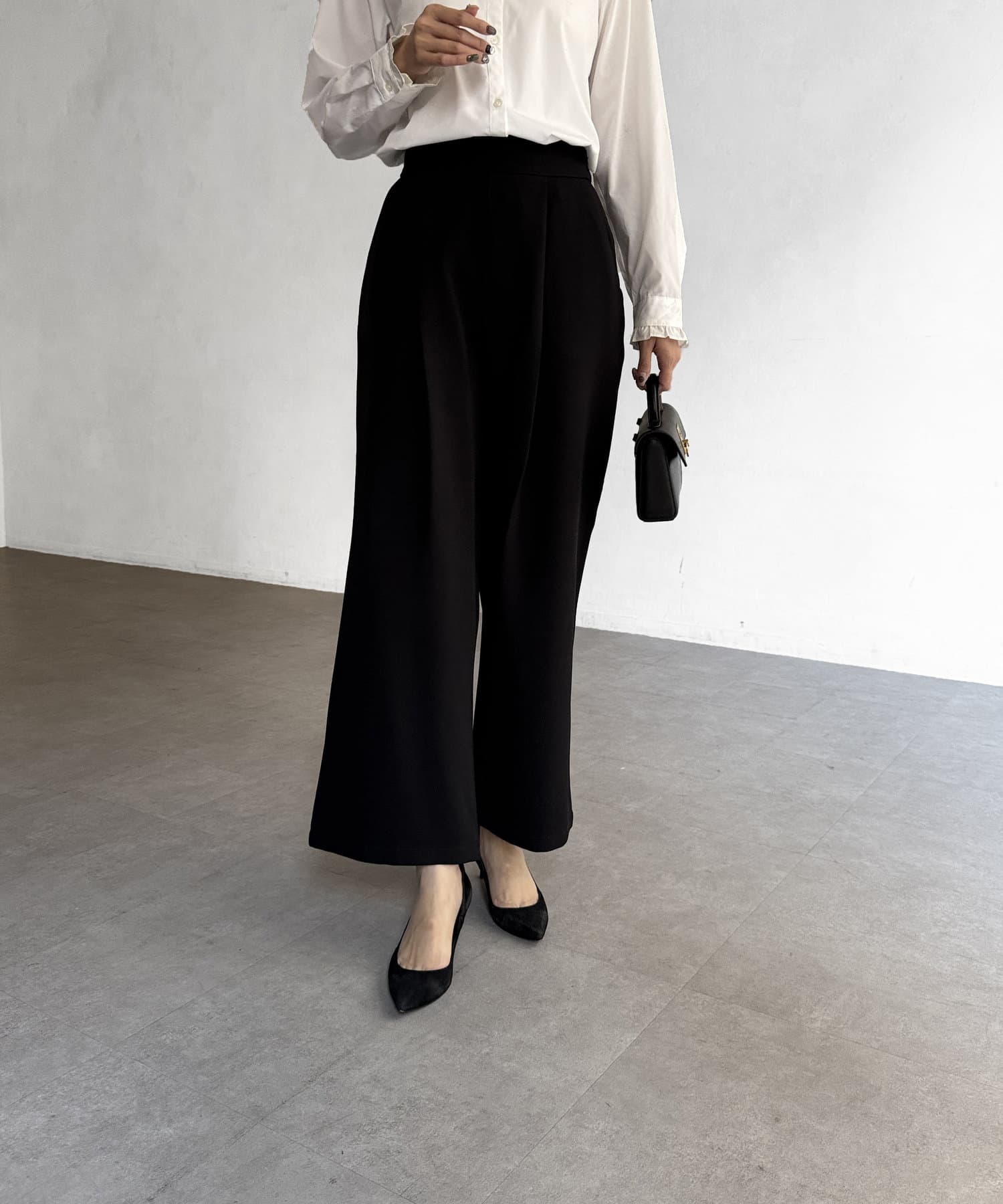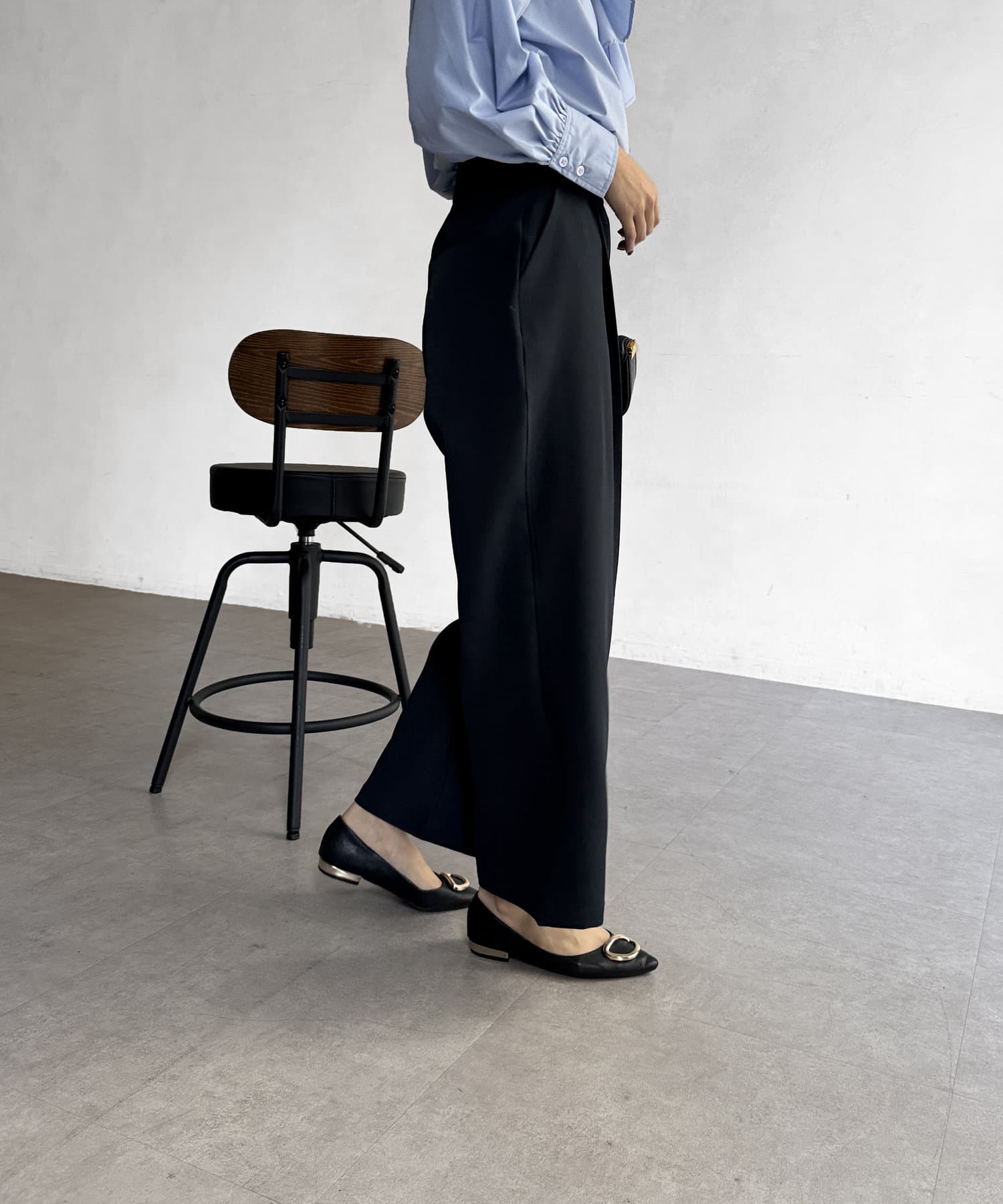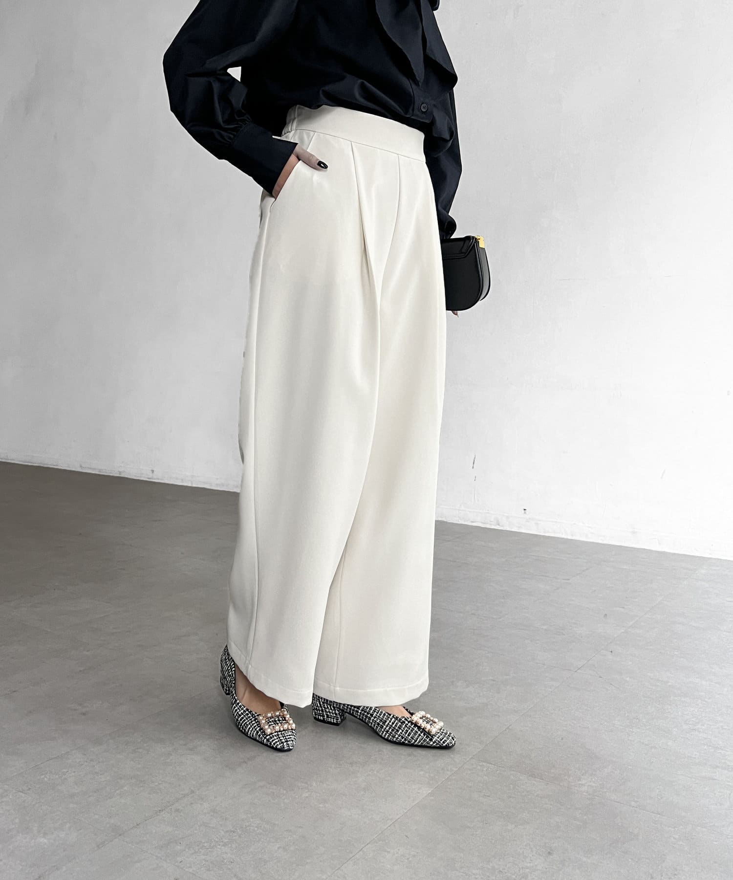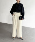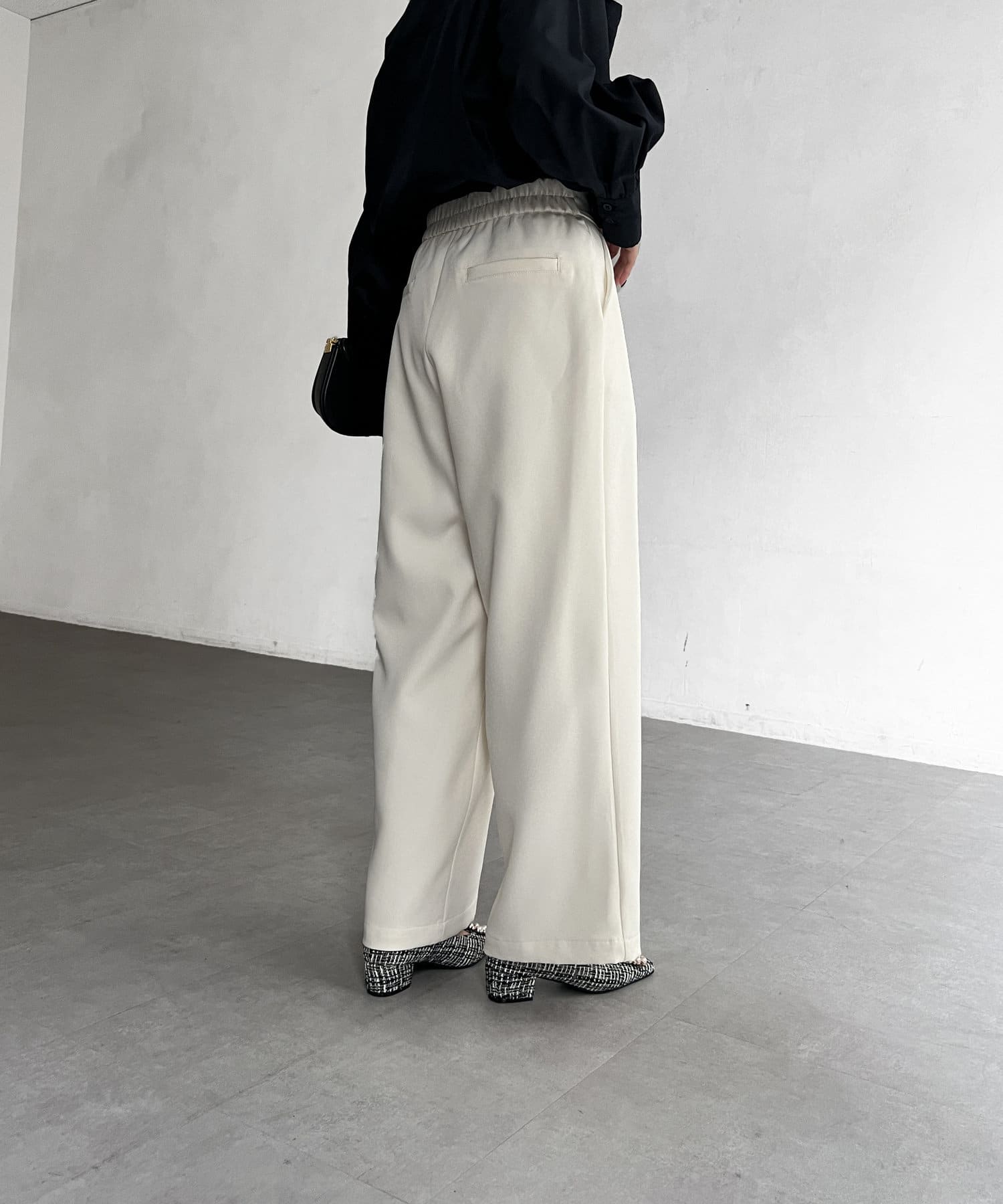 ゆったりなワイドシルエットなので足のラインを拾わず、