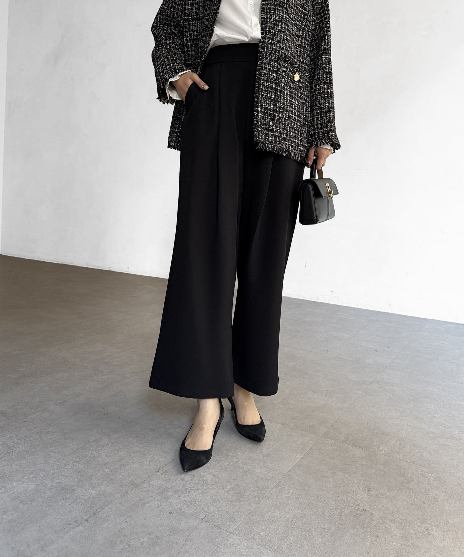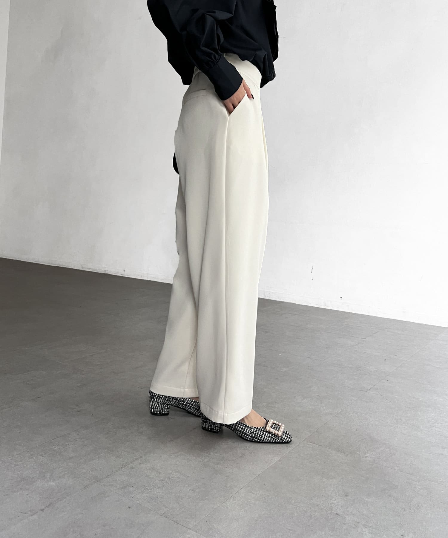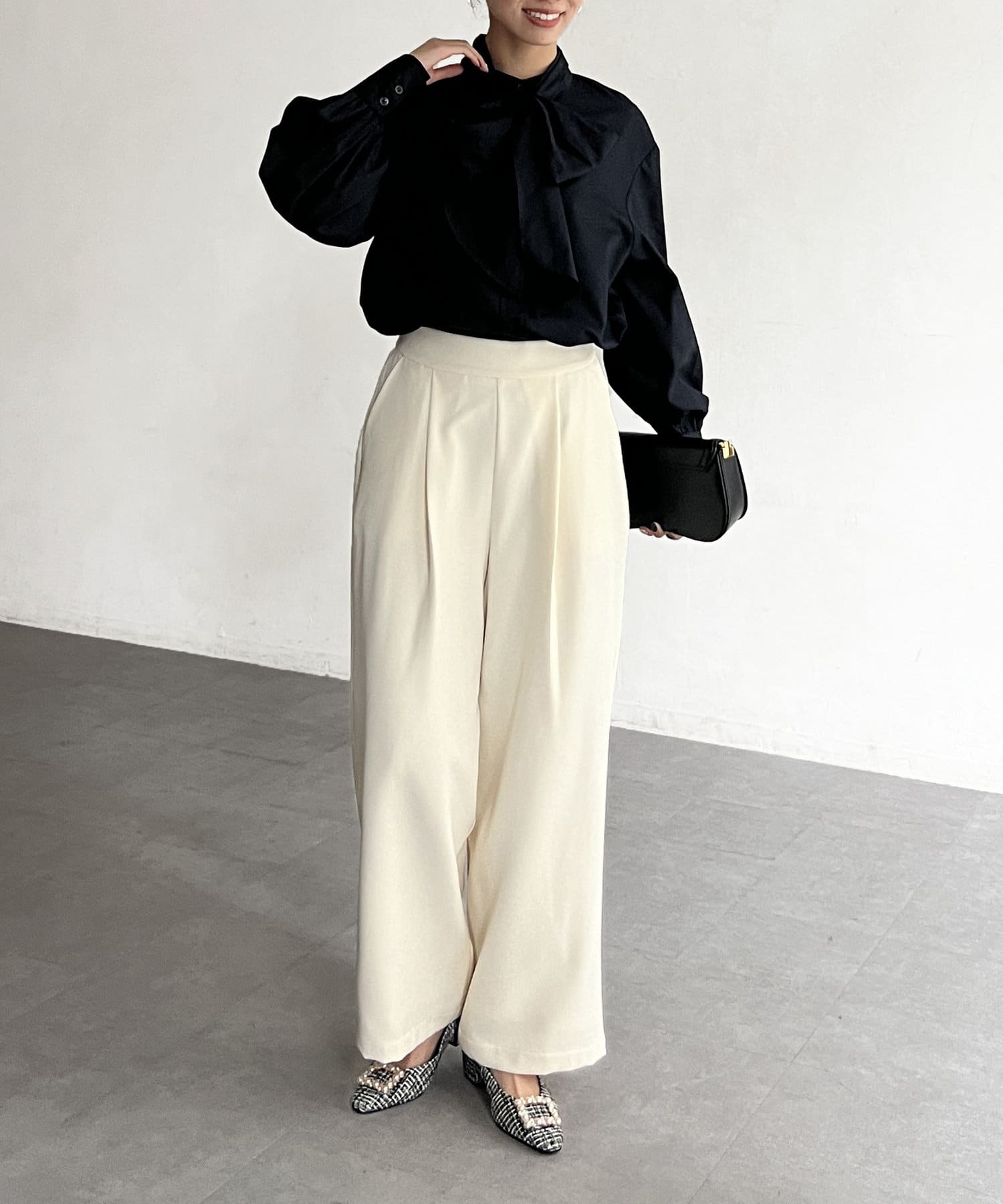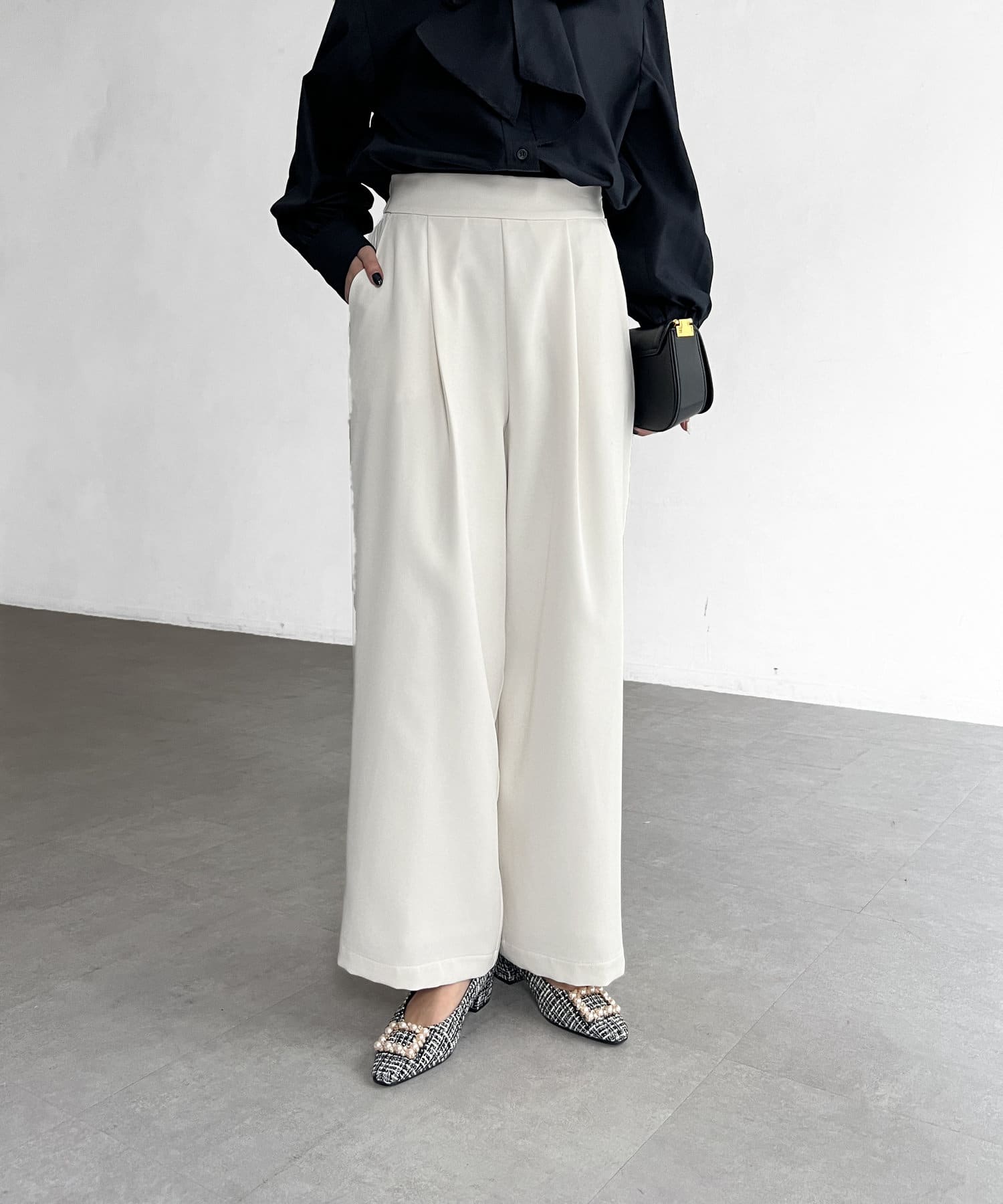 ゆったりなワイドシルエットなので足のラインを拾わず、