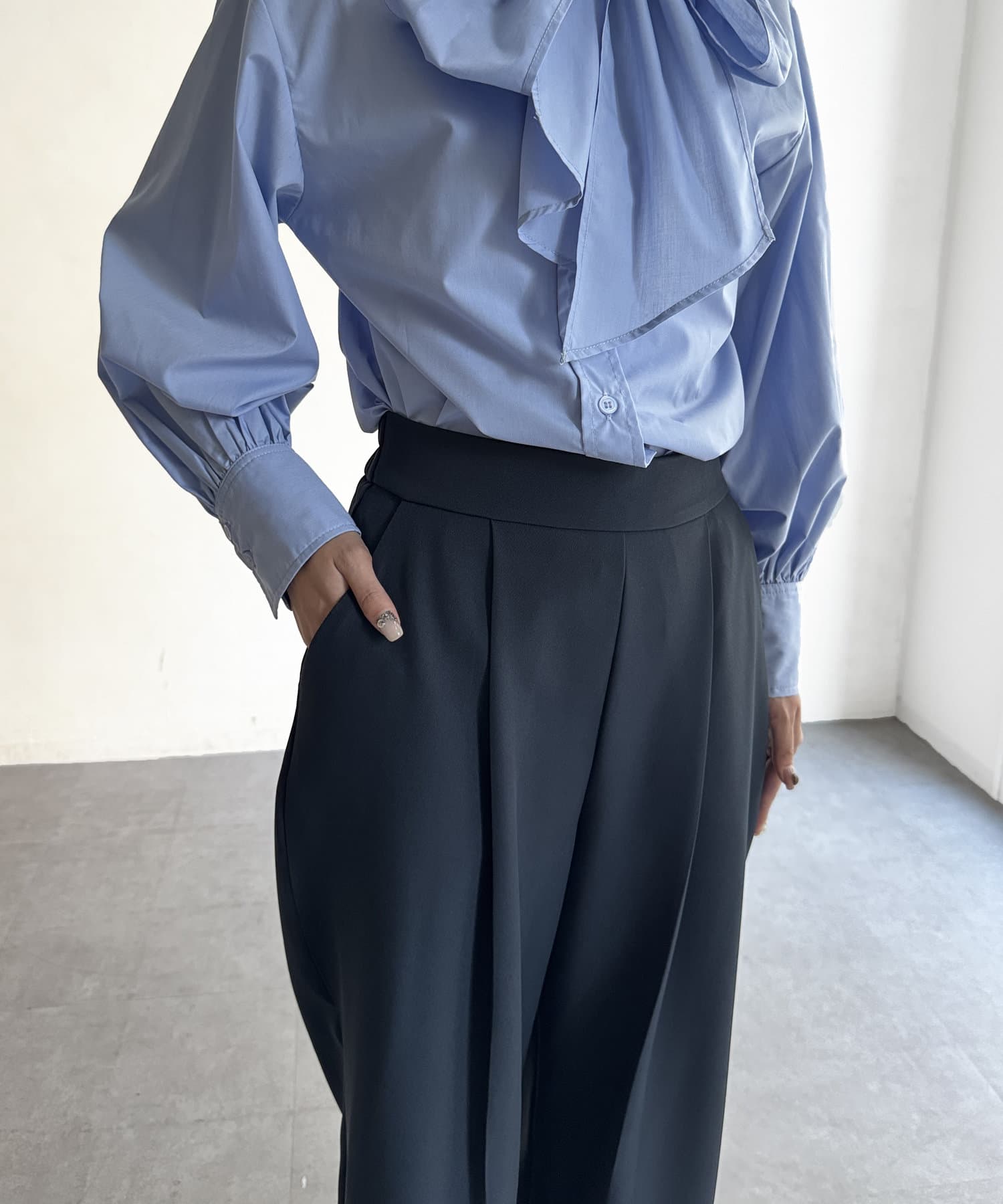 ウエストはバックゴム仕様でストレスフリーな履き心地。