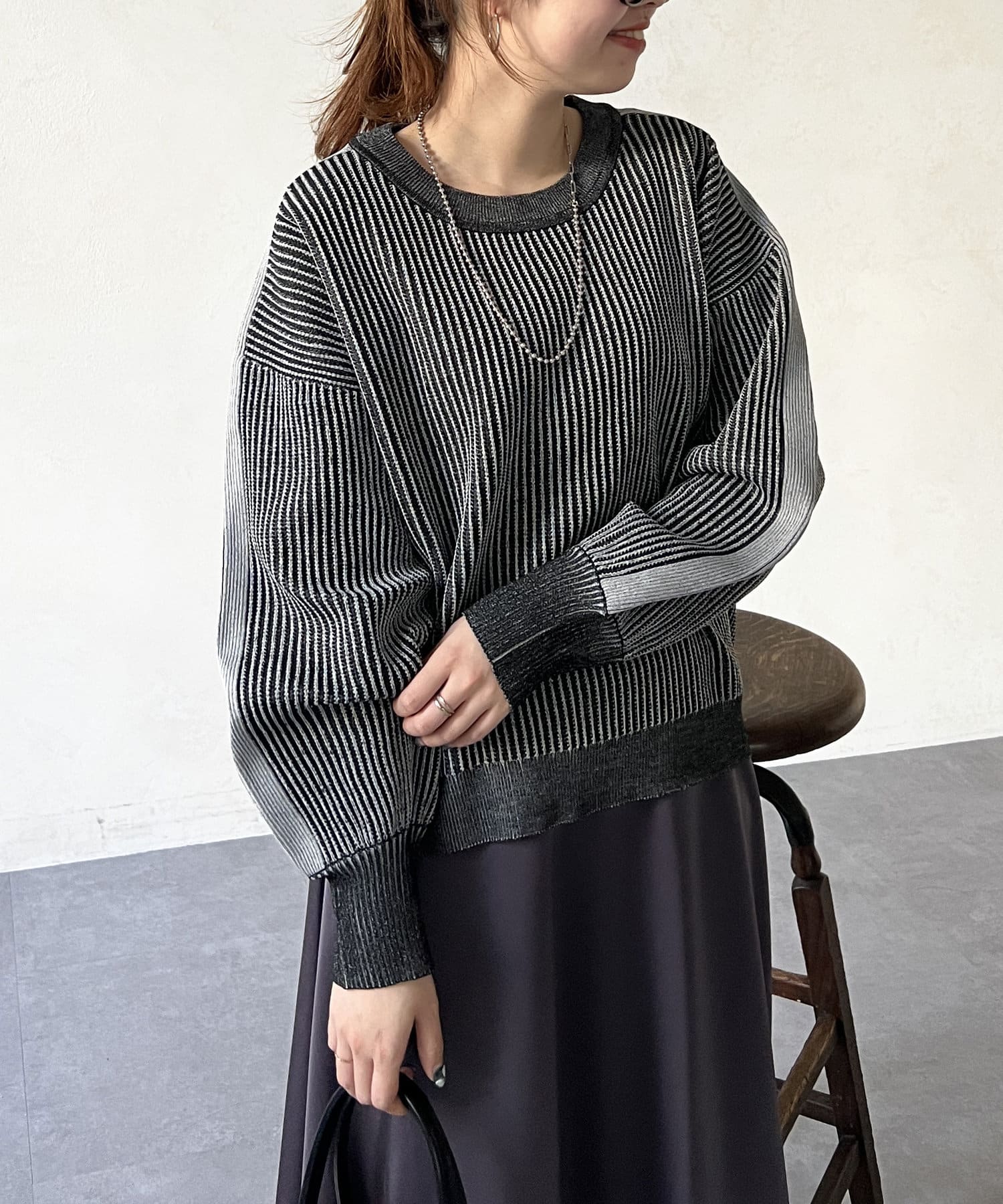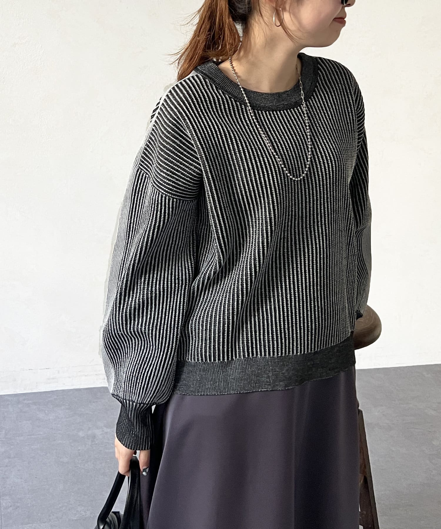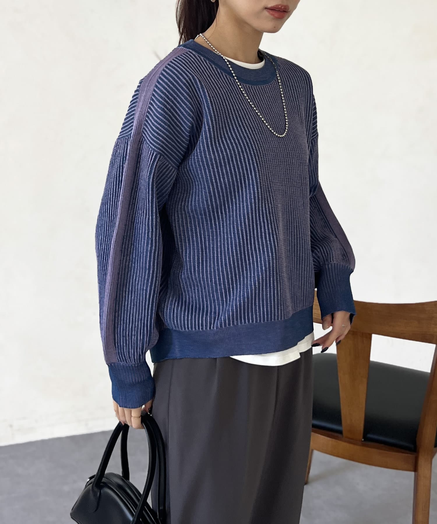 一枚でデニムやロングスカートと合わせたシンプルなコーデや、シャツやインナーをレイヤードしたスタイルのコーデにも◎
