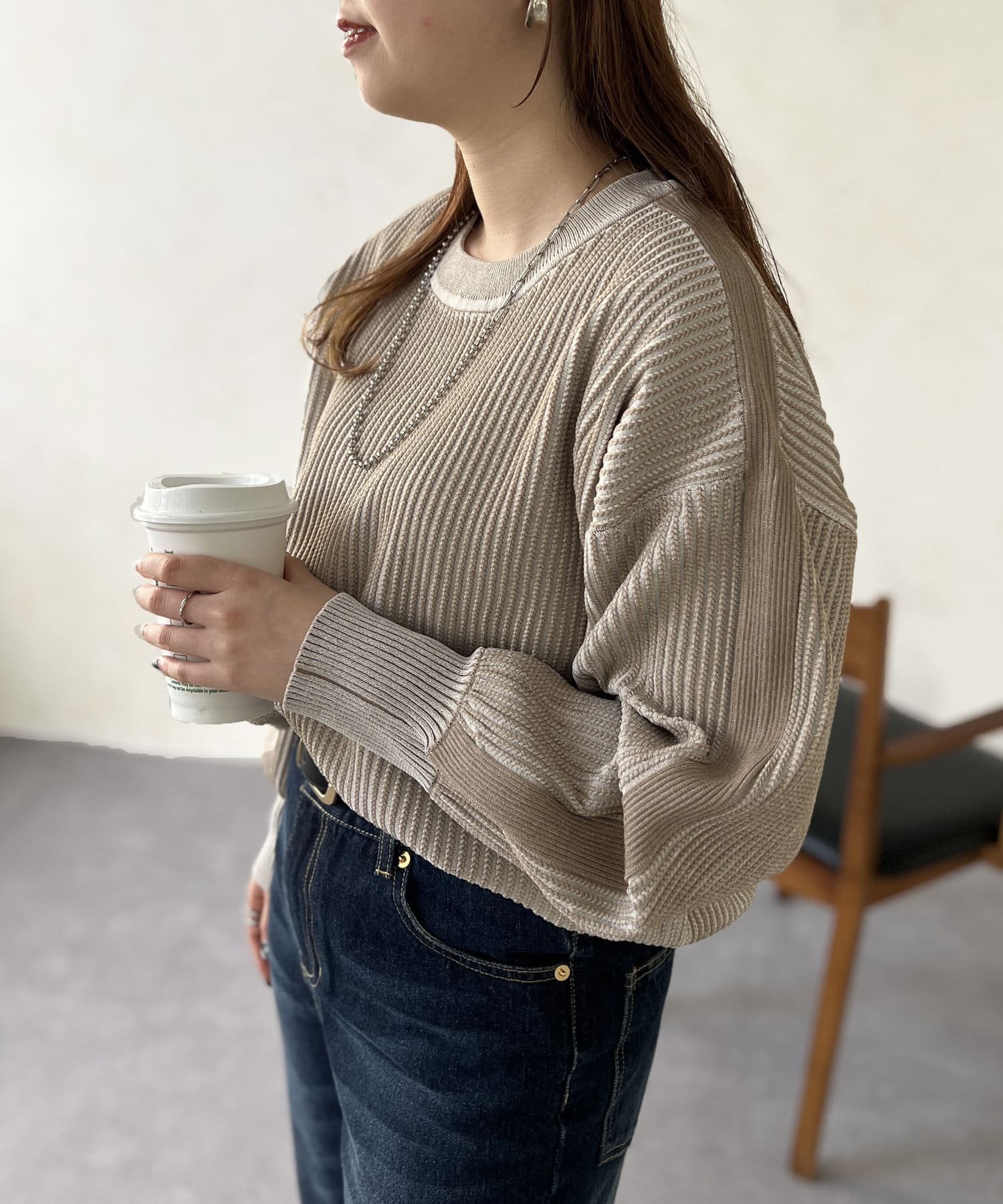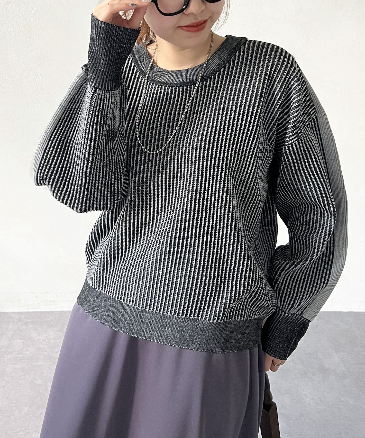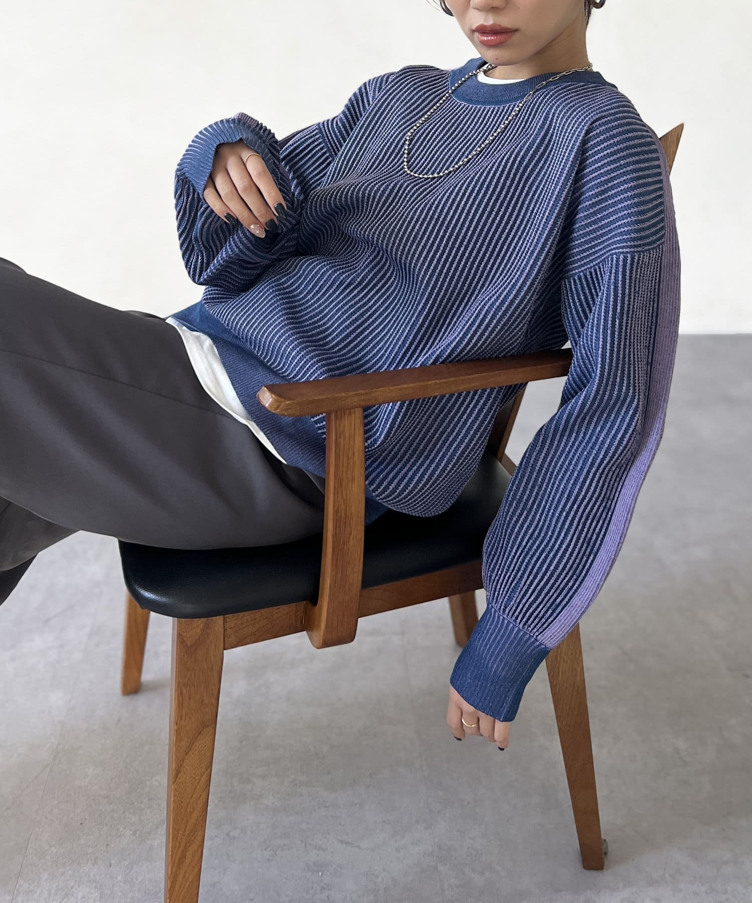 一枚でデニムやロングスカートと合わせたシンプルなコーデや、シャツやインナーをレイヤードしたスタイルのコーデにも◎
