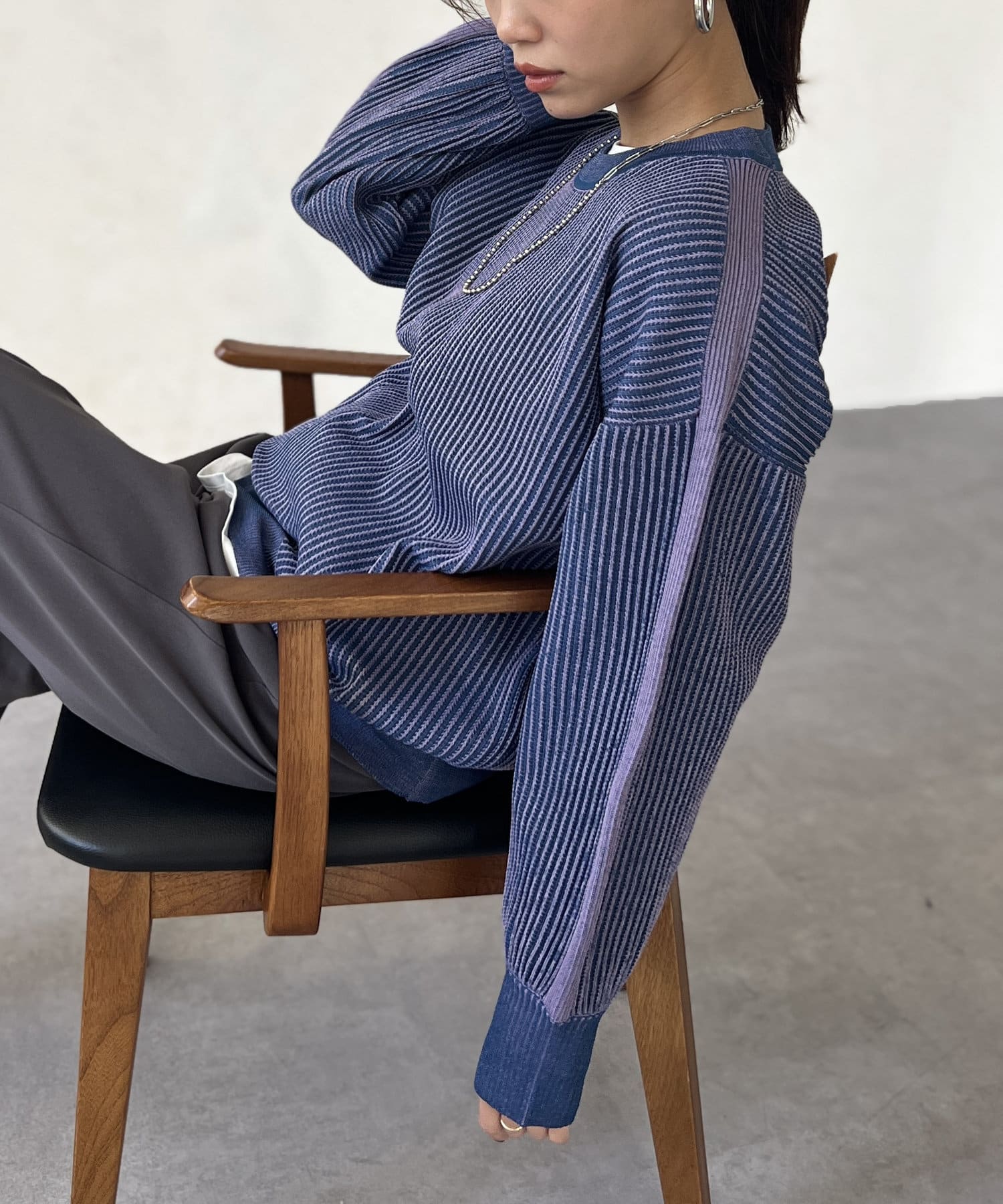 肩から袖口にかけたラインがポイント。