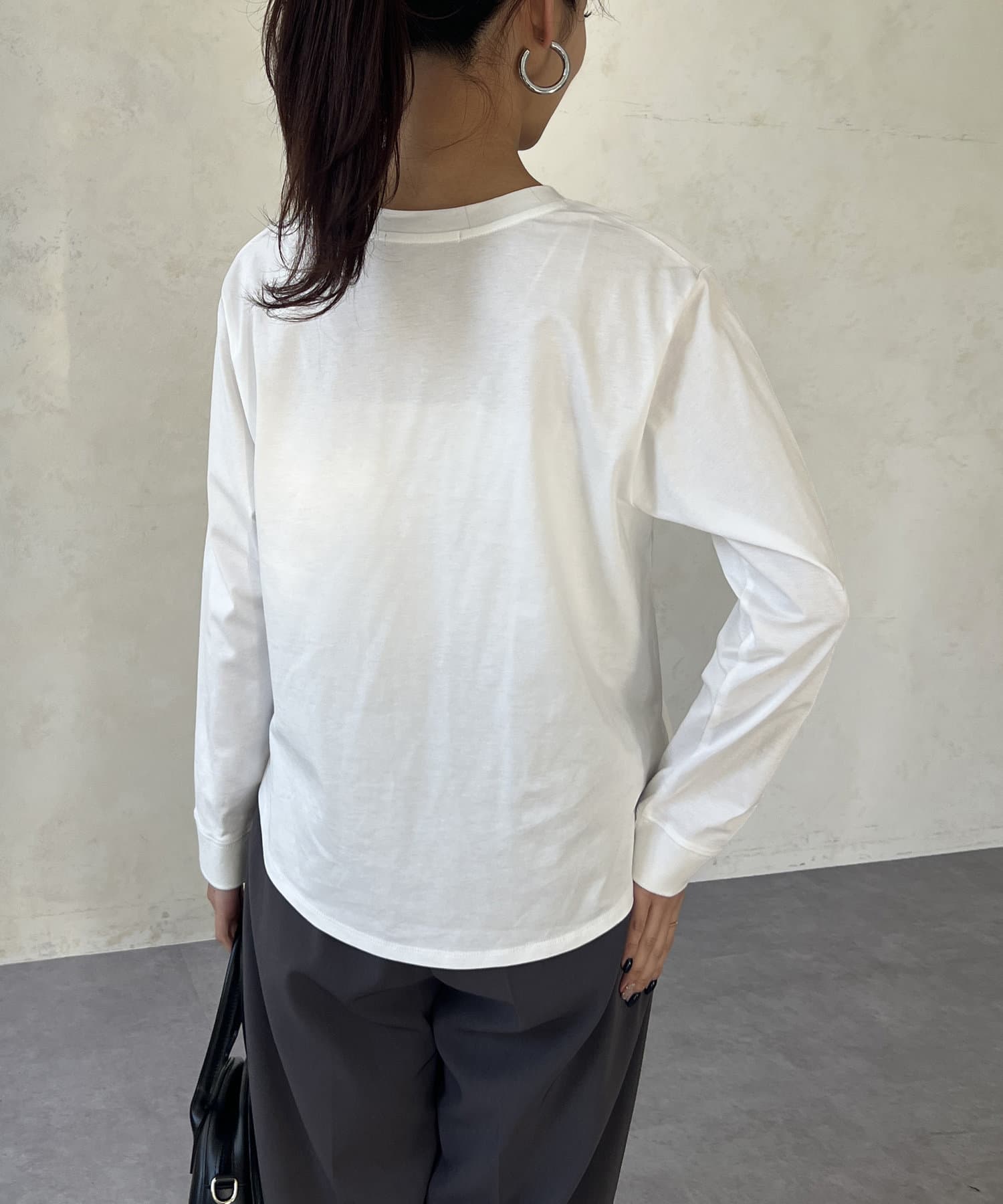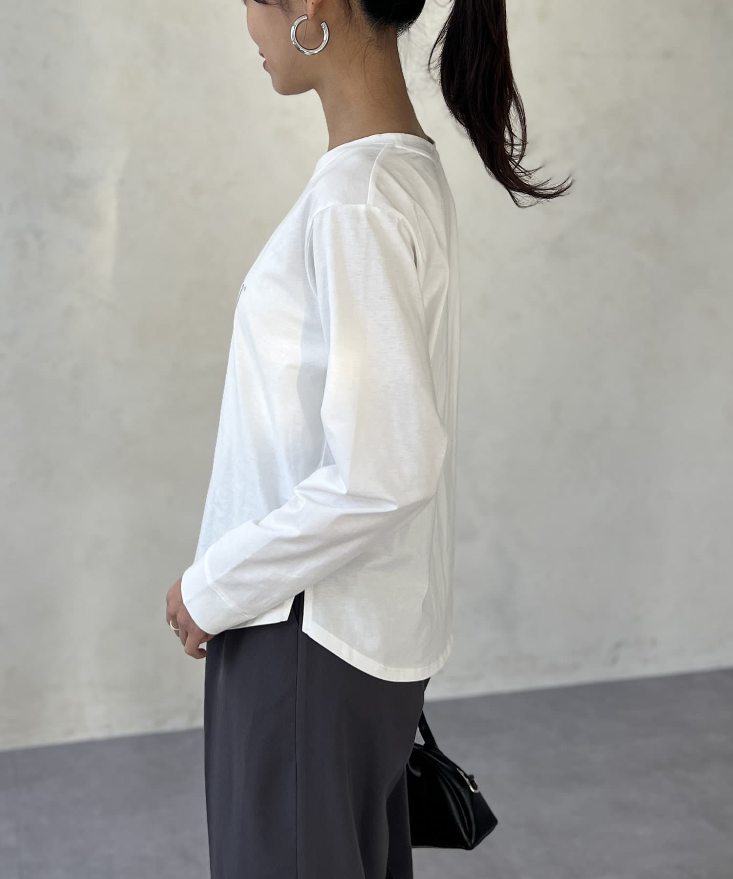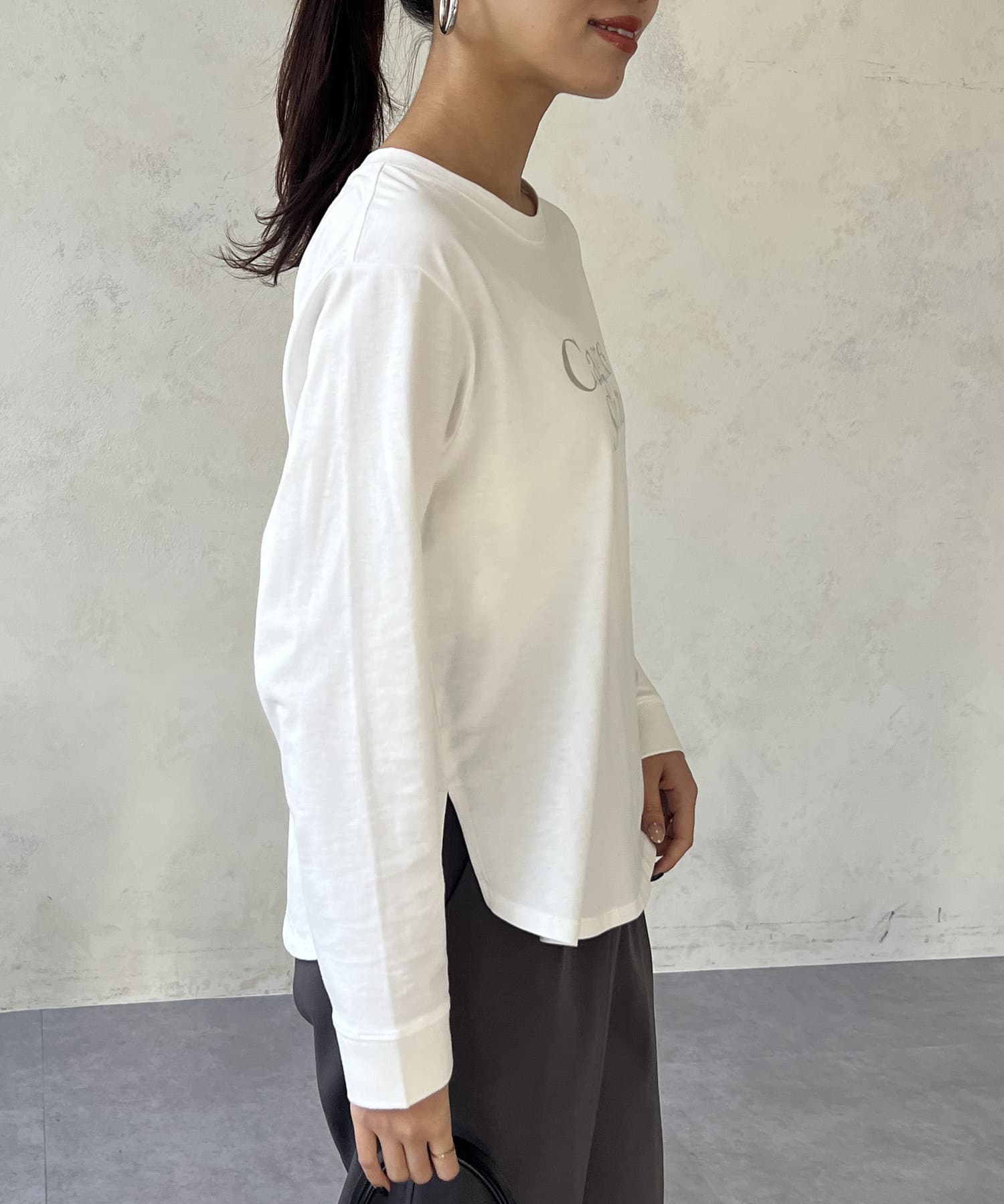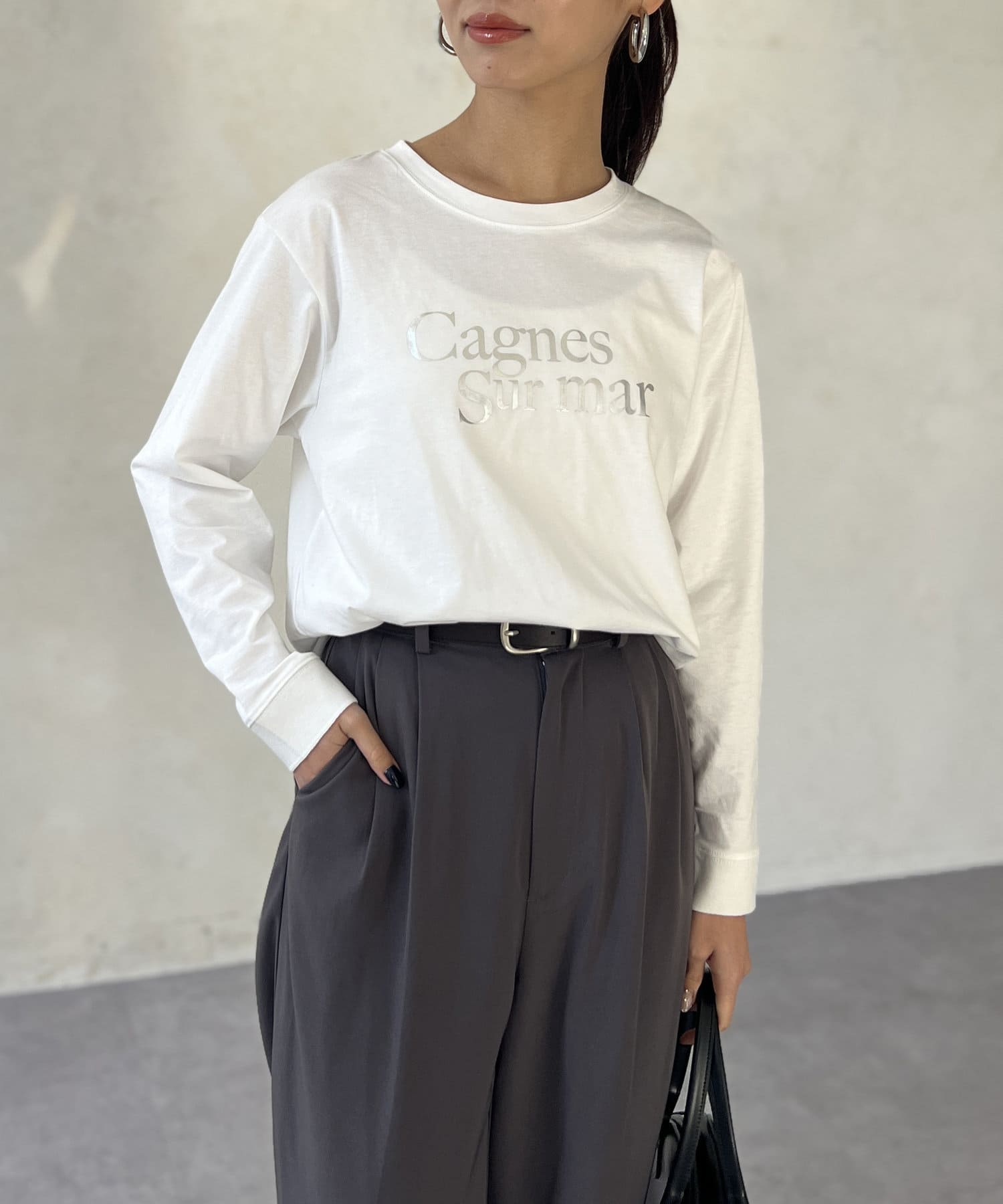 カジュアルになりすぎない光沢感の入ったロゴが、大人のカジュアルスタイルにマッチするロンT。