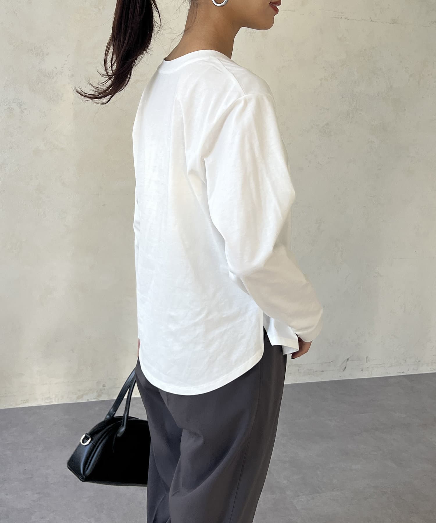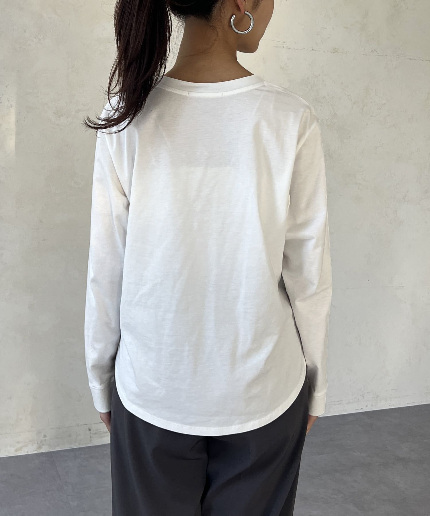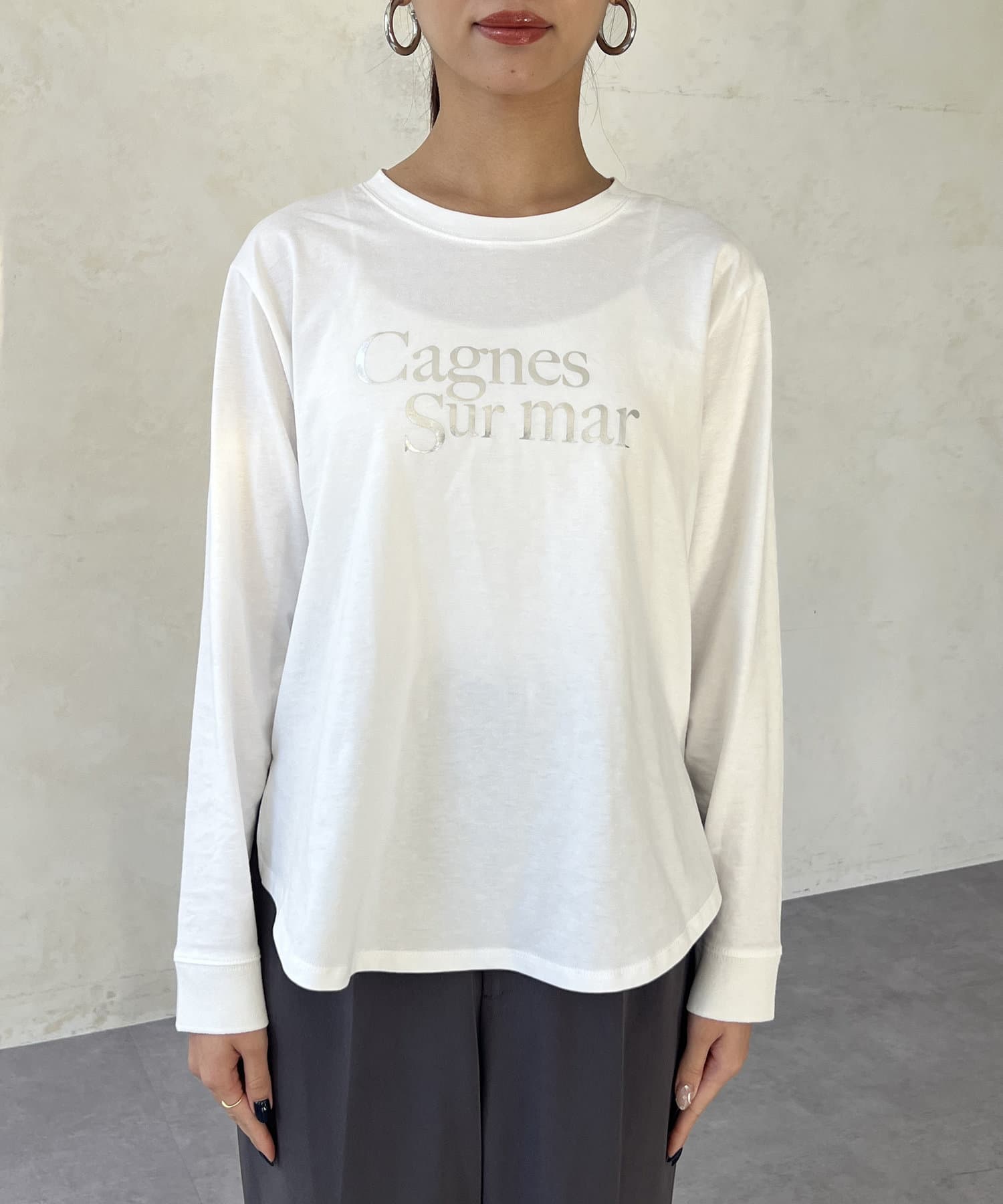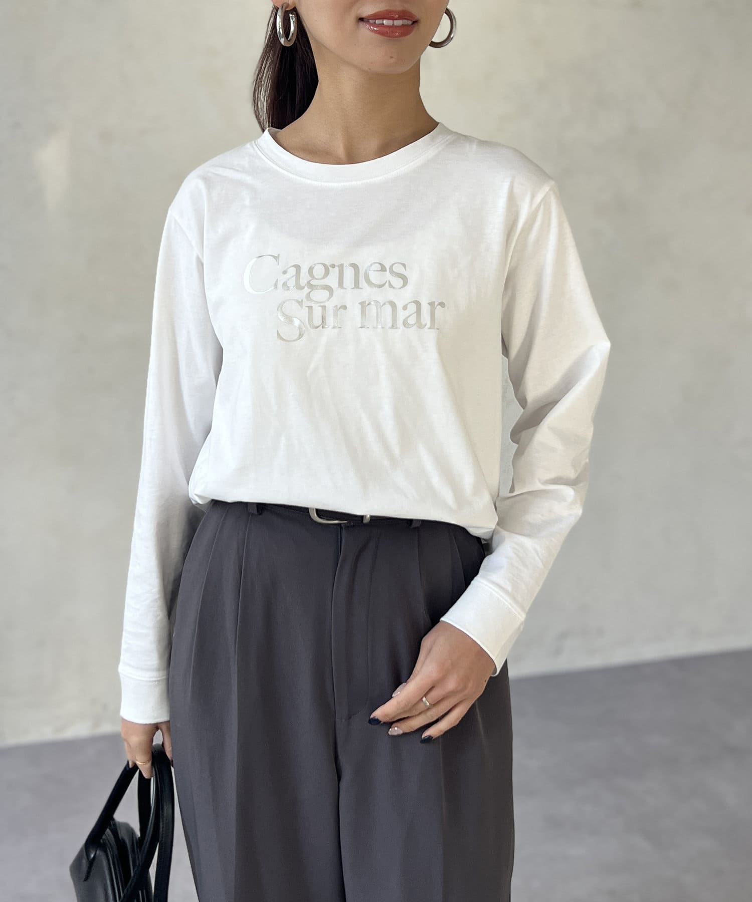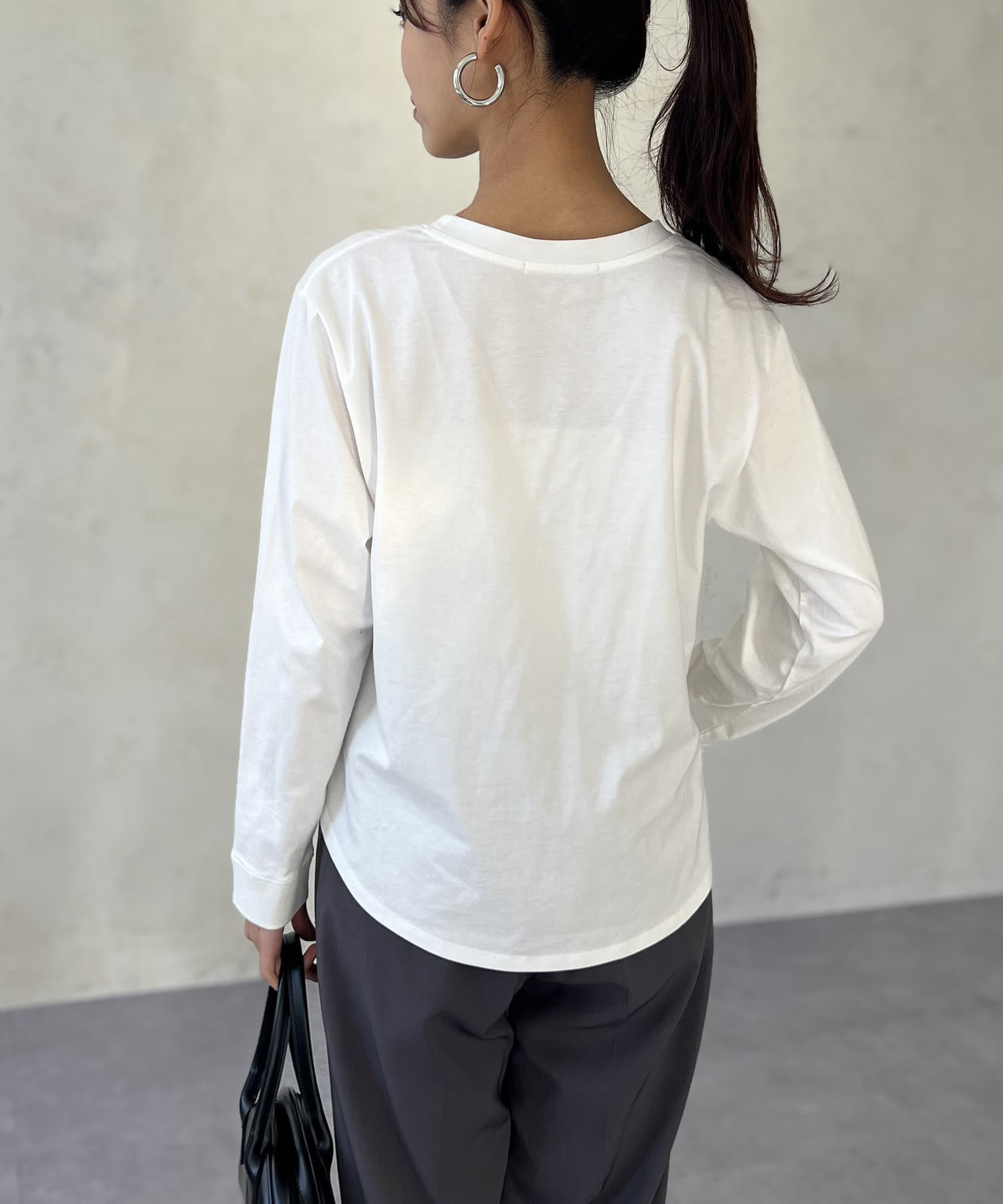 カジュアルになりすぎない光沢感の入ったロゴが、大人のカジュアルスタイルにマッチするロンT。