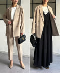 光沢感のある生地感が品のある印象になりコーディネートの主役になる1着です。
