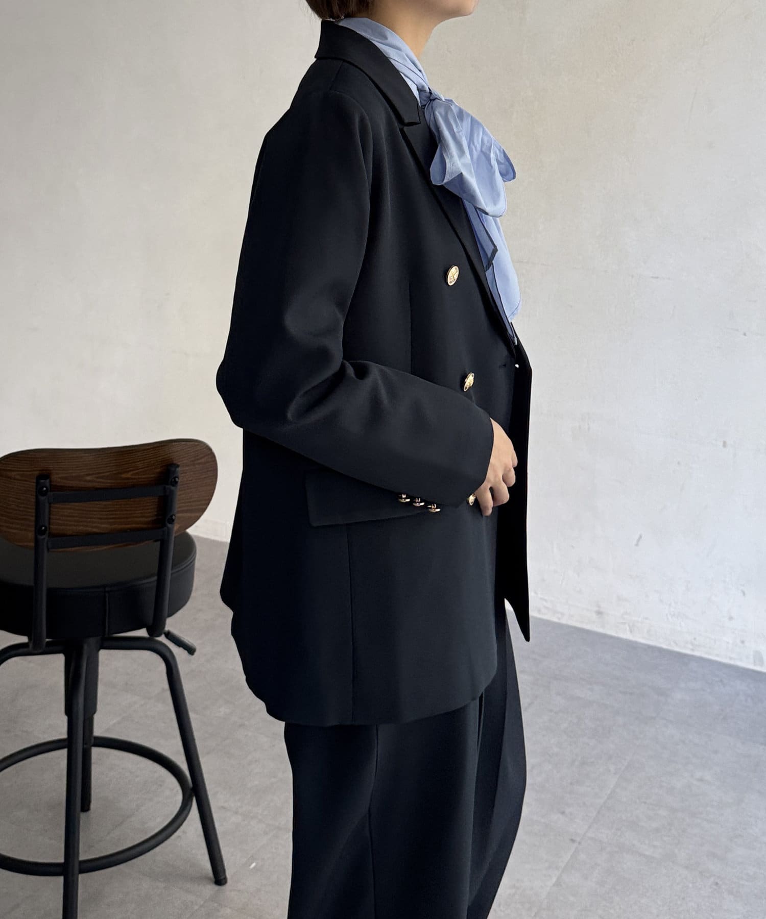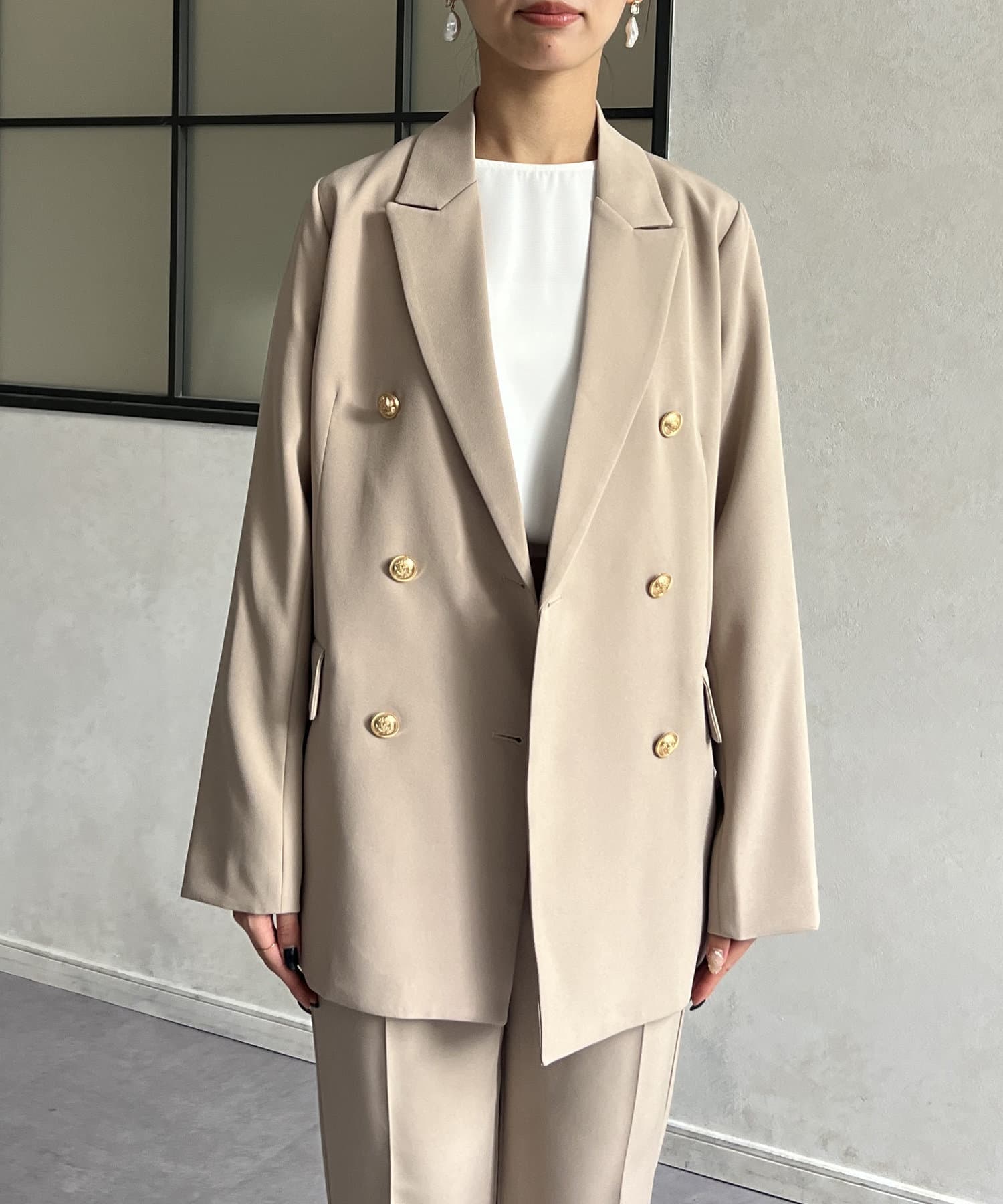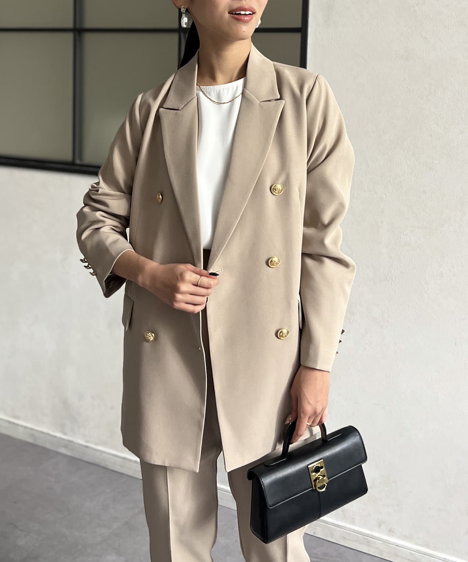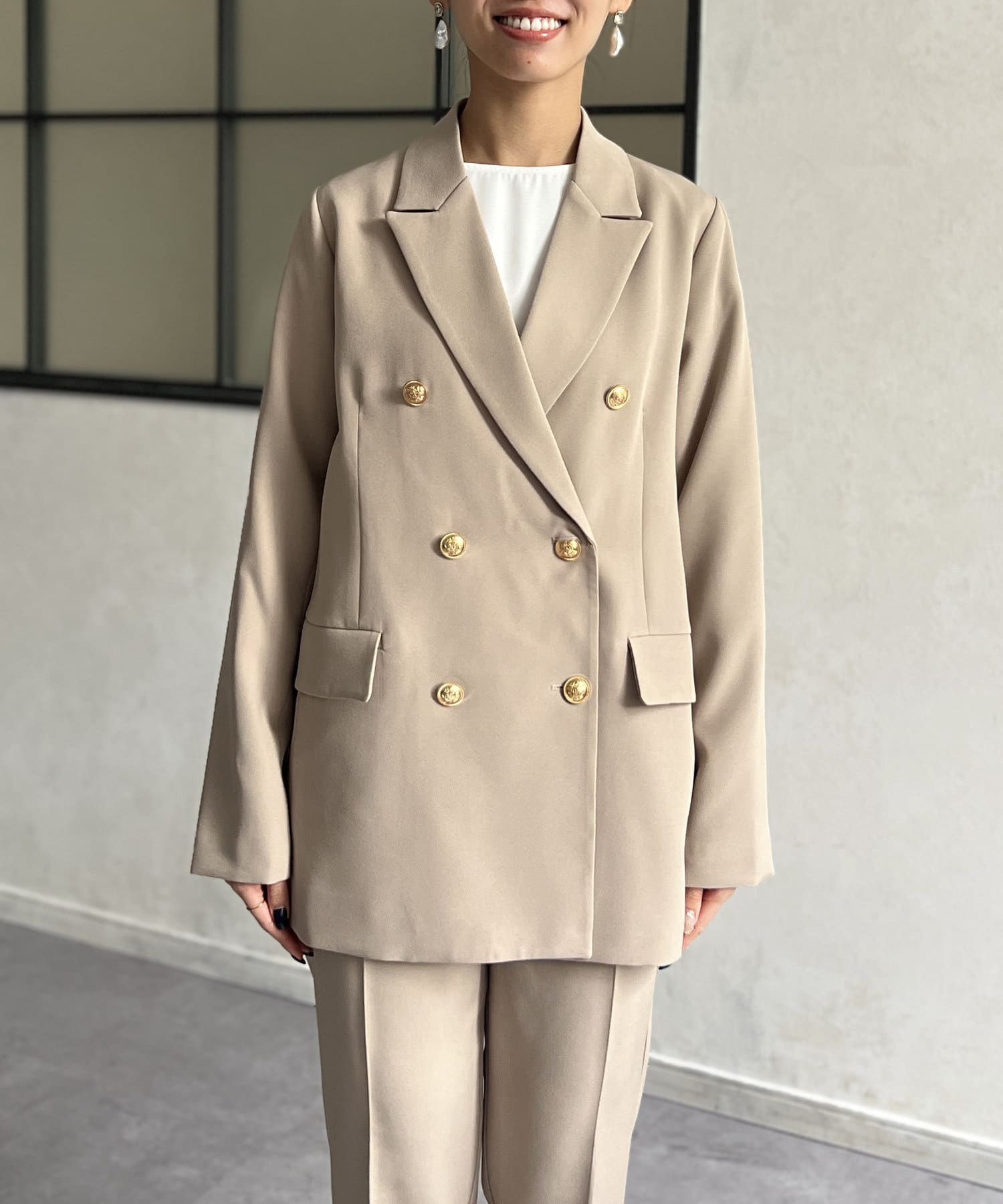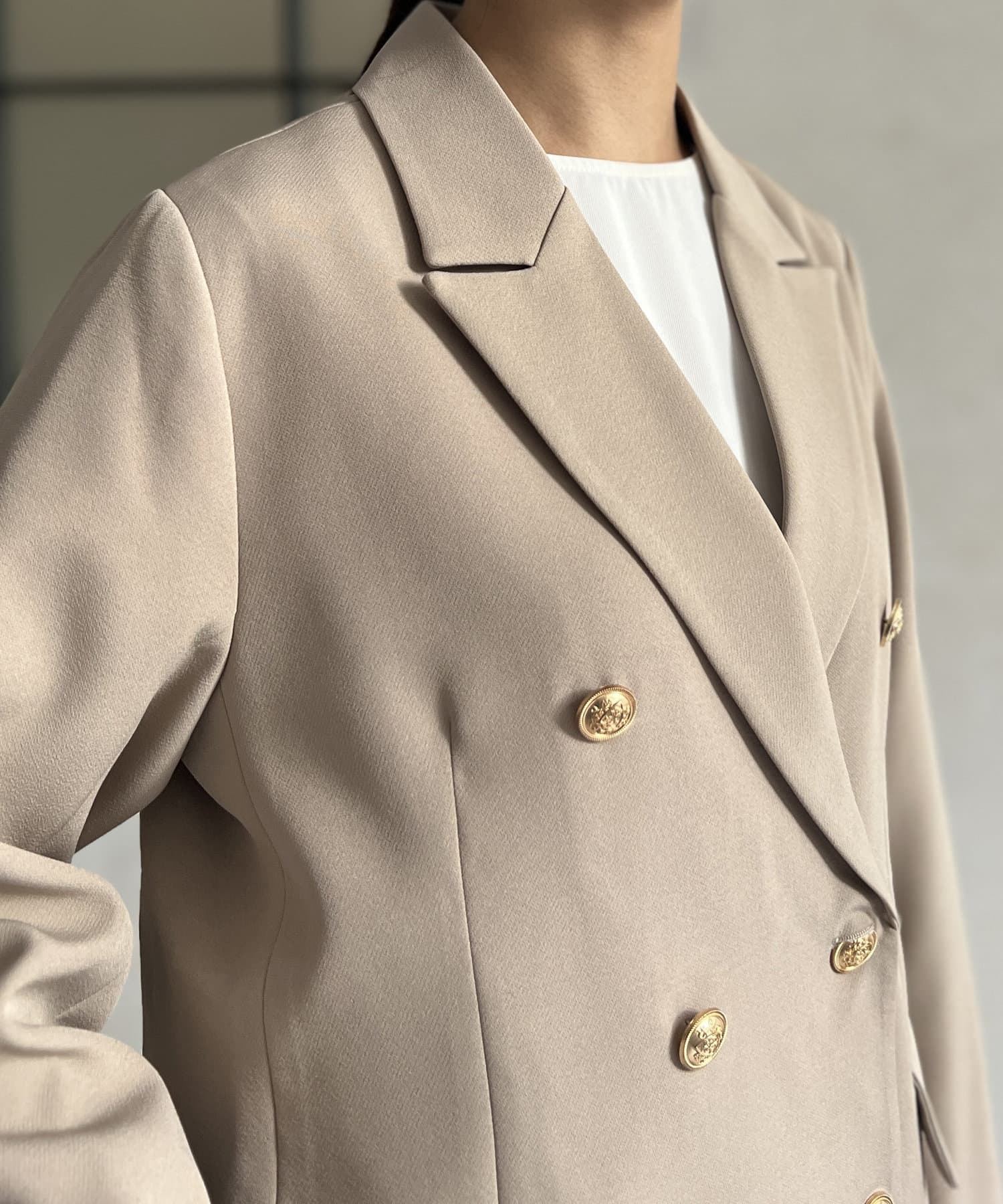 ゴールドボタンが女性らしさを引き立てるテーラードジャケット