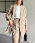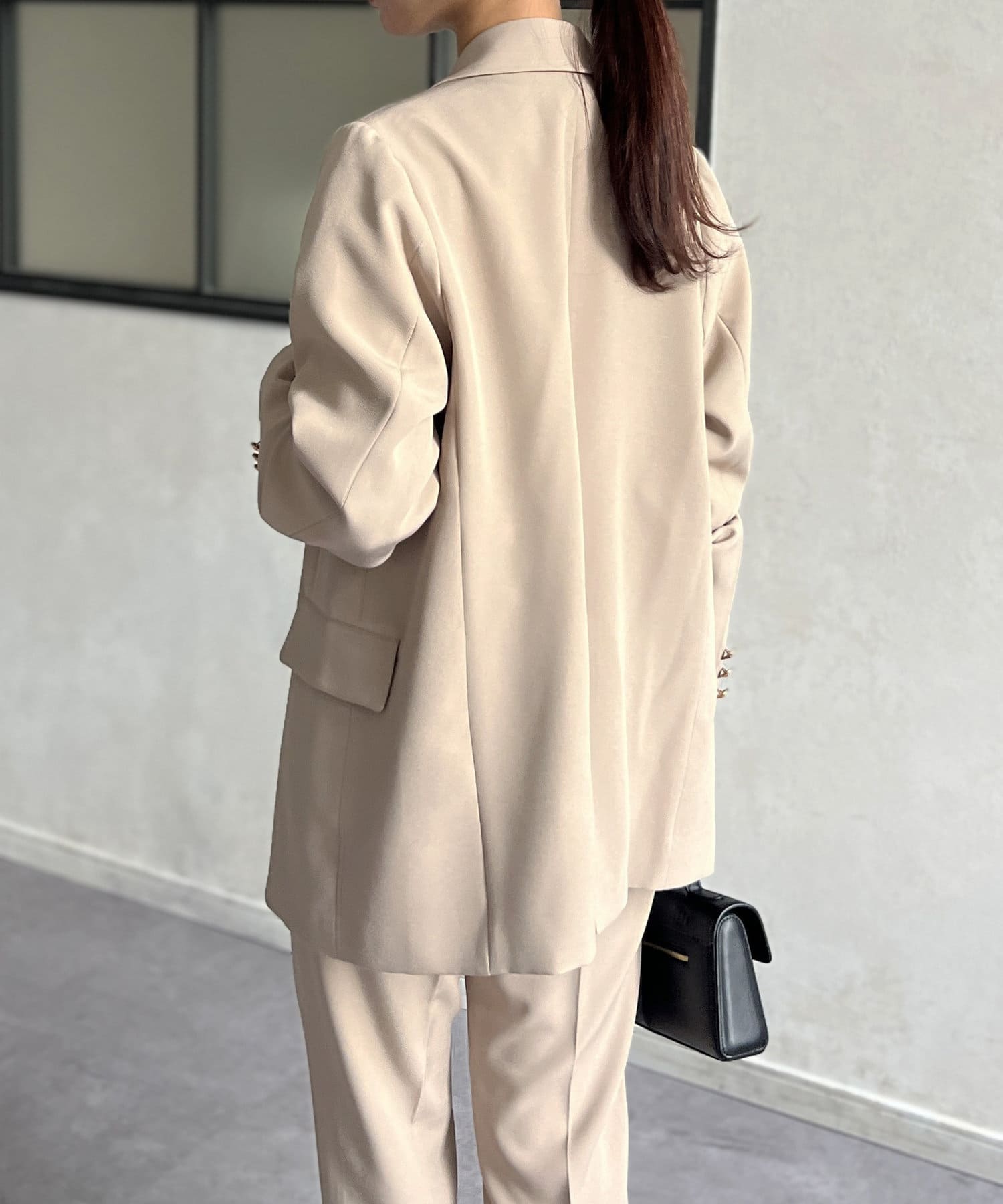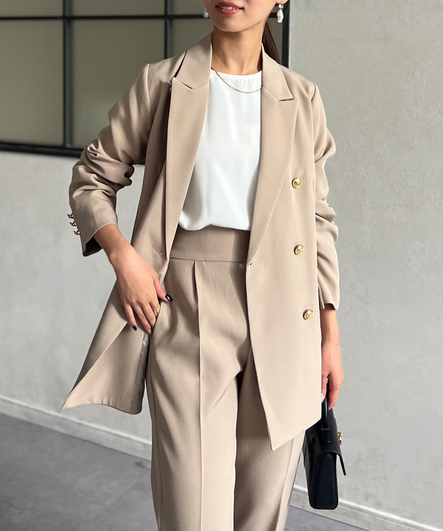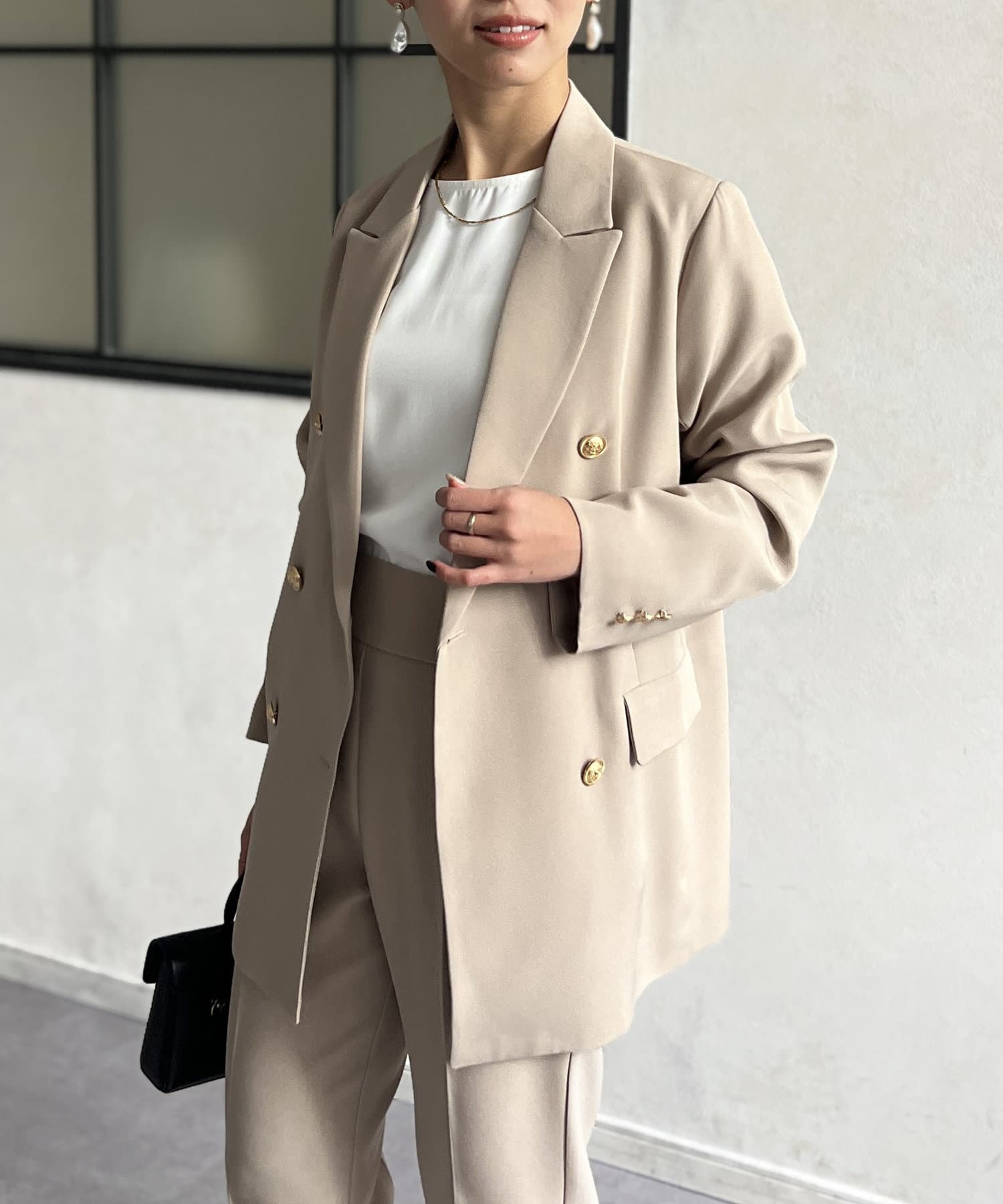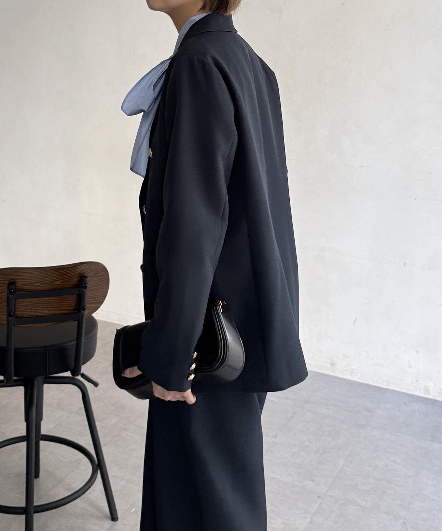 ゴールドボタンが女性らしさを引き立てるテーラードジャケット