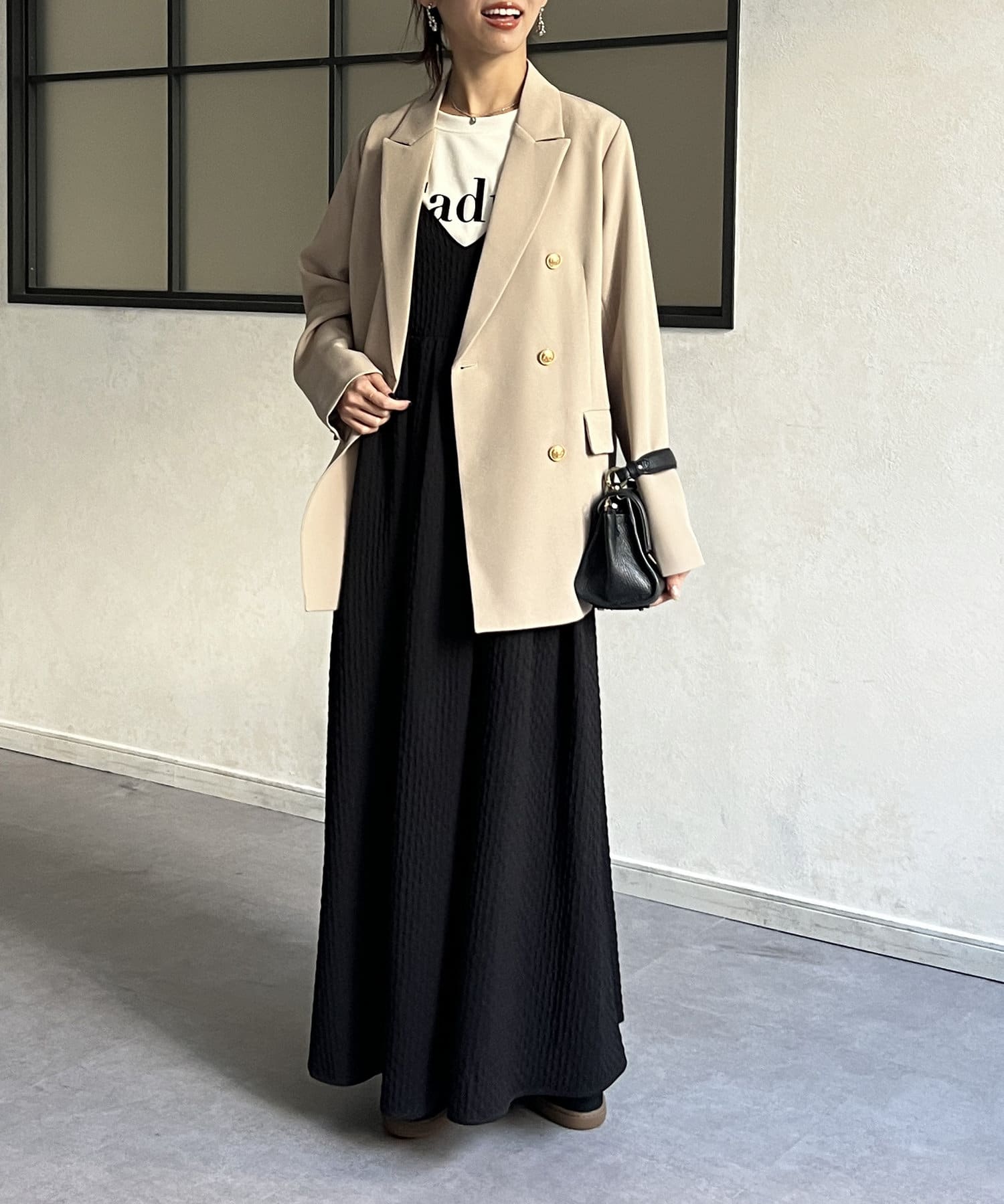 ゆったりとしたサイズ感がきれいめなスタイルから