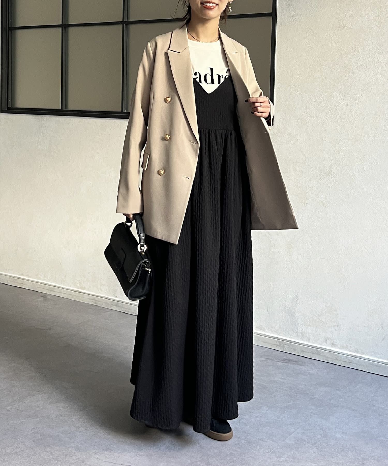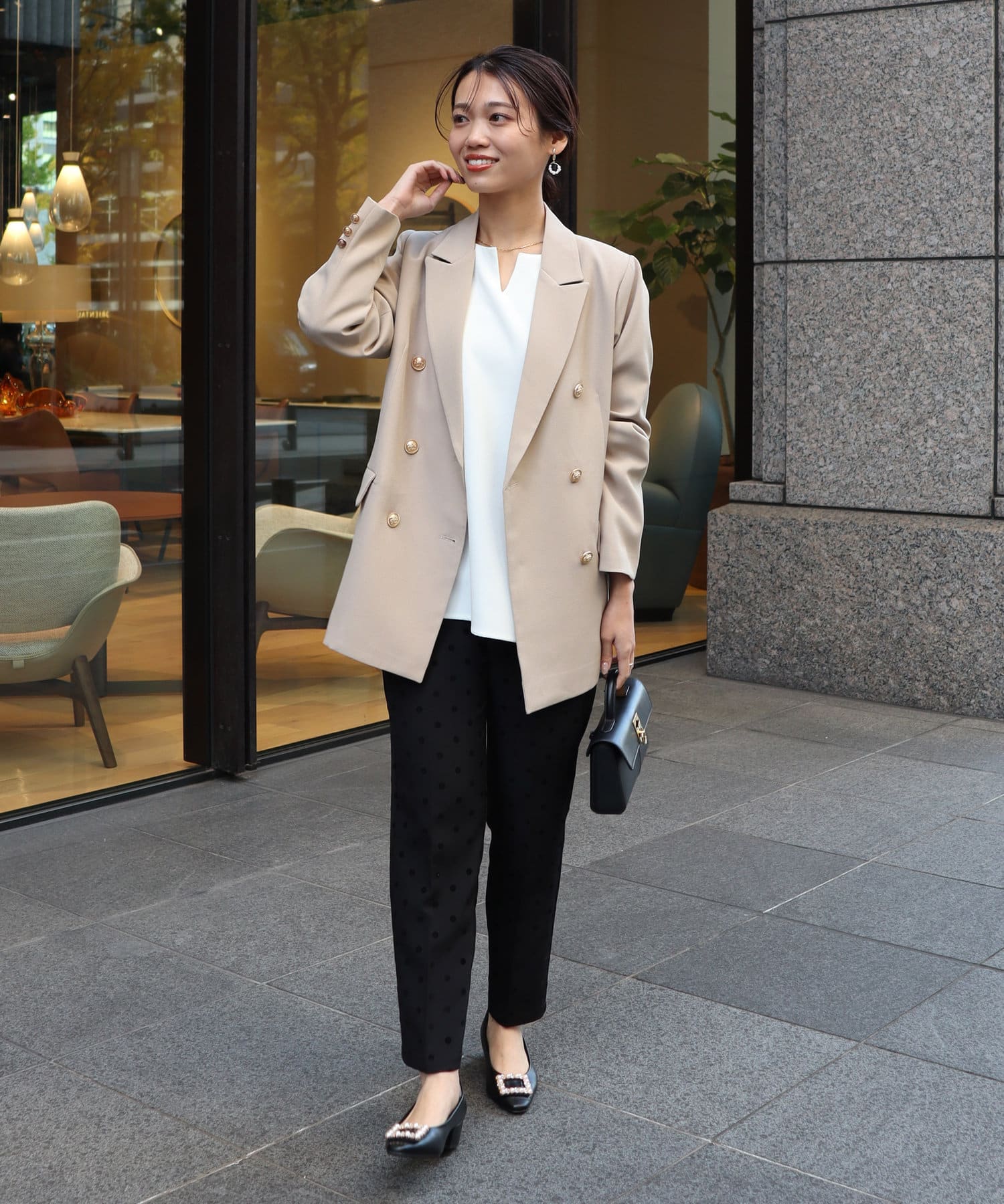 合わせてカジュアルダウンするのもおすすめです。