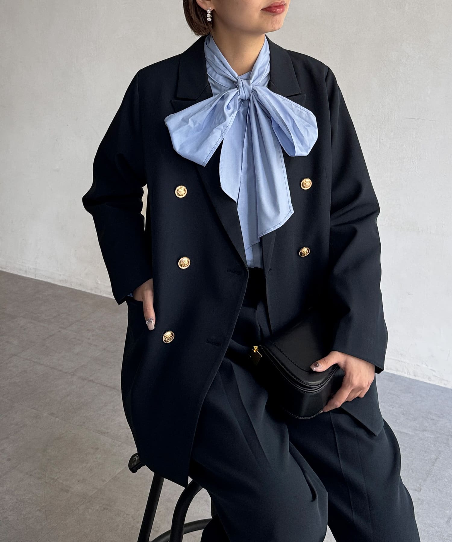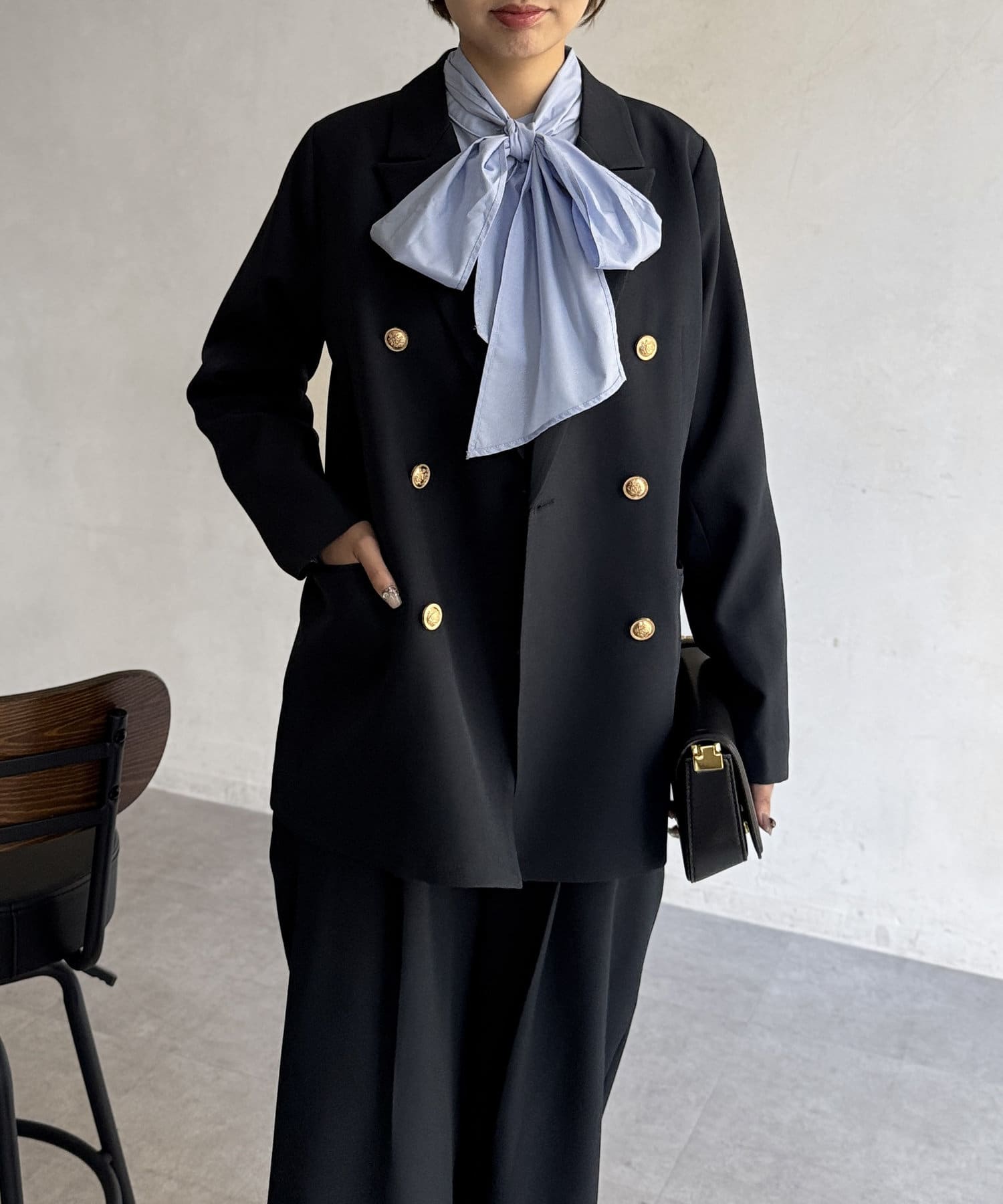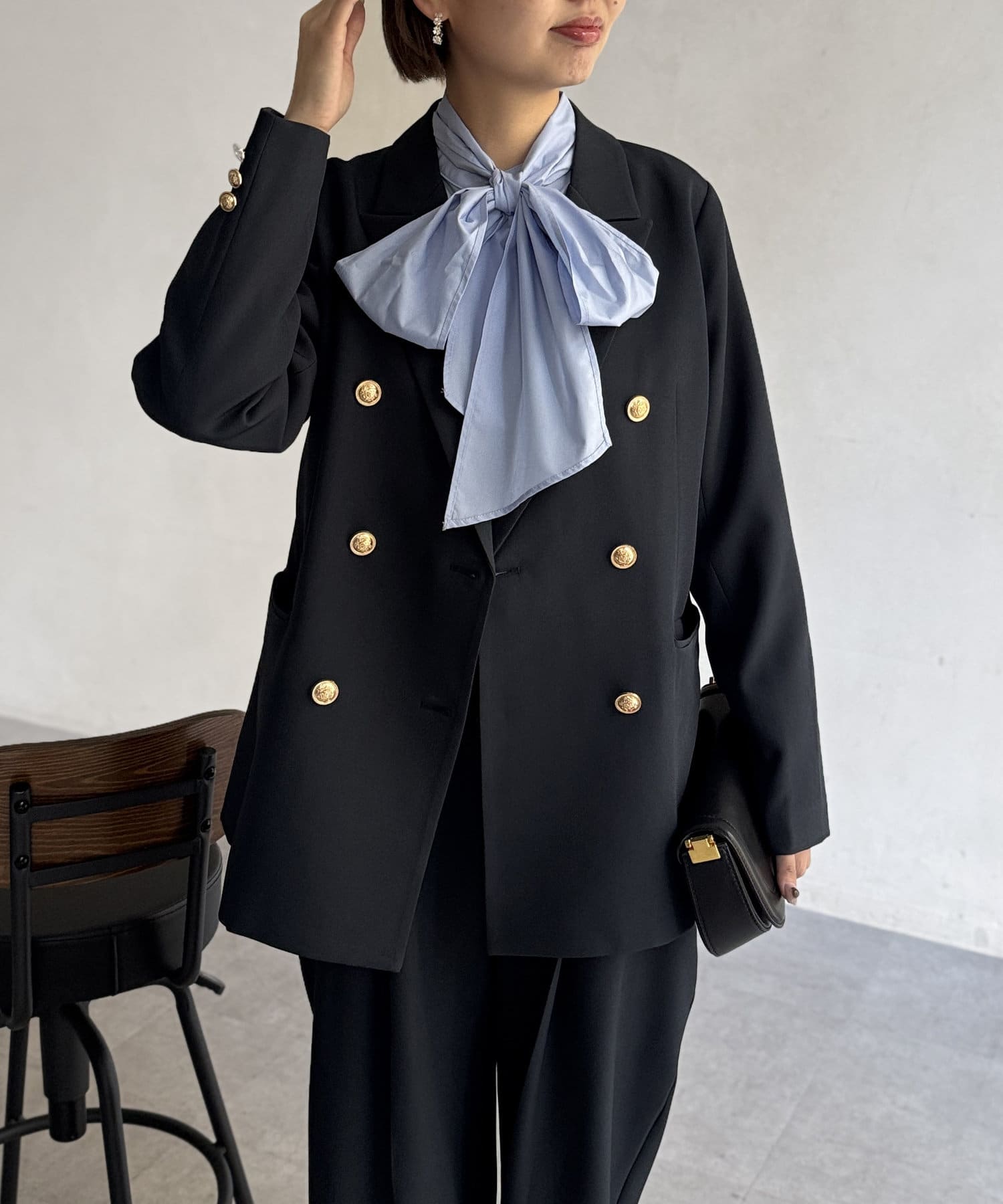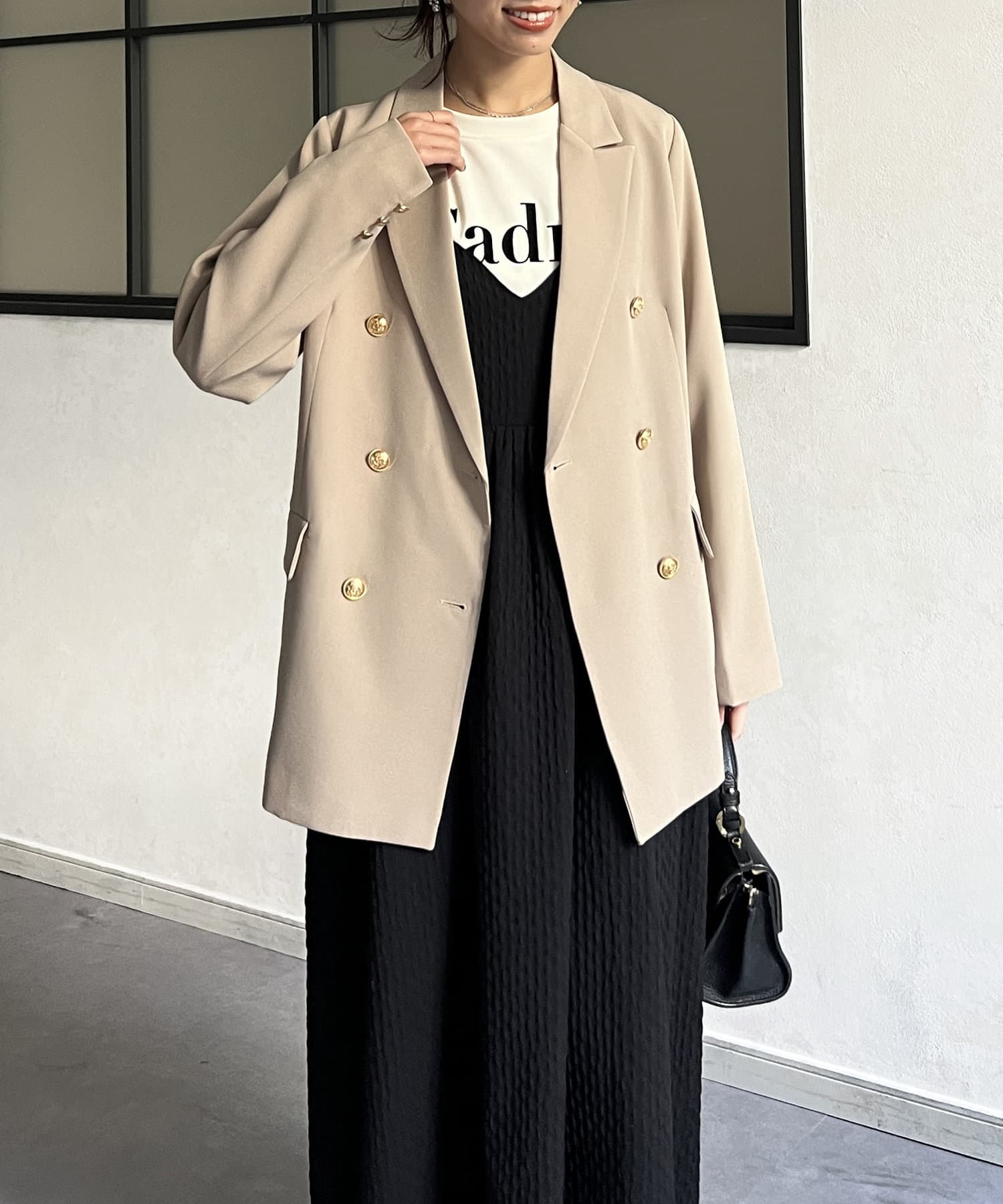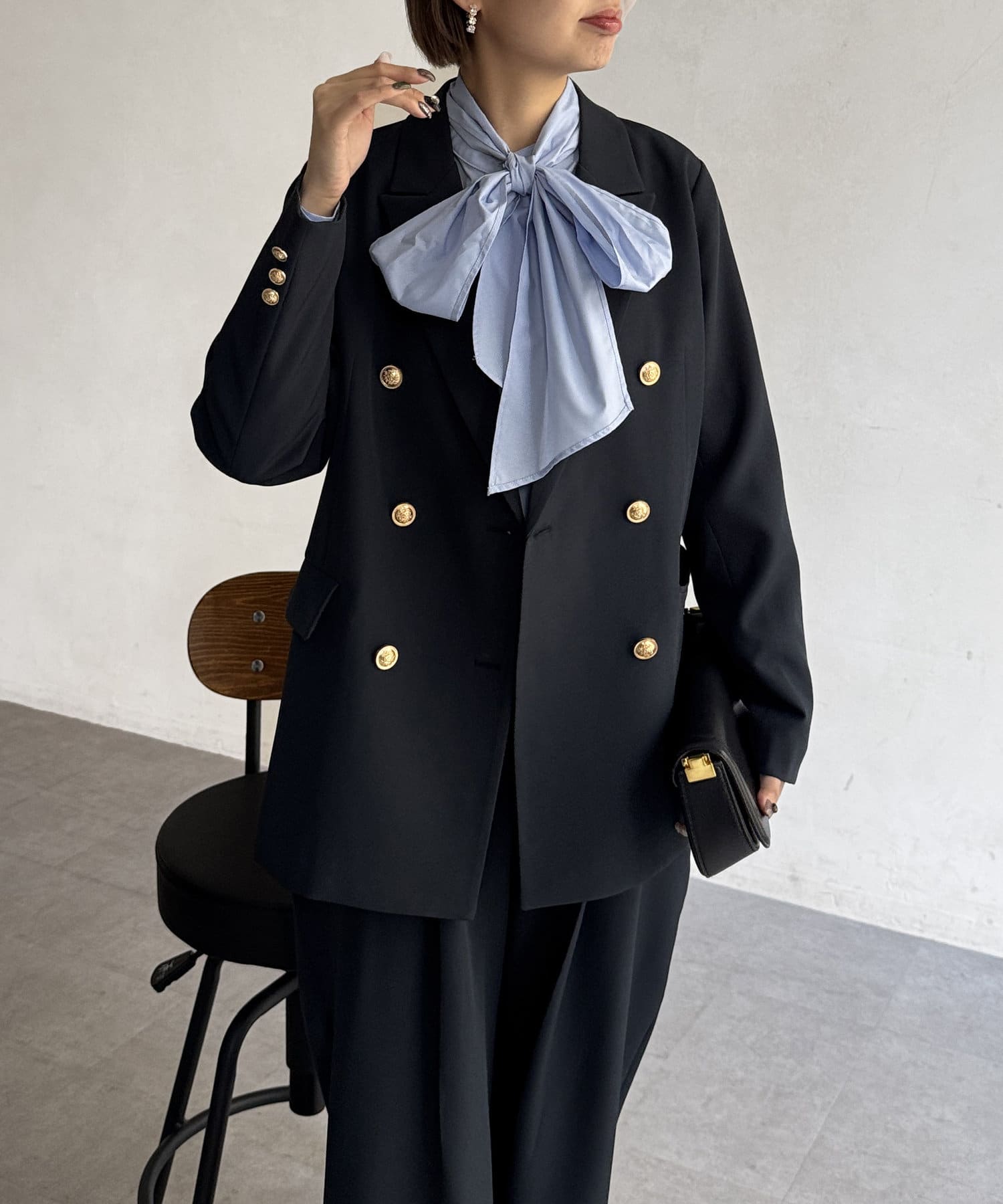 カジュアルなスタイルまでこなれ感を演出。艶感のゴールドボタンが