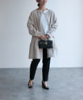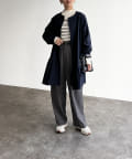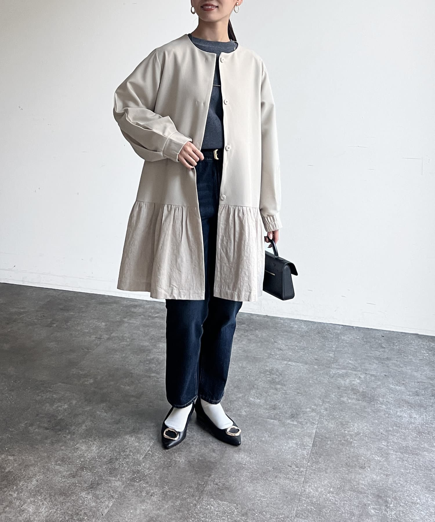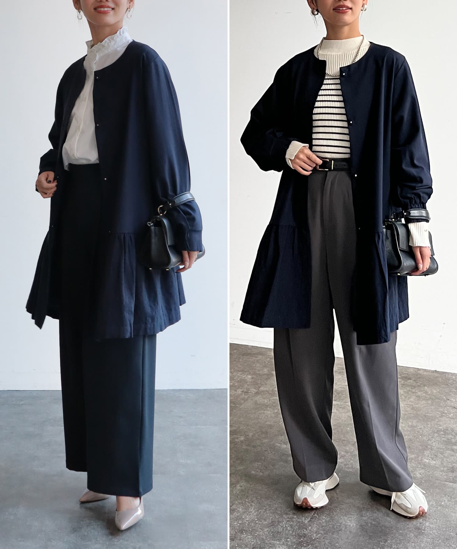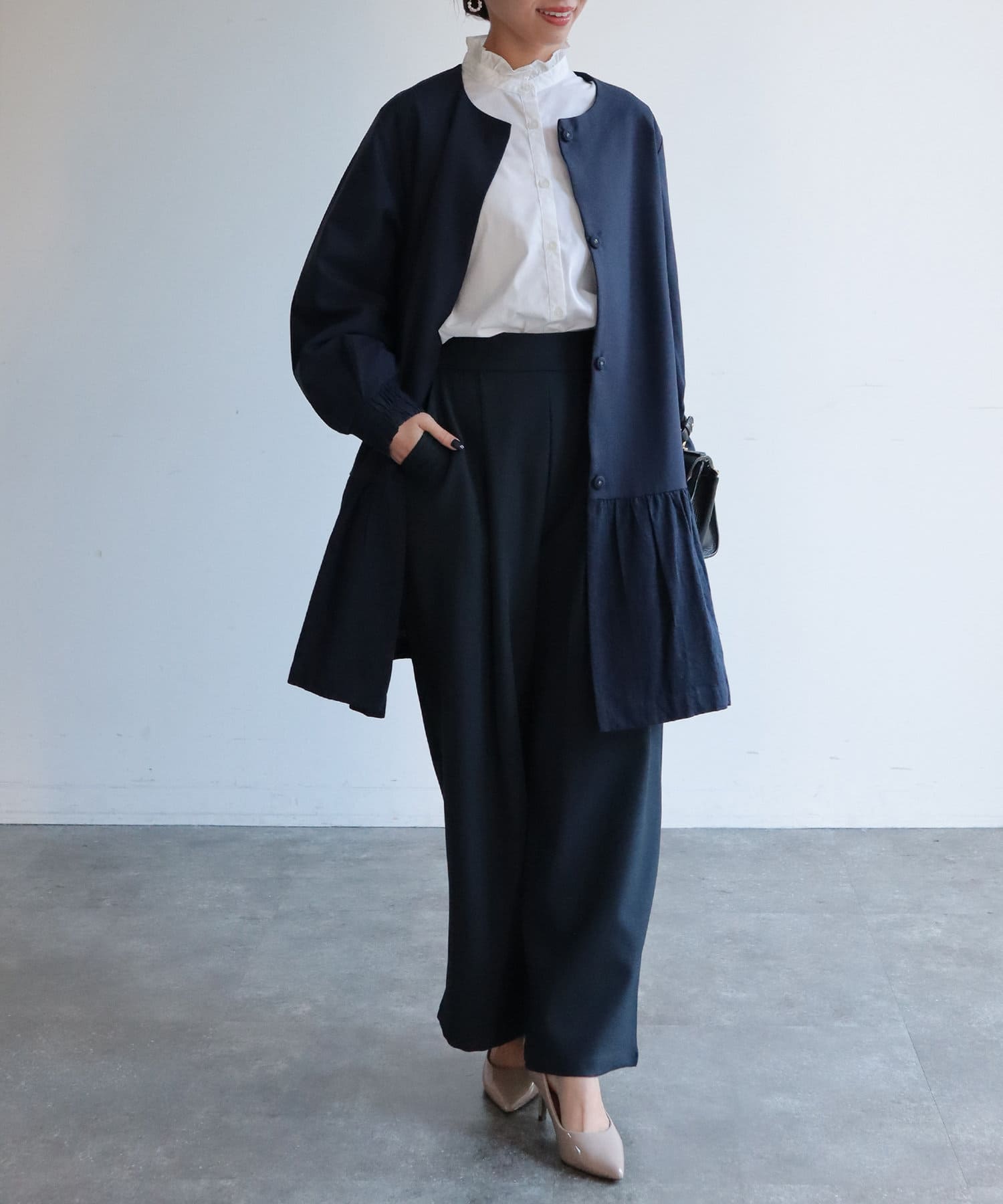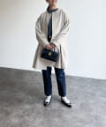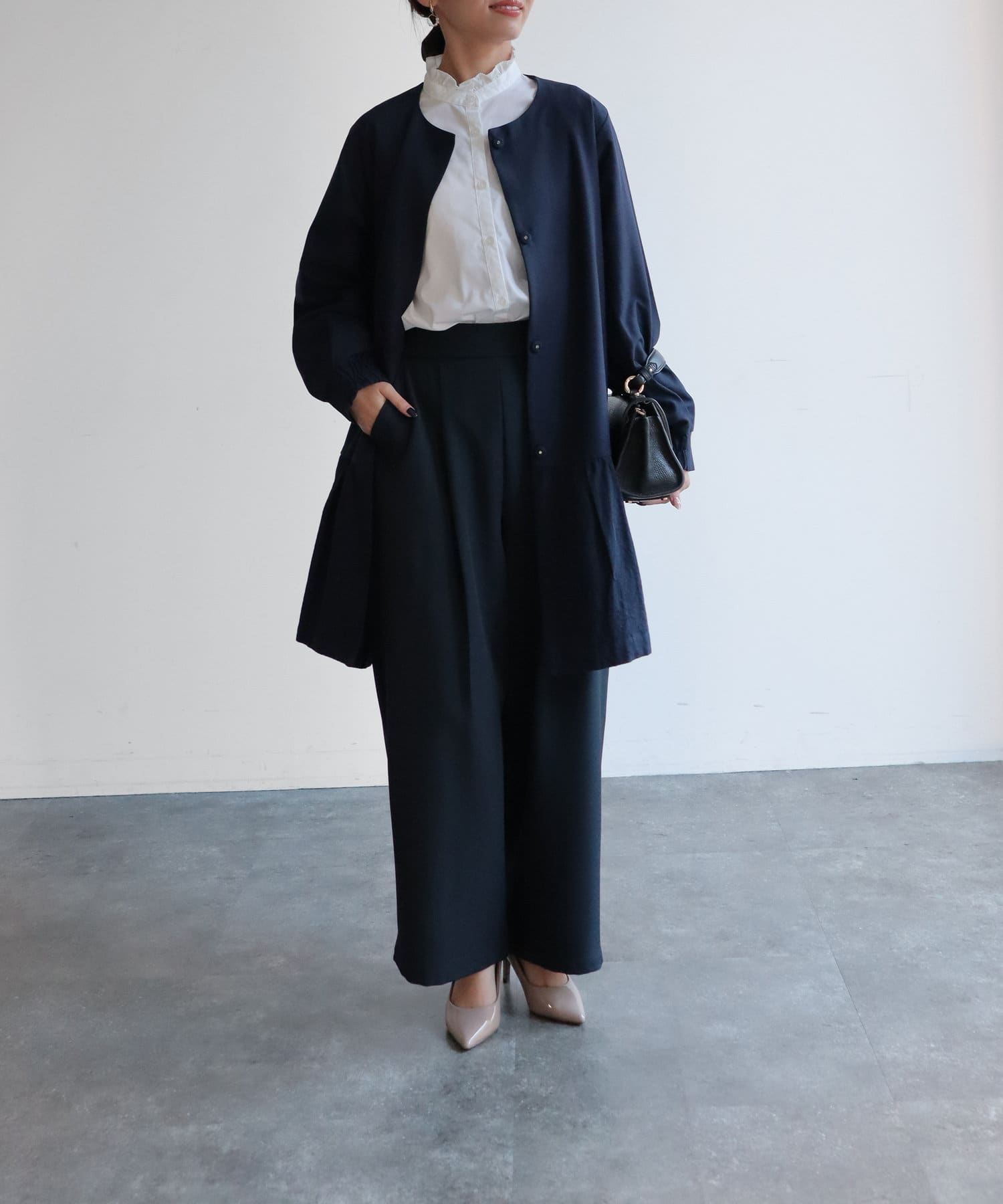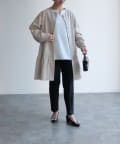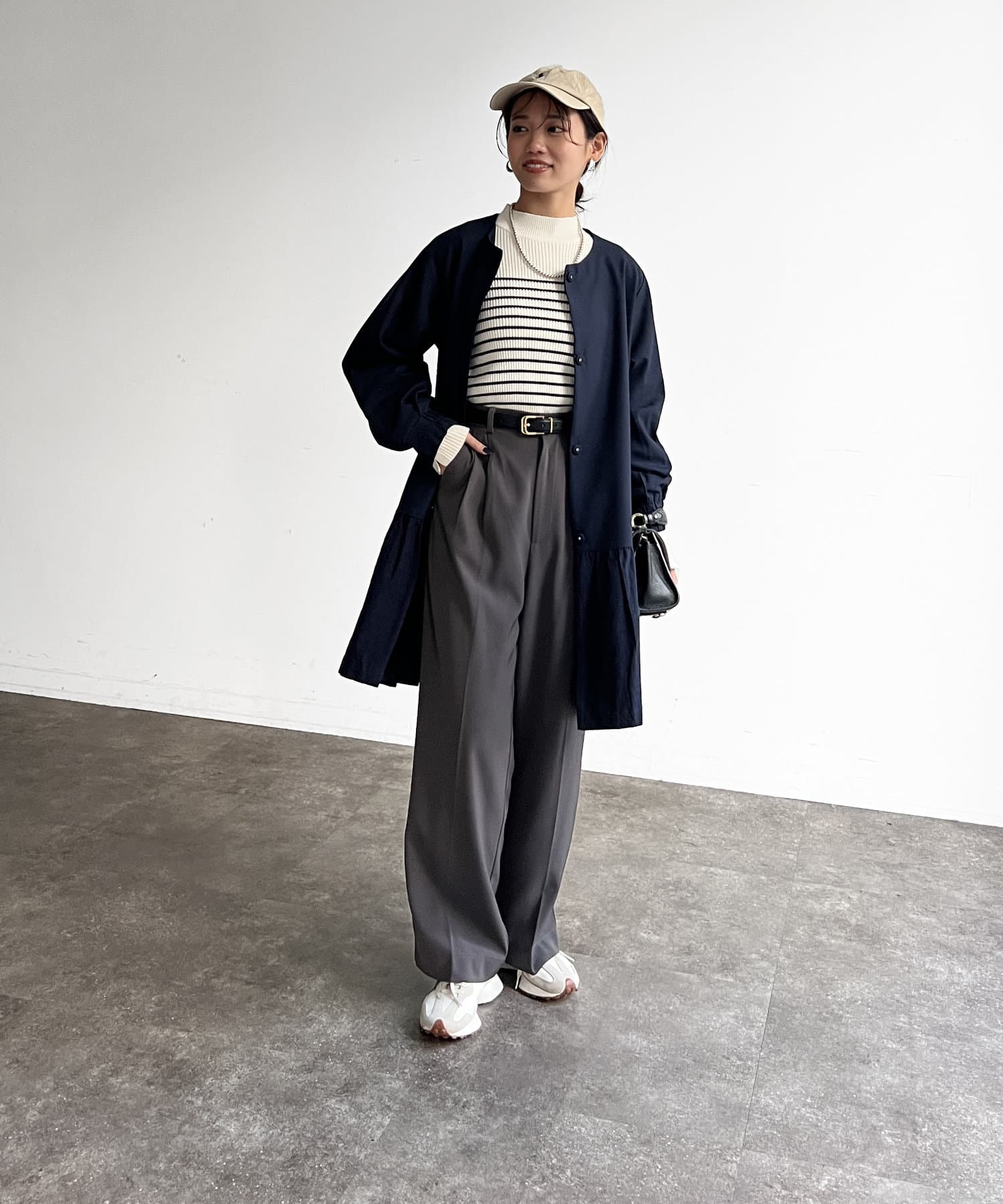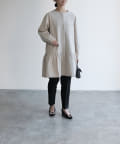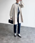 ノーカラーコートはハイネックのニットなどのレイヤードコーデもおすすめ。
