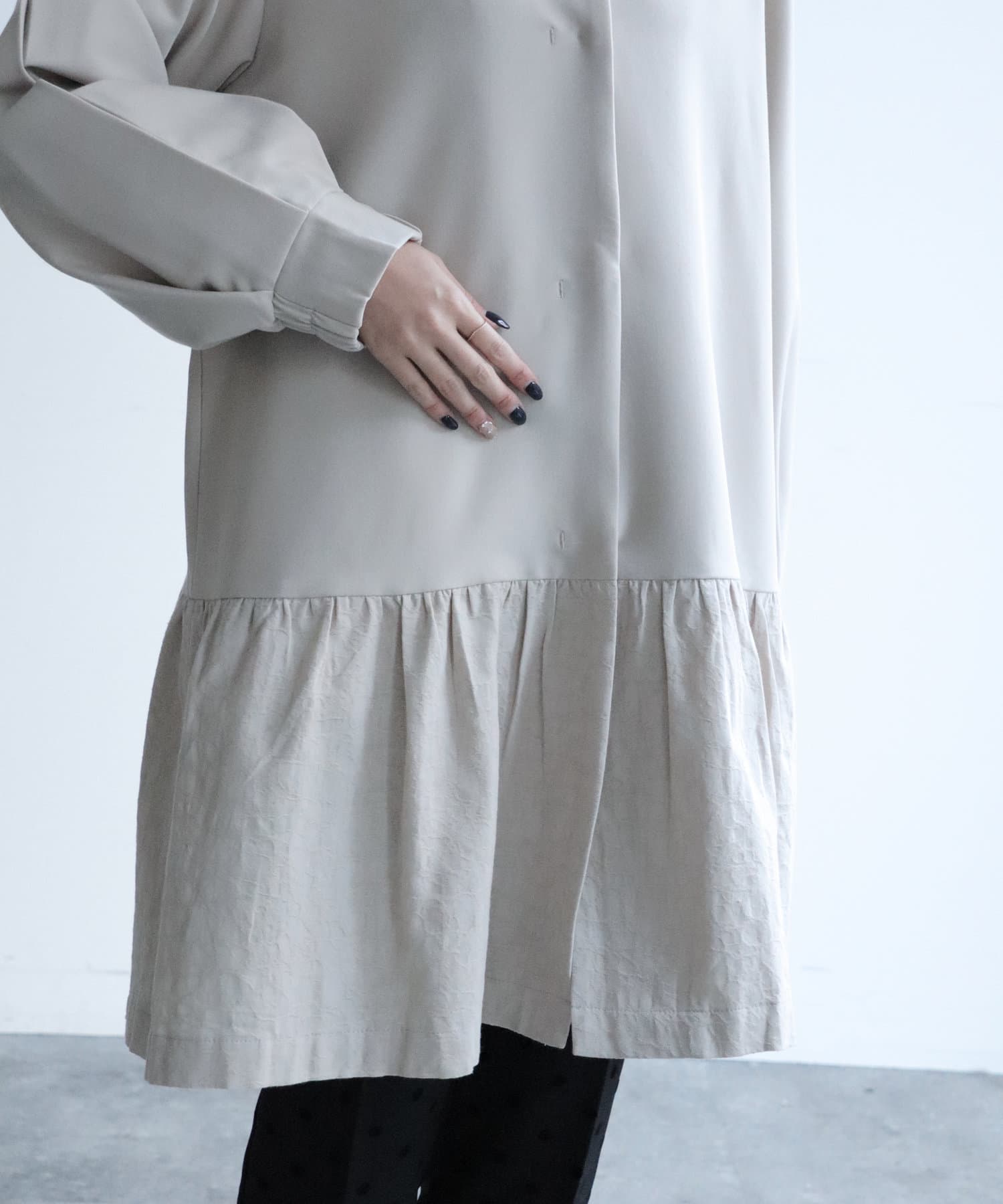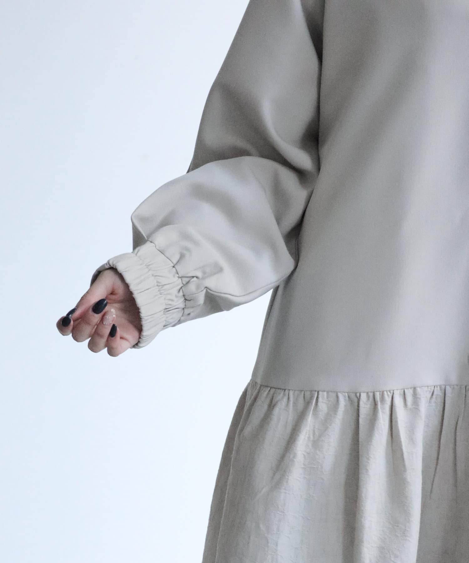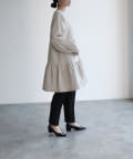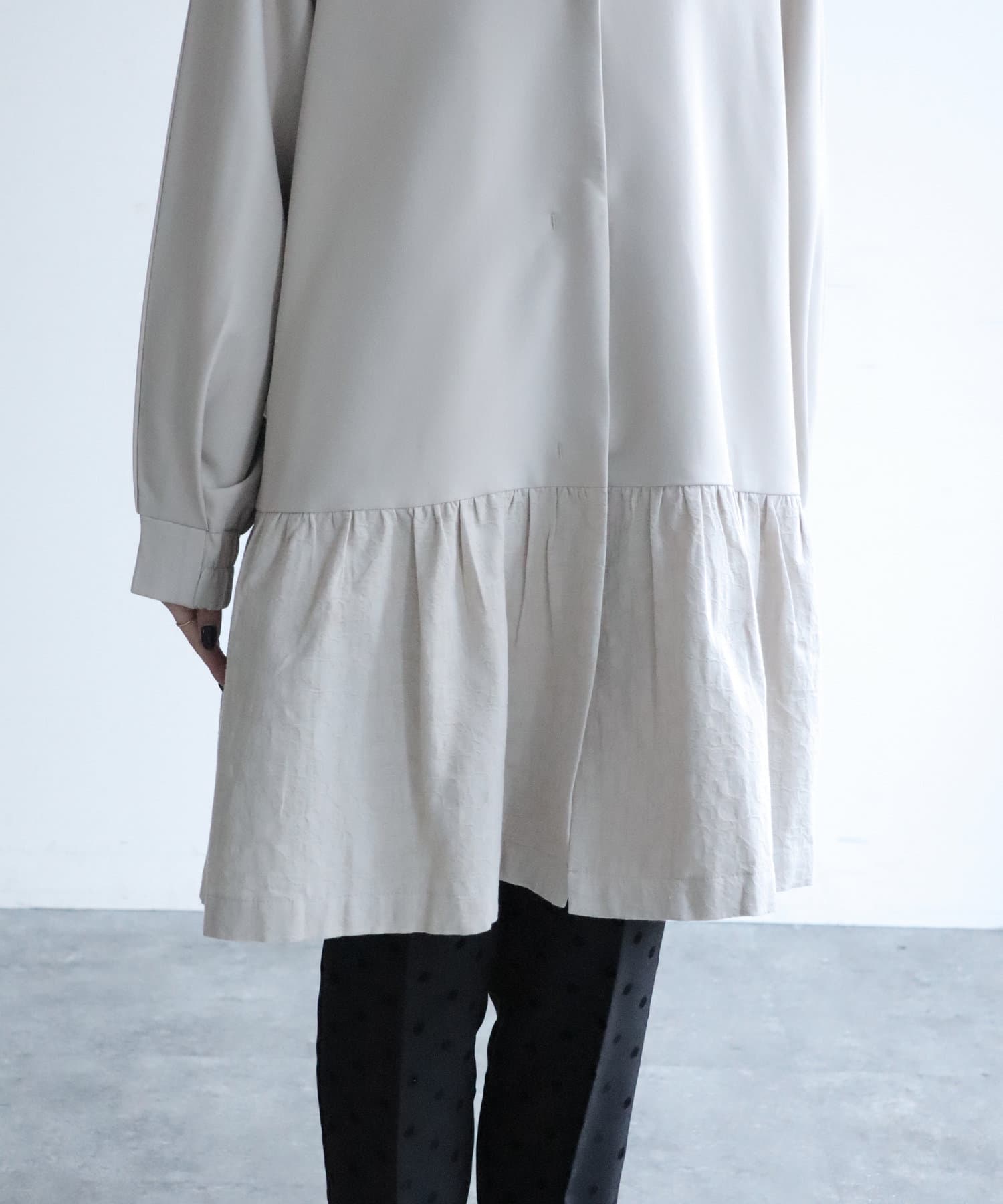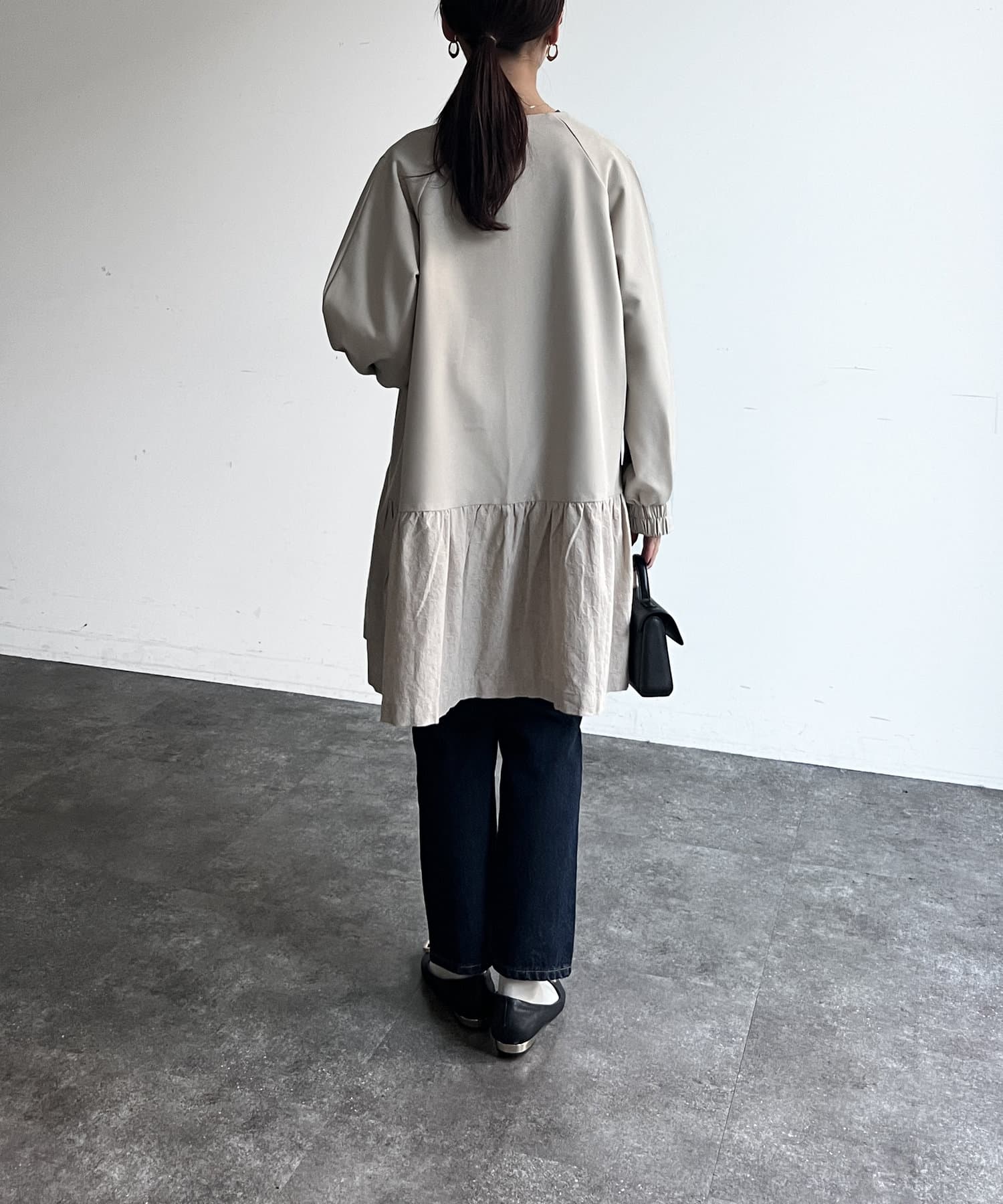 ペプラムの素材は異素材の生地を使用し、広がりすぎないシルエットは