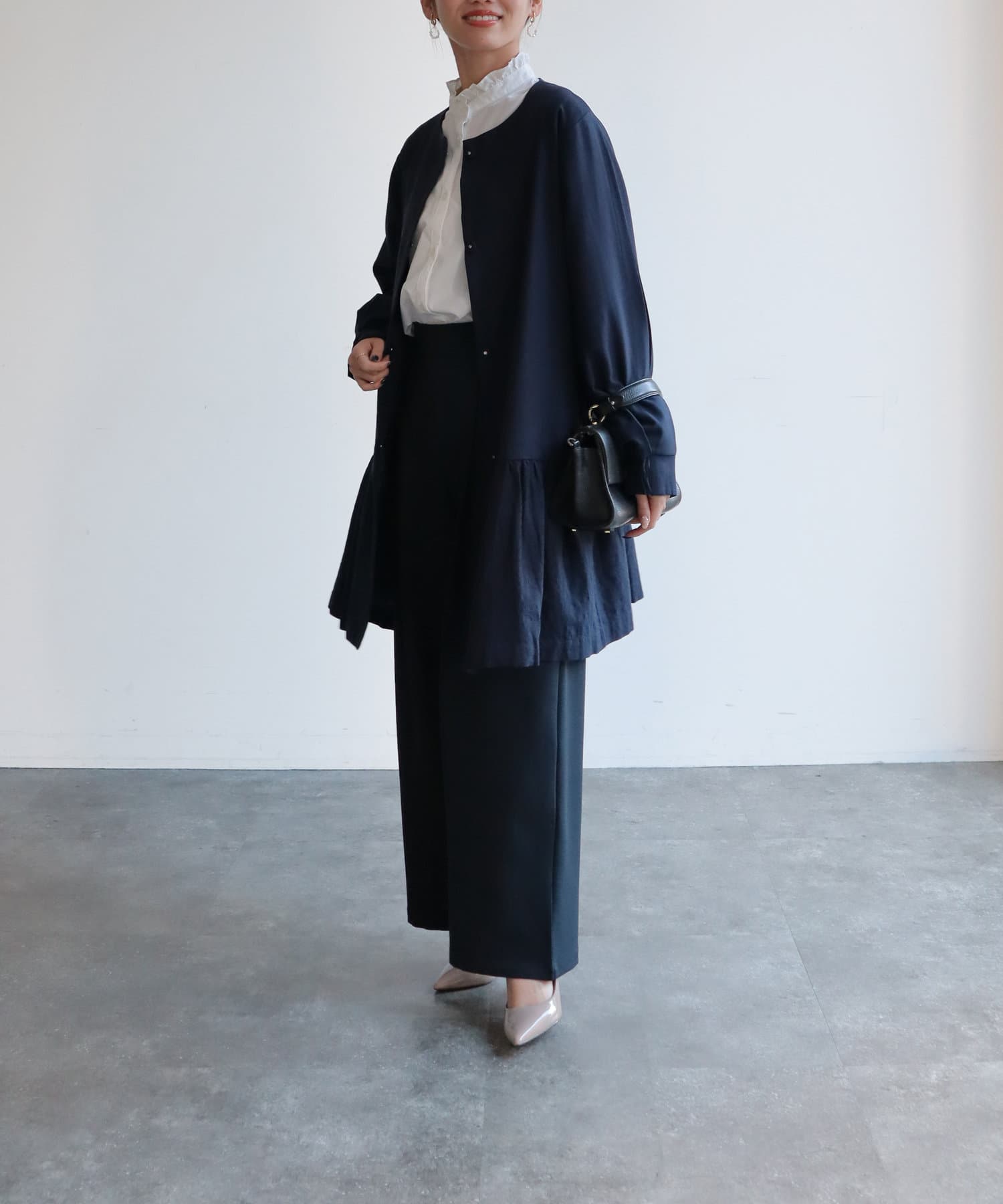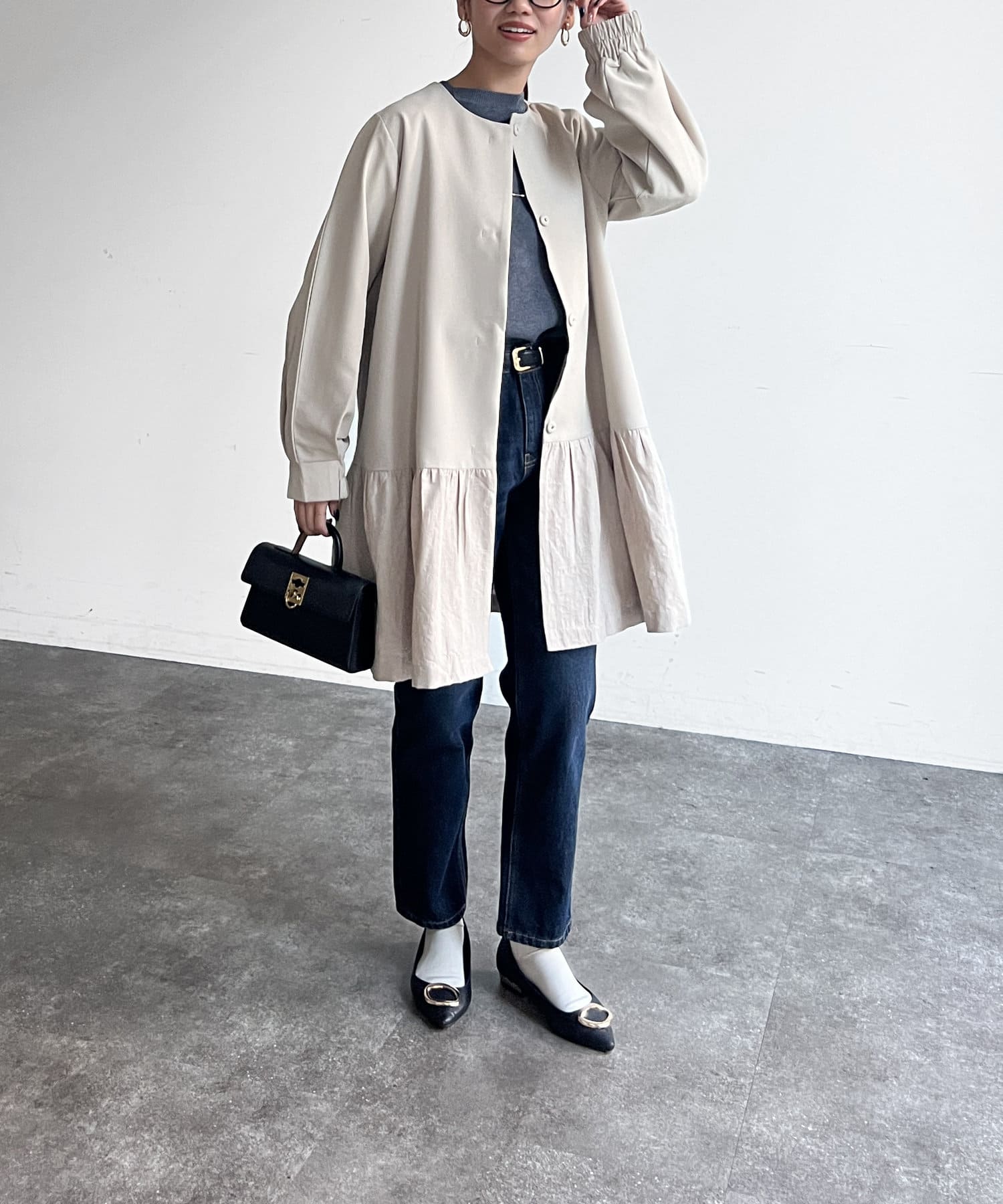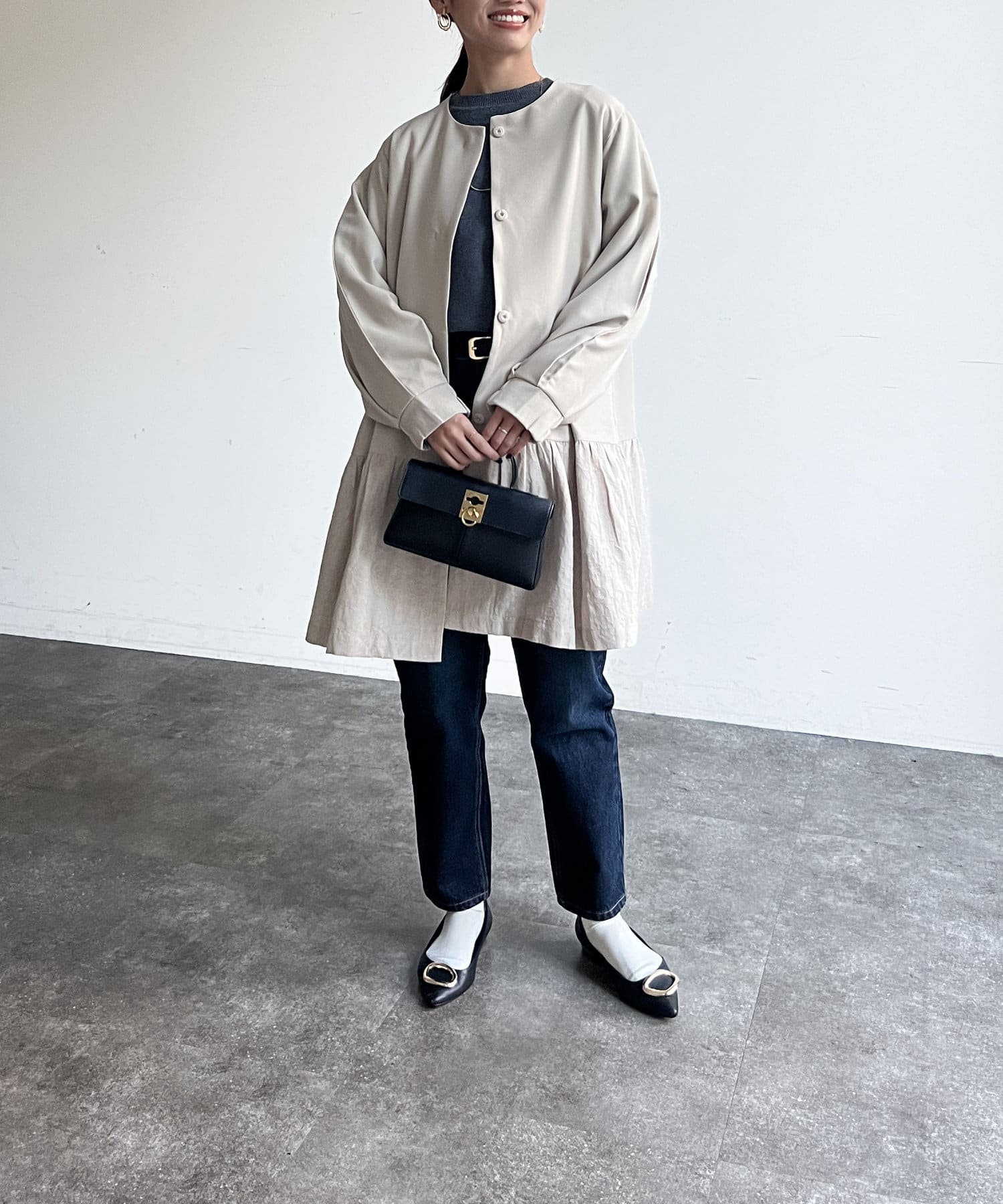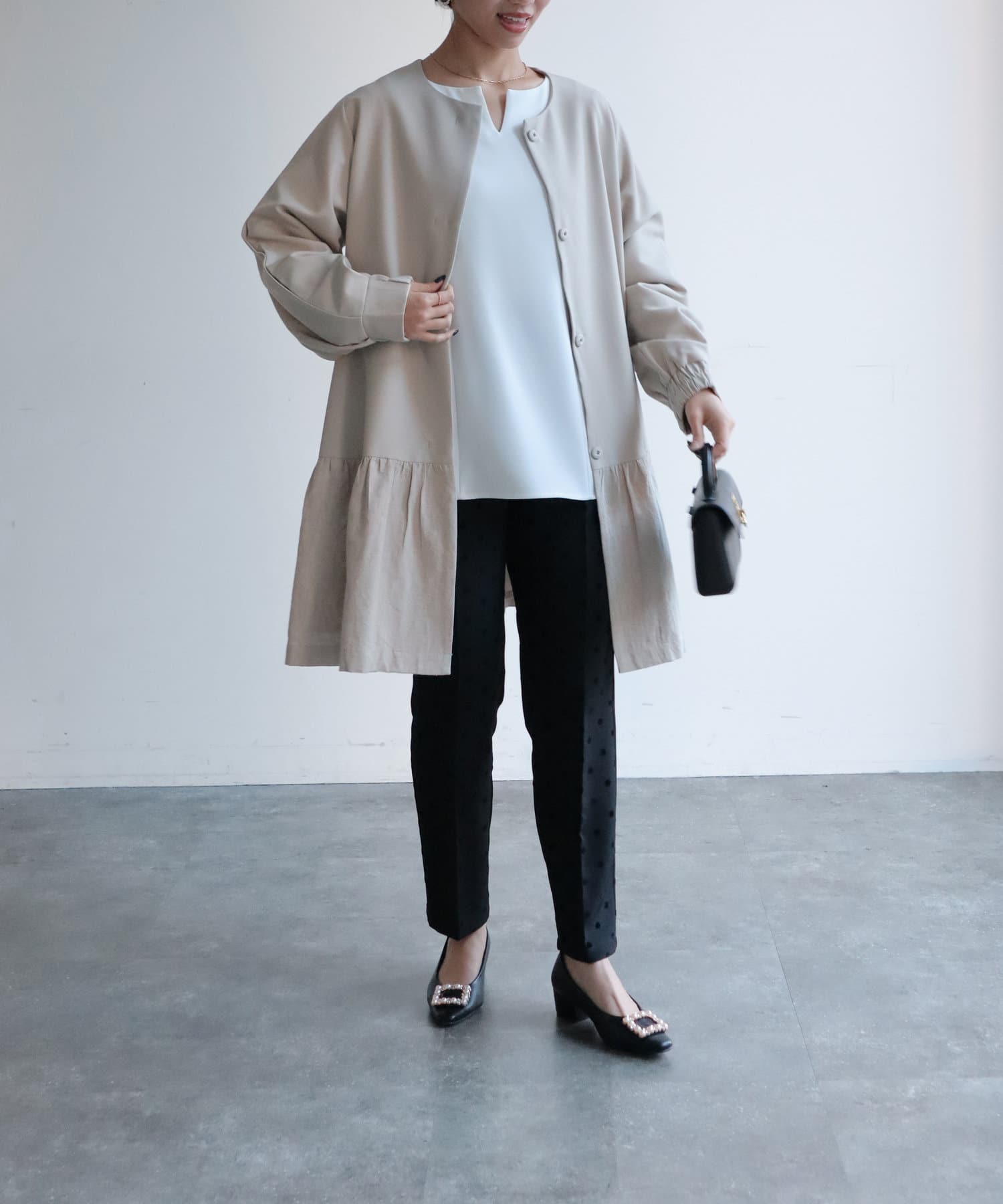 またノーカラーなのでお顔周りはすっきりとした印象に。