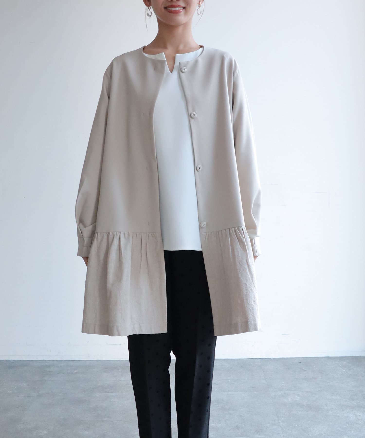 品番 PGC1042608A0001 素材 表地:ポリエステル60%レーヨン30%ポリウレタン10%別布:綿70%麻30%裏地:ポリエステル100% 原産国 中国 サイズ F カテゴリ ジャケット/アウター > ノーカラーコート タイプ レディース ギフト ラッピング 可 取り扱い 本体:手洗い可能 アイテムサイズ