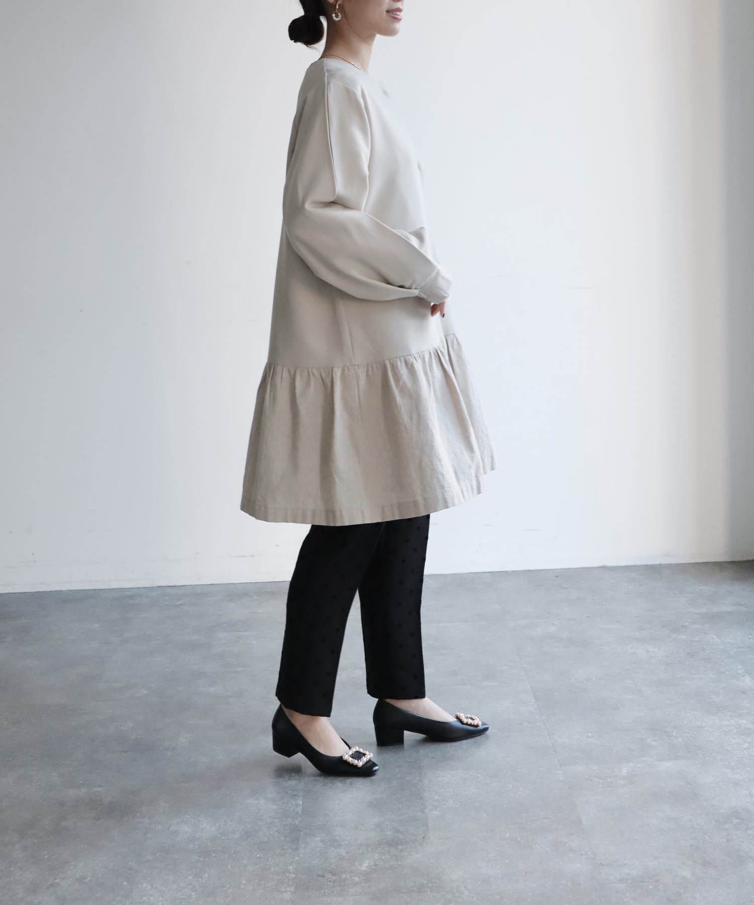 【セレモニー対応可】フロッキードットテーパードパンツ