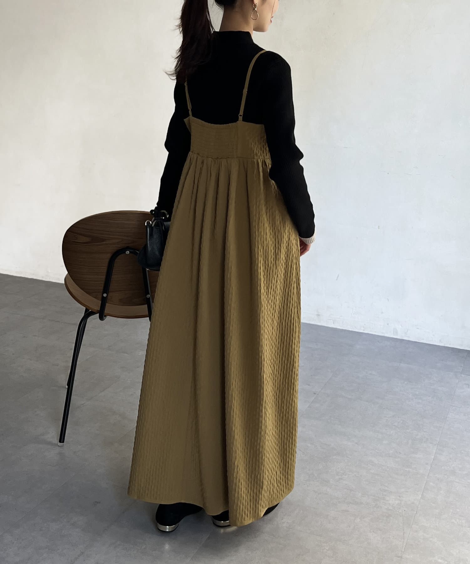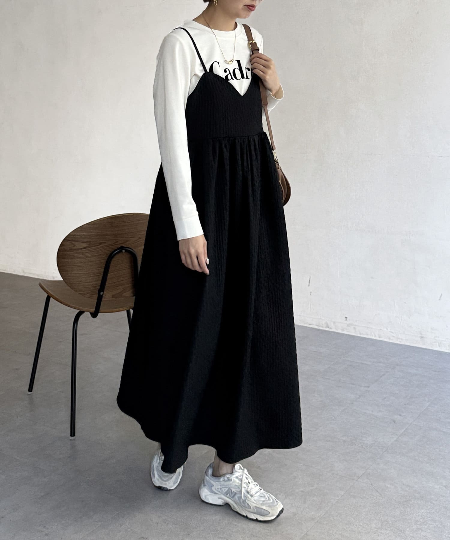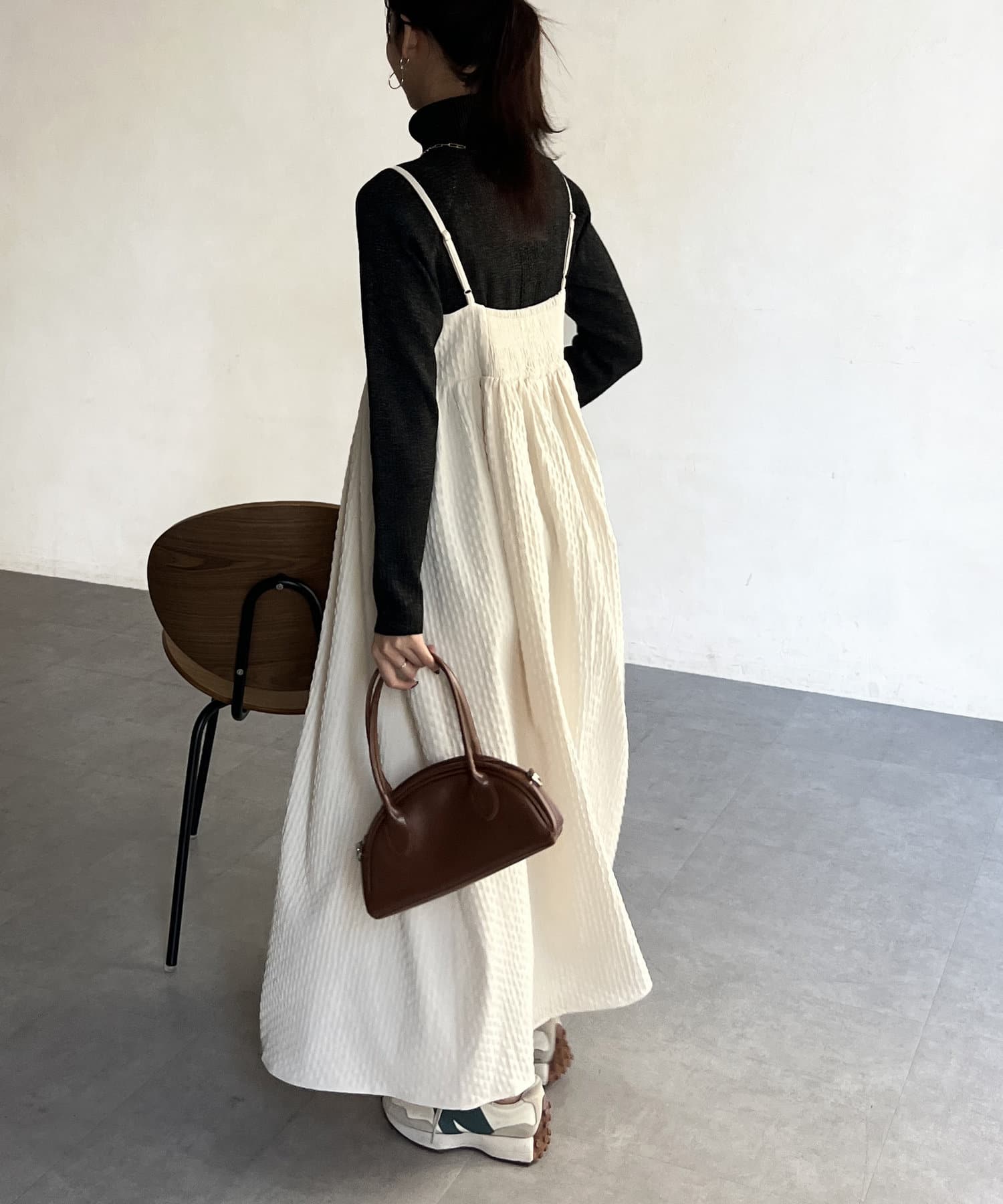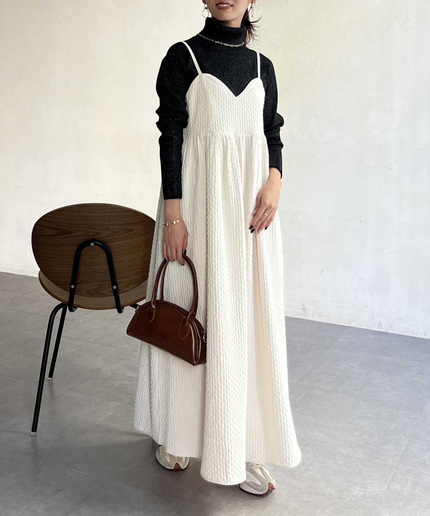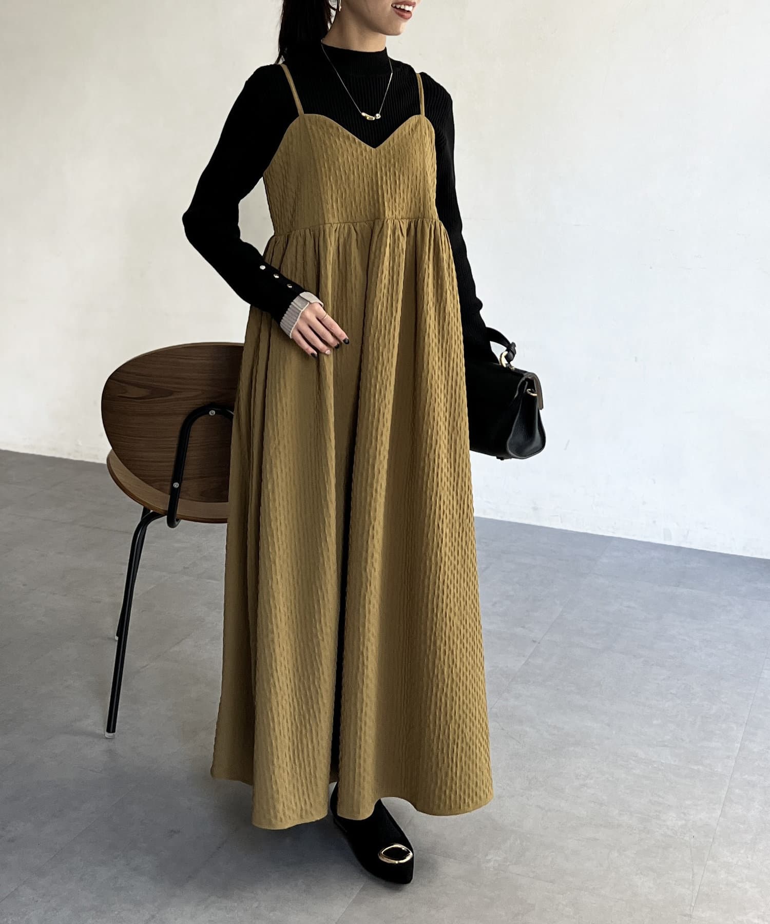 エレガントな印象のジャガード生地を使用した女性らしいキャミワンピース。