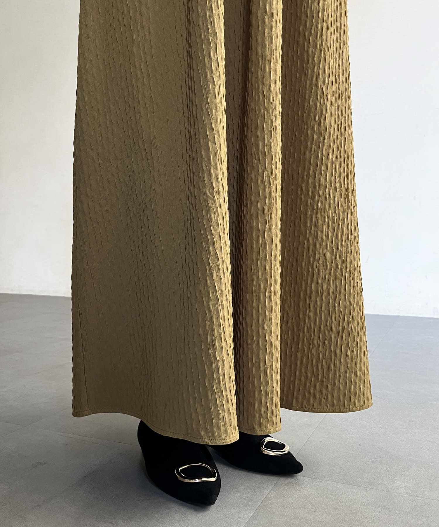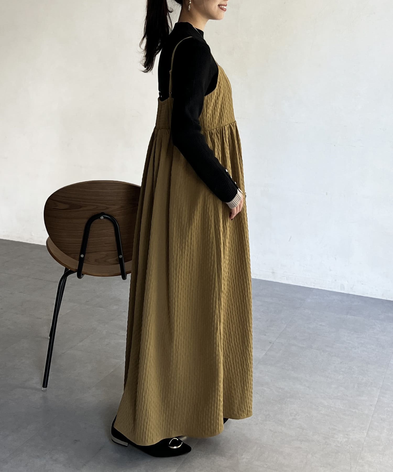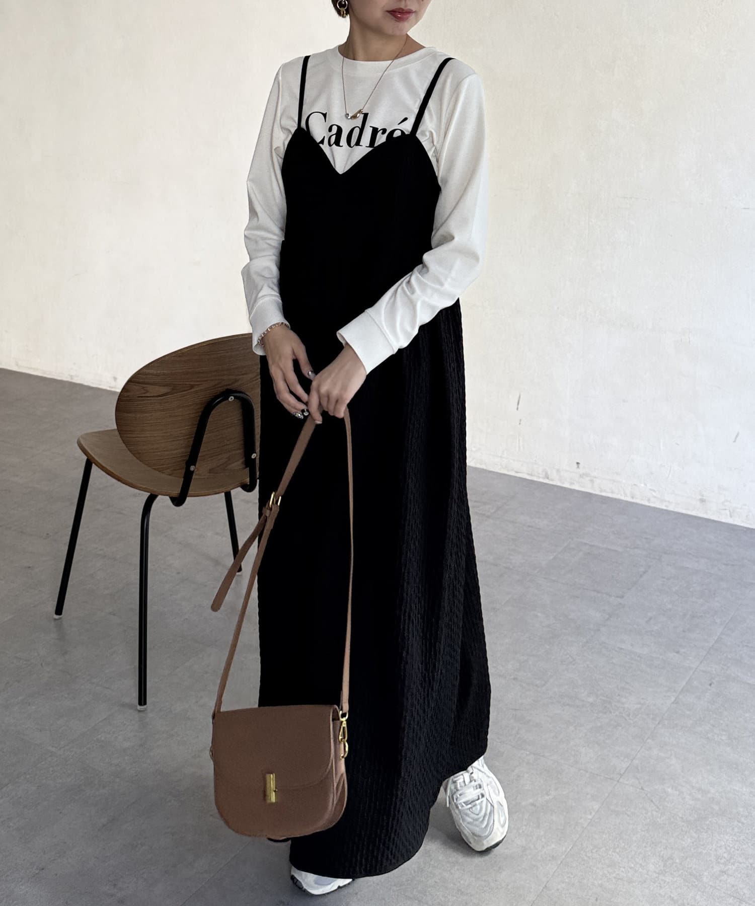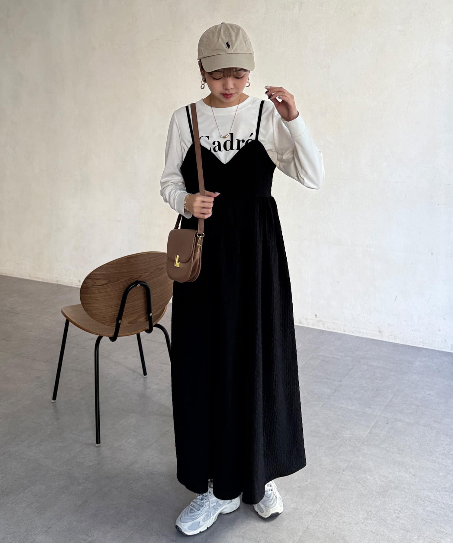 エレガントな印象のジャガード生地を使用した女性らしいキャミワンピース。