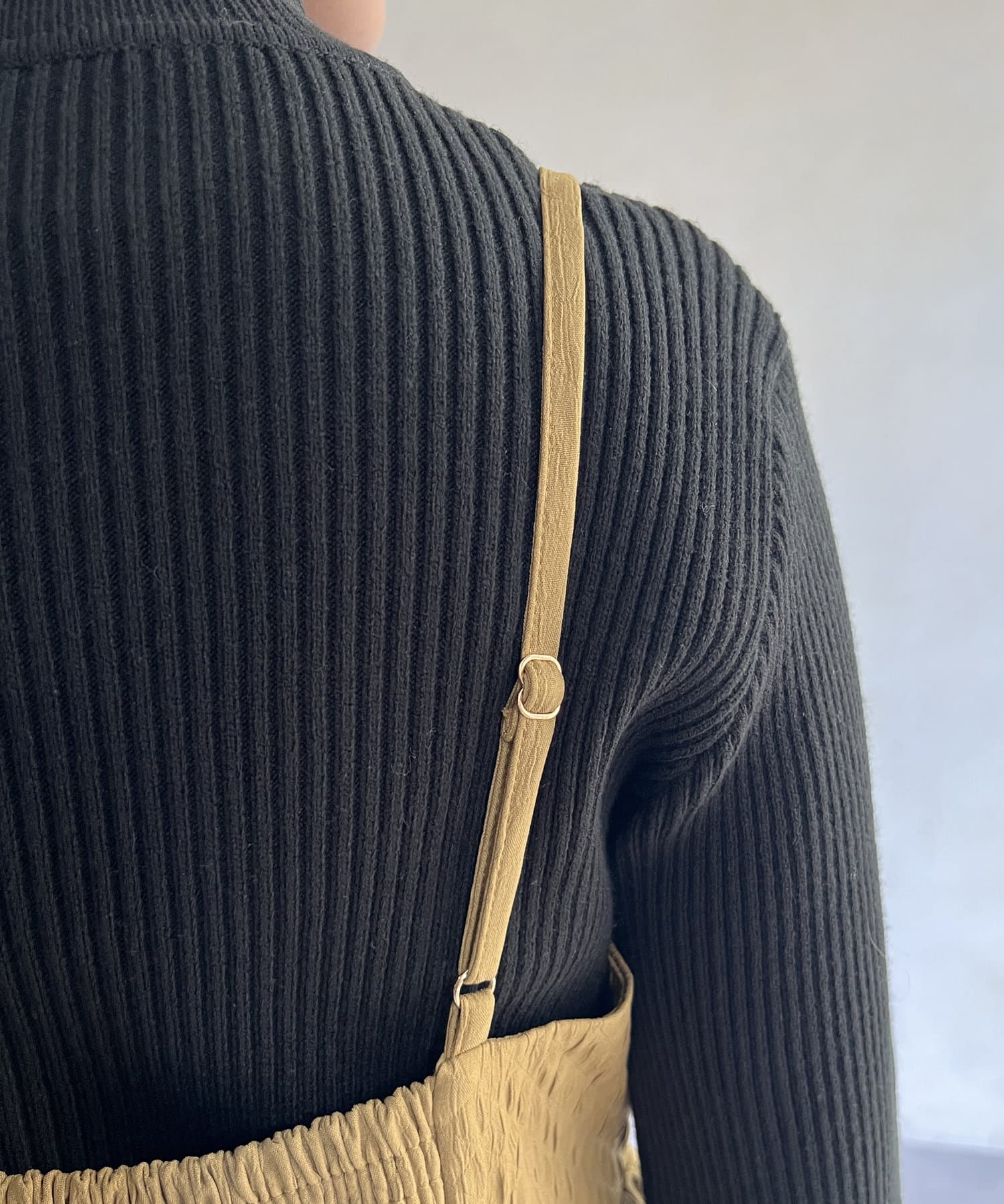 華奢な肩紐とVネックは、お顔周りをスッキリと見せてくれます。