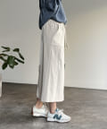ウエストは総ゴムで、ウエスト紐も付いてストレスフリーな履き心地。