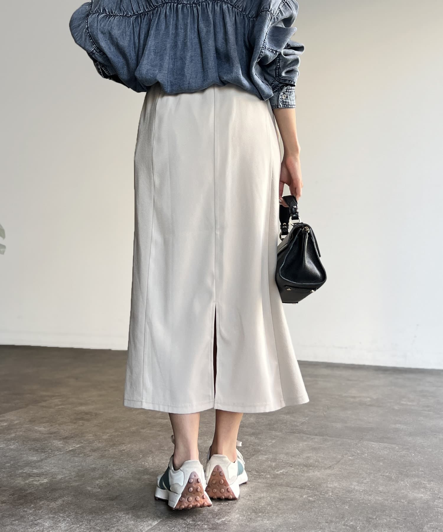 Iラインが綺麗に見えるナローシルエットに裾スリットを施したことで、軽やかさと動きやすさをプラス◎