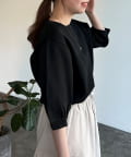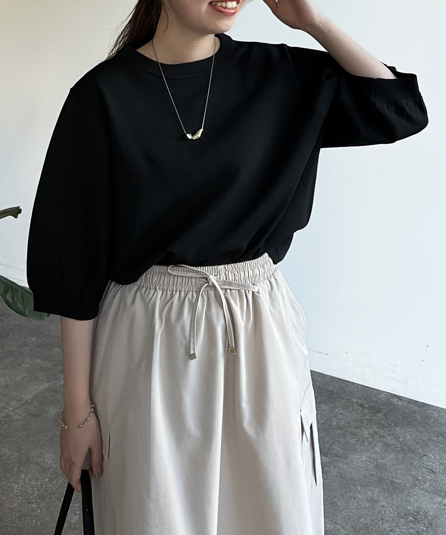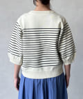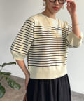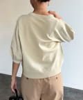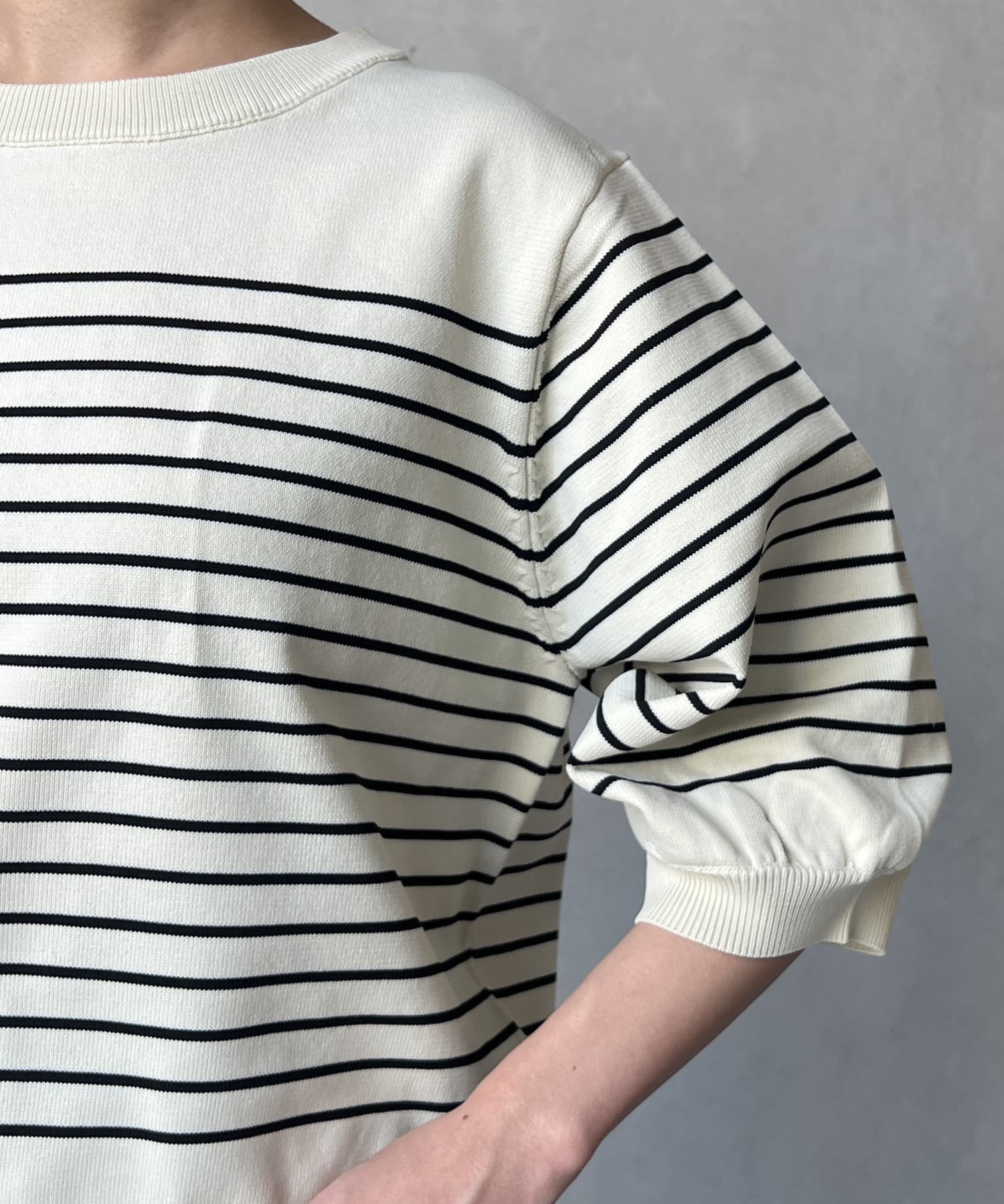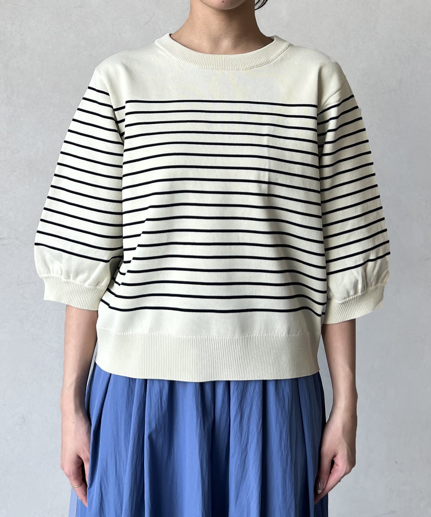 伸びやかで、薄手のニット素材を5分袖で仕上げ、長く着られる1枚に。