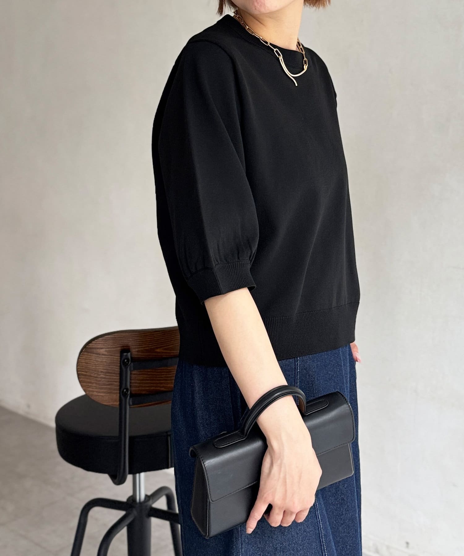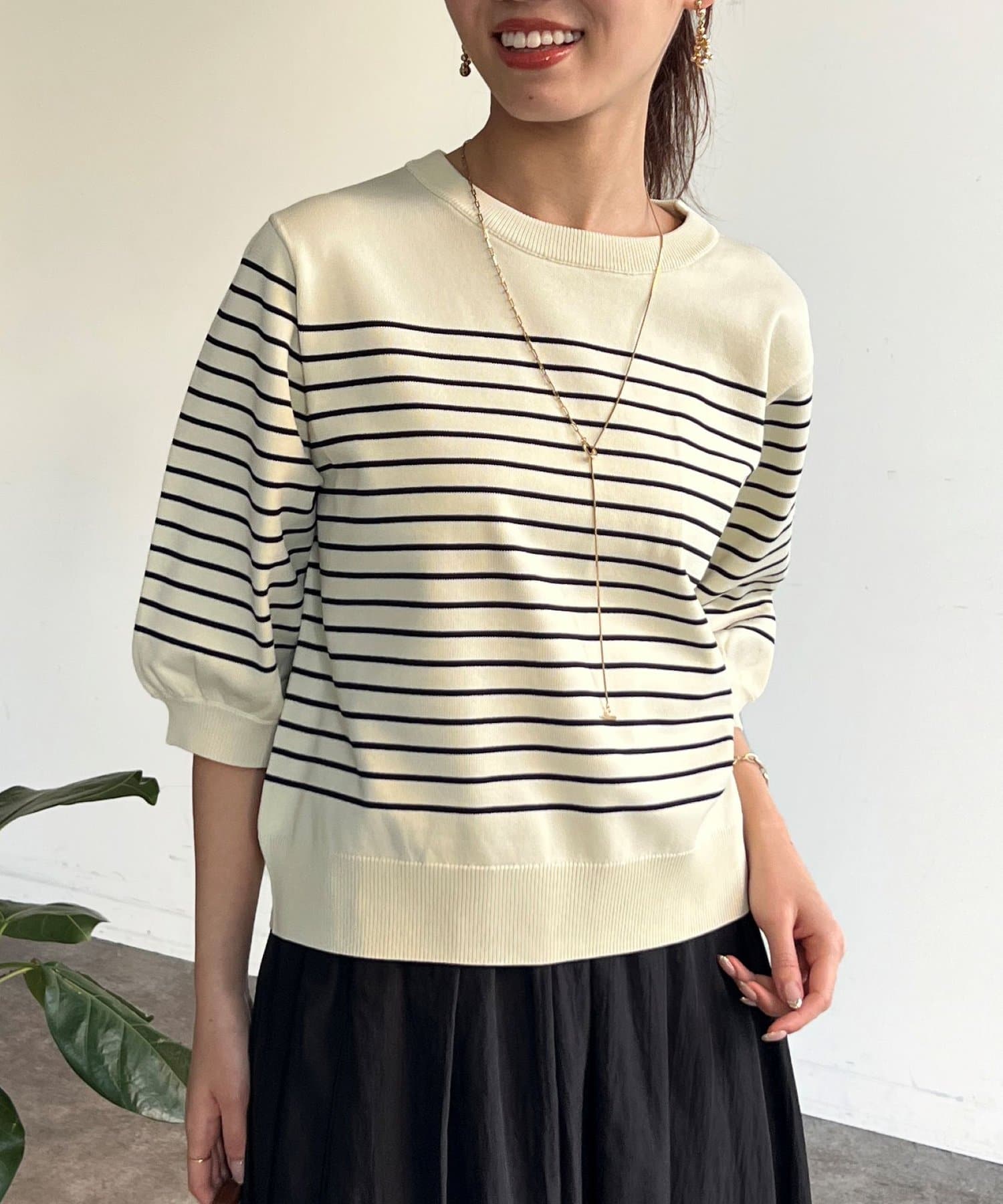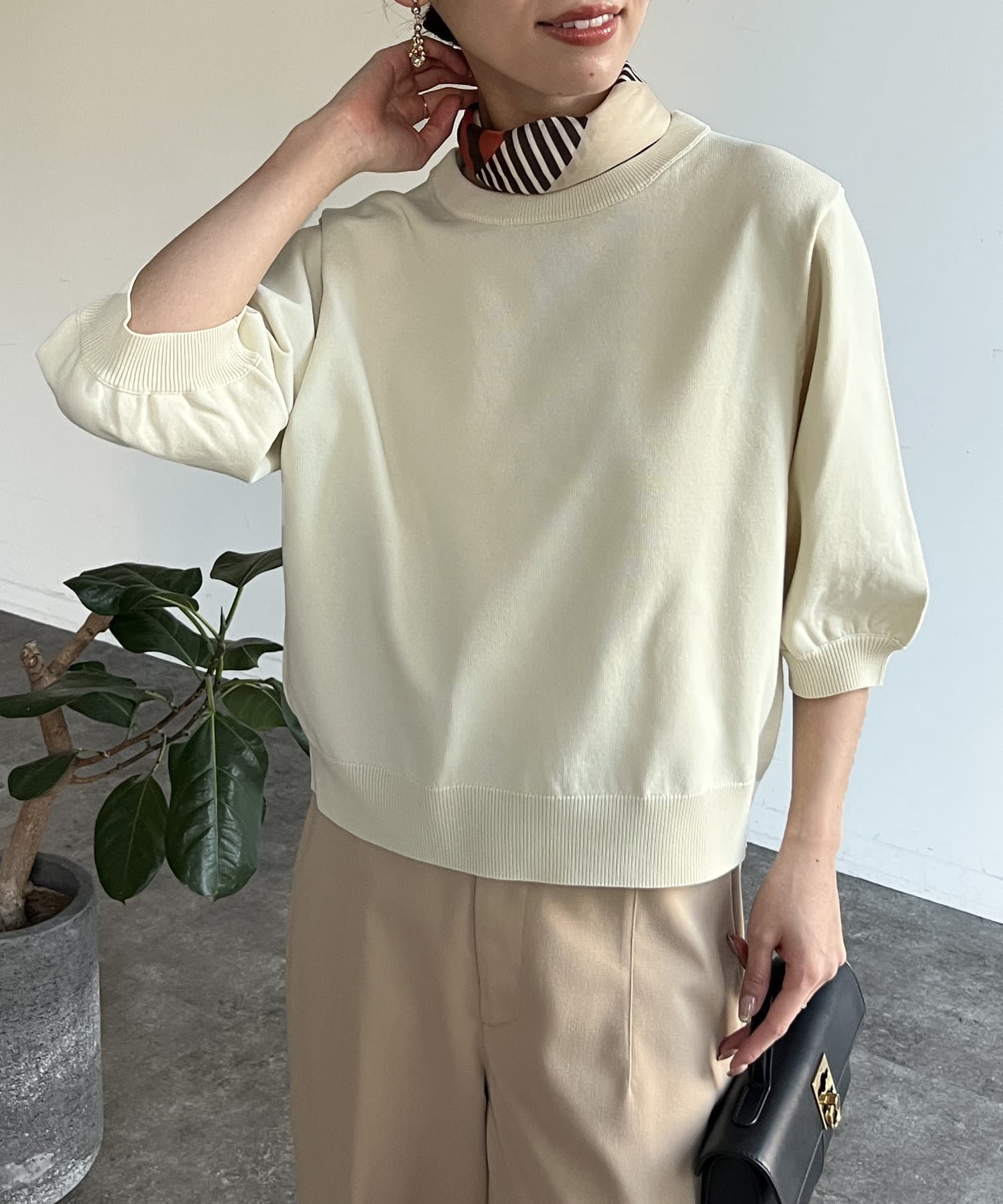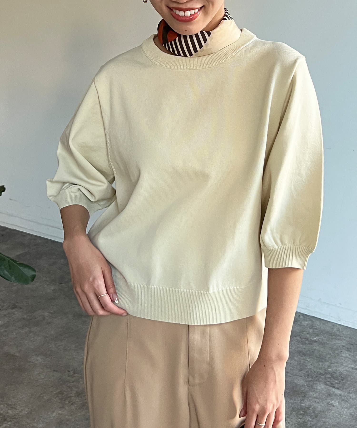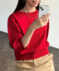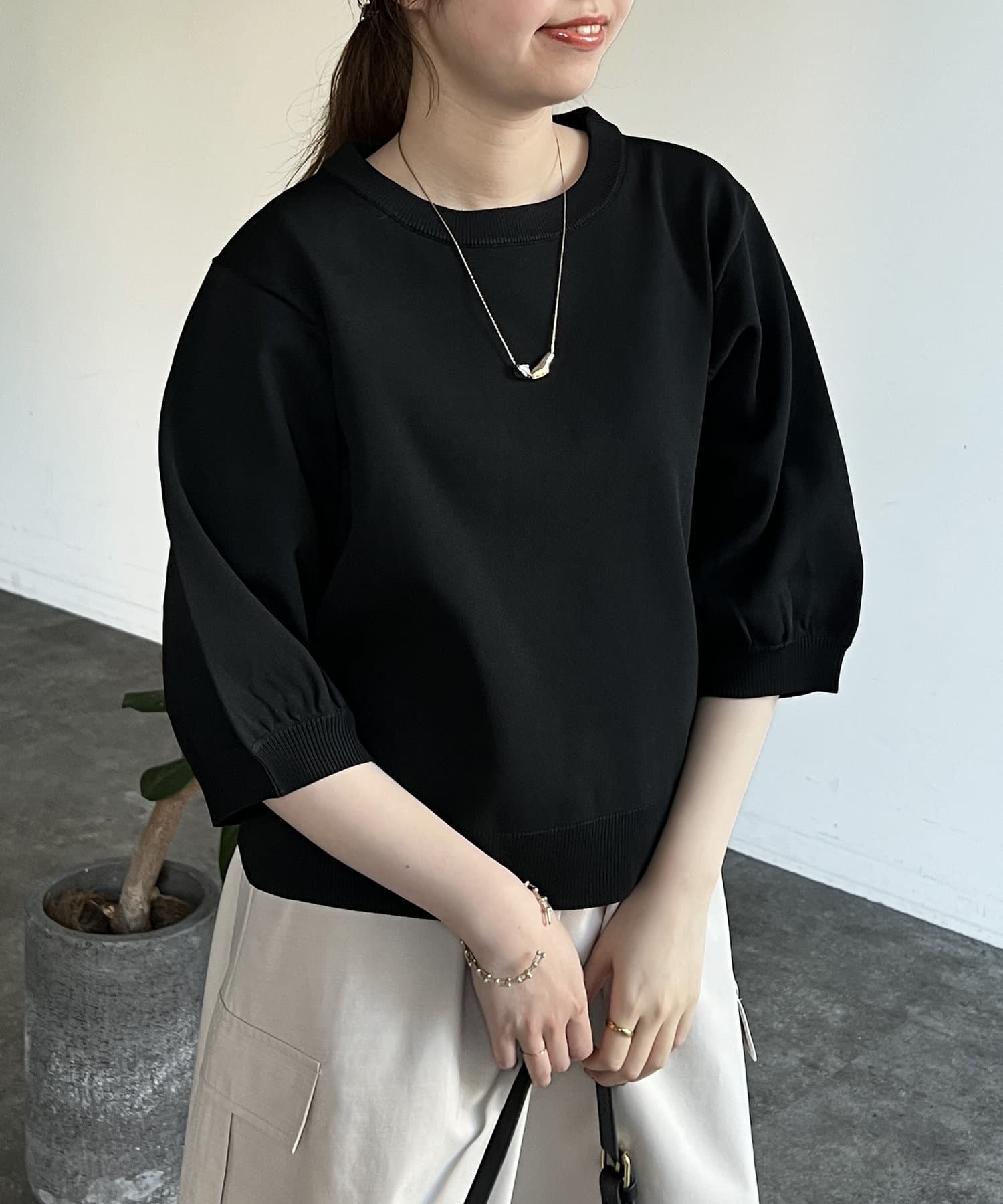 ベーシックで使いやすく、汎用性の高さがポイントの5分袖ニット。