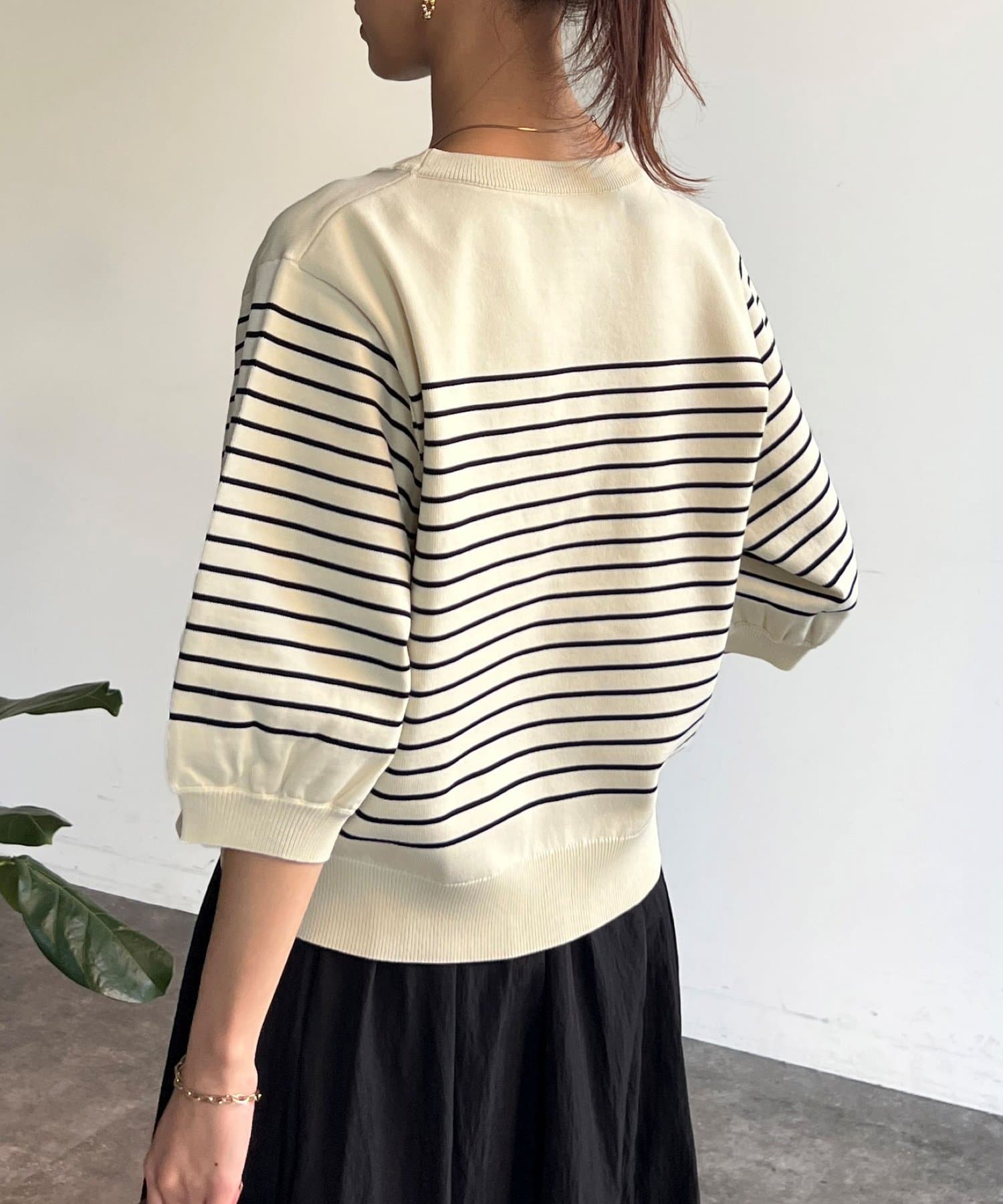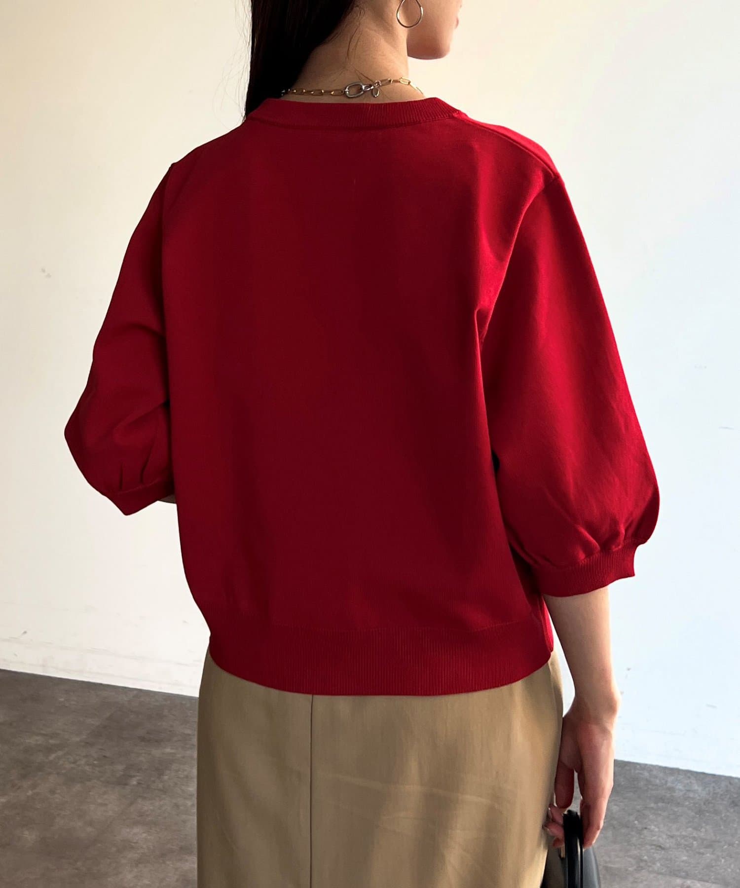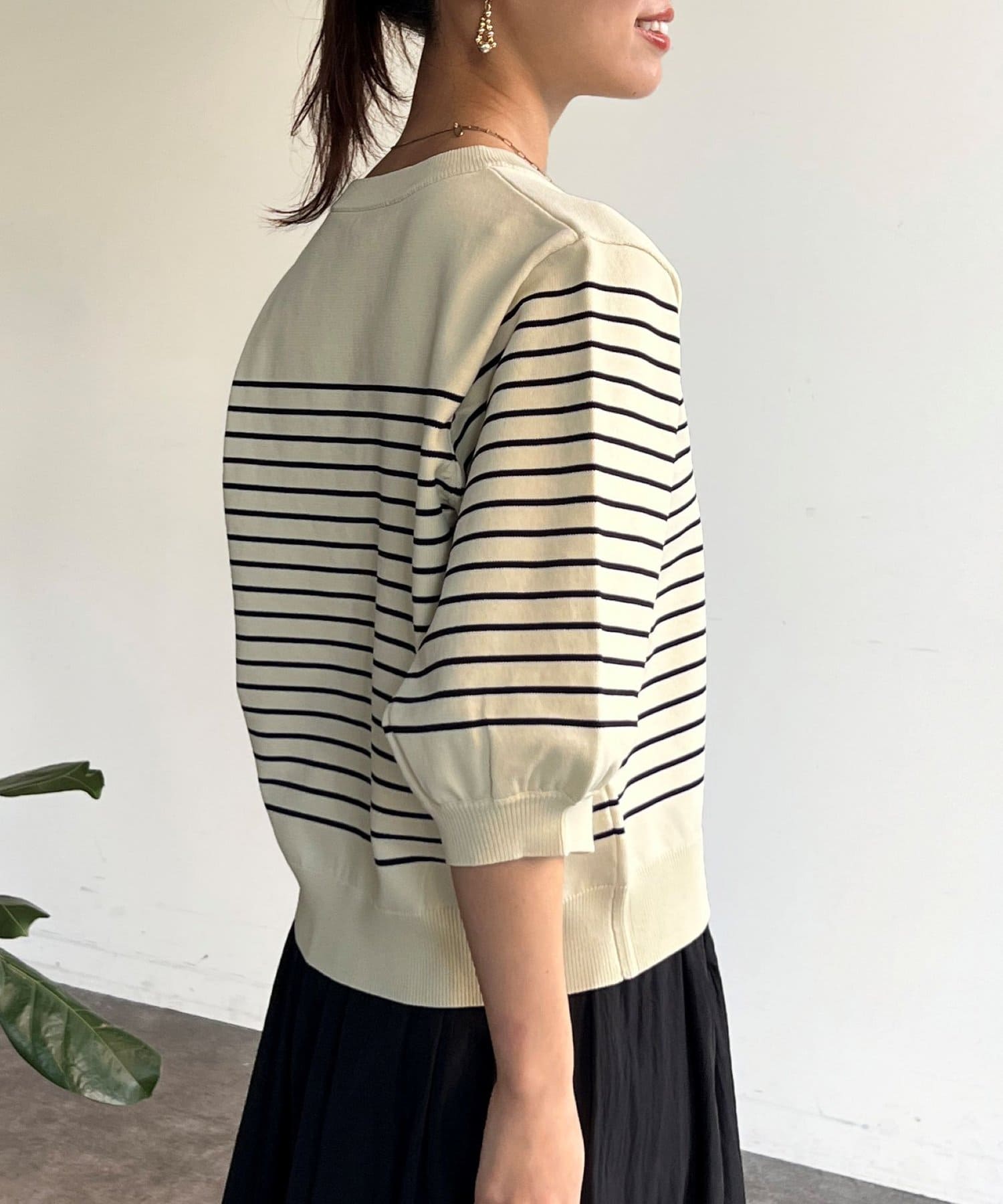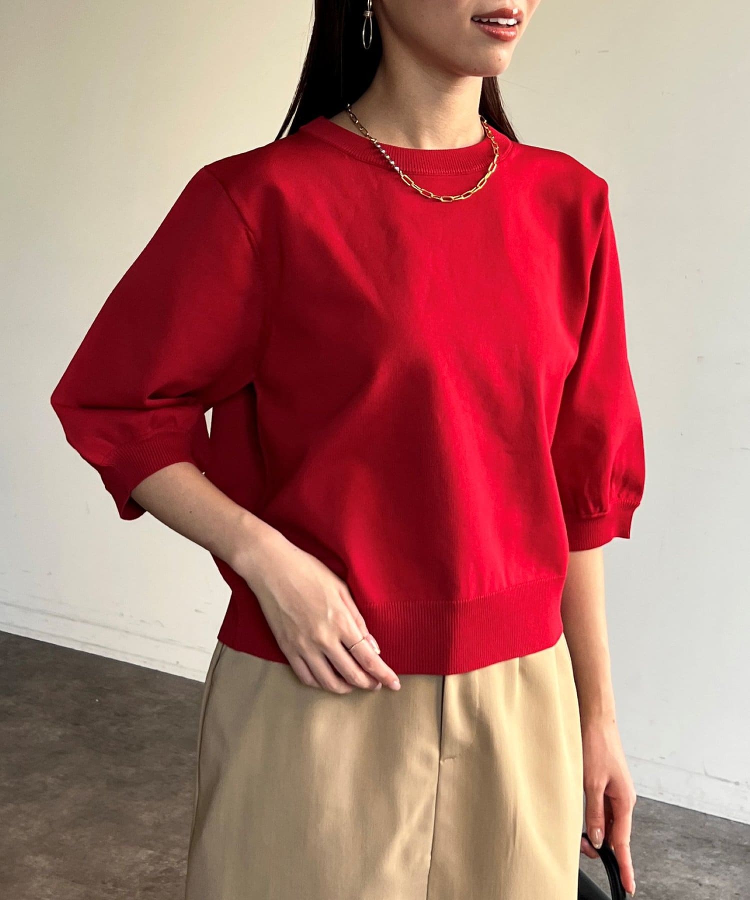 ベーシックで使いやすく、汎用性の高さがポイントの5分袖ニット。