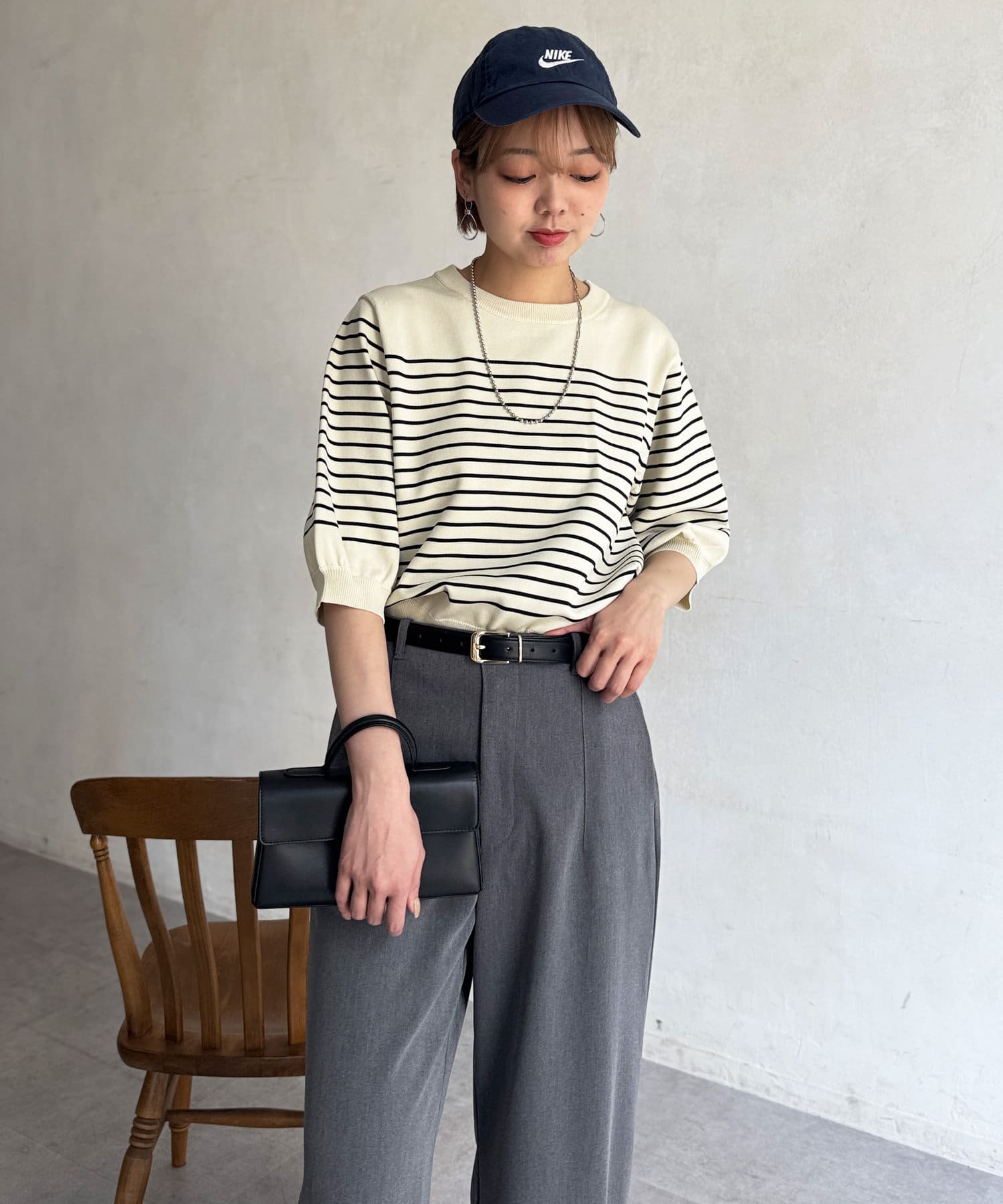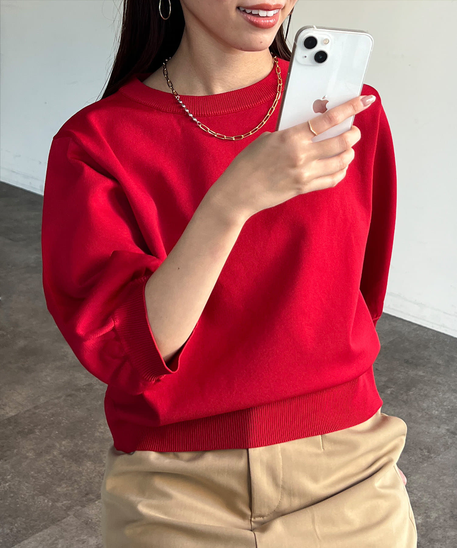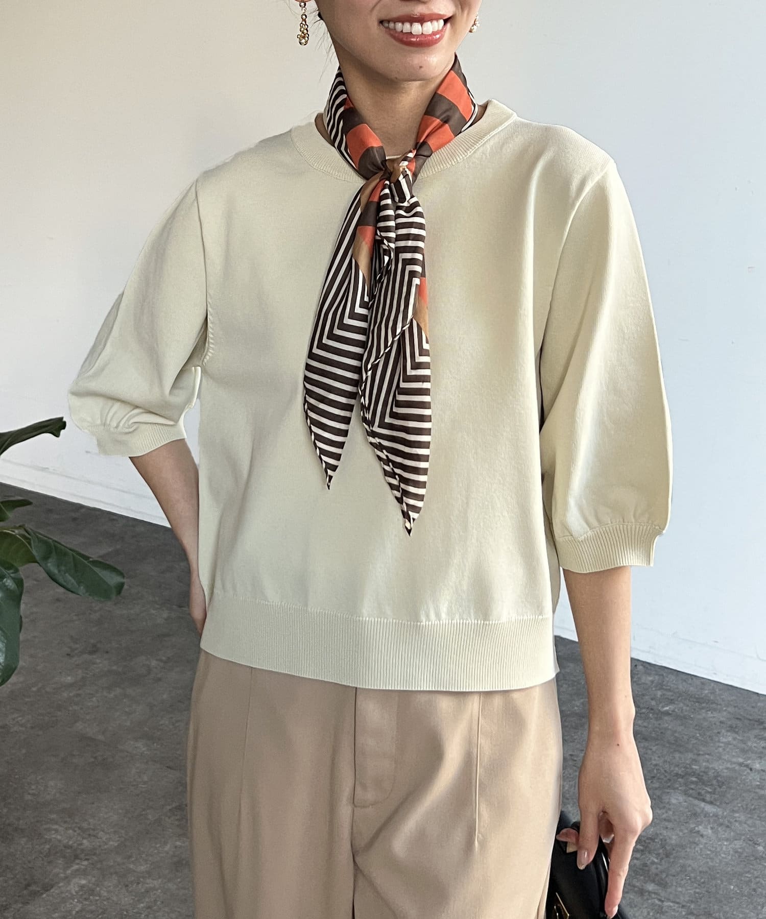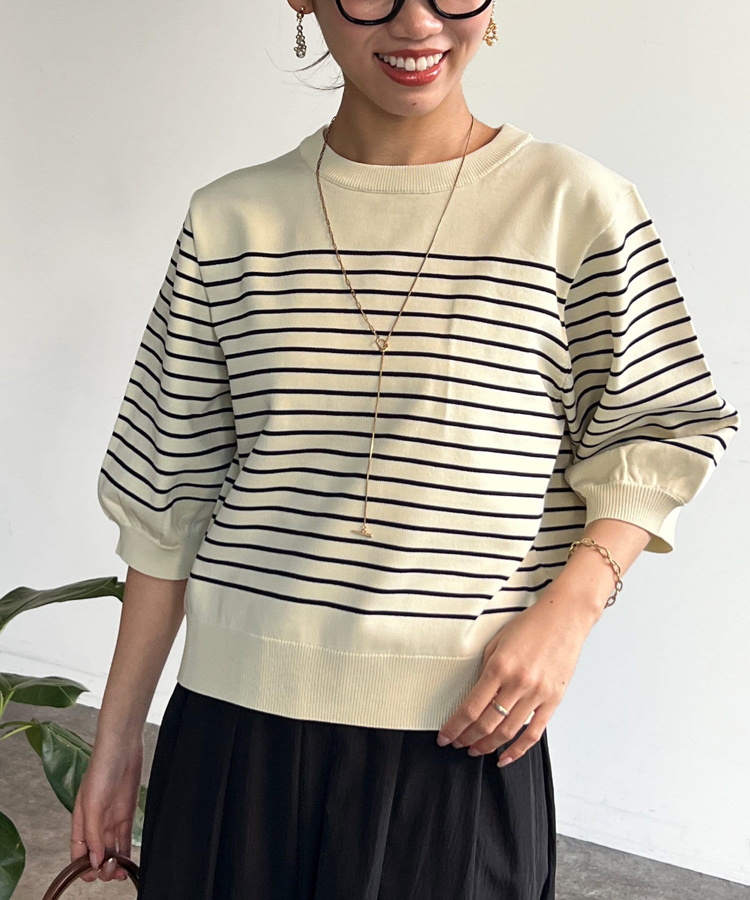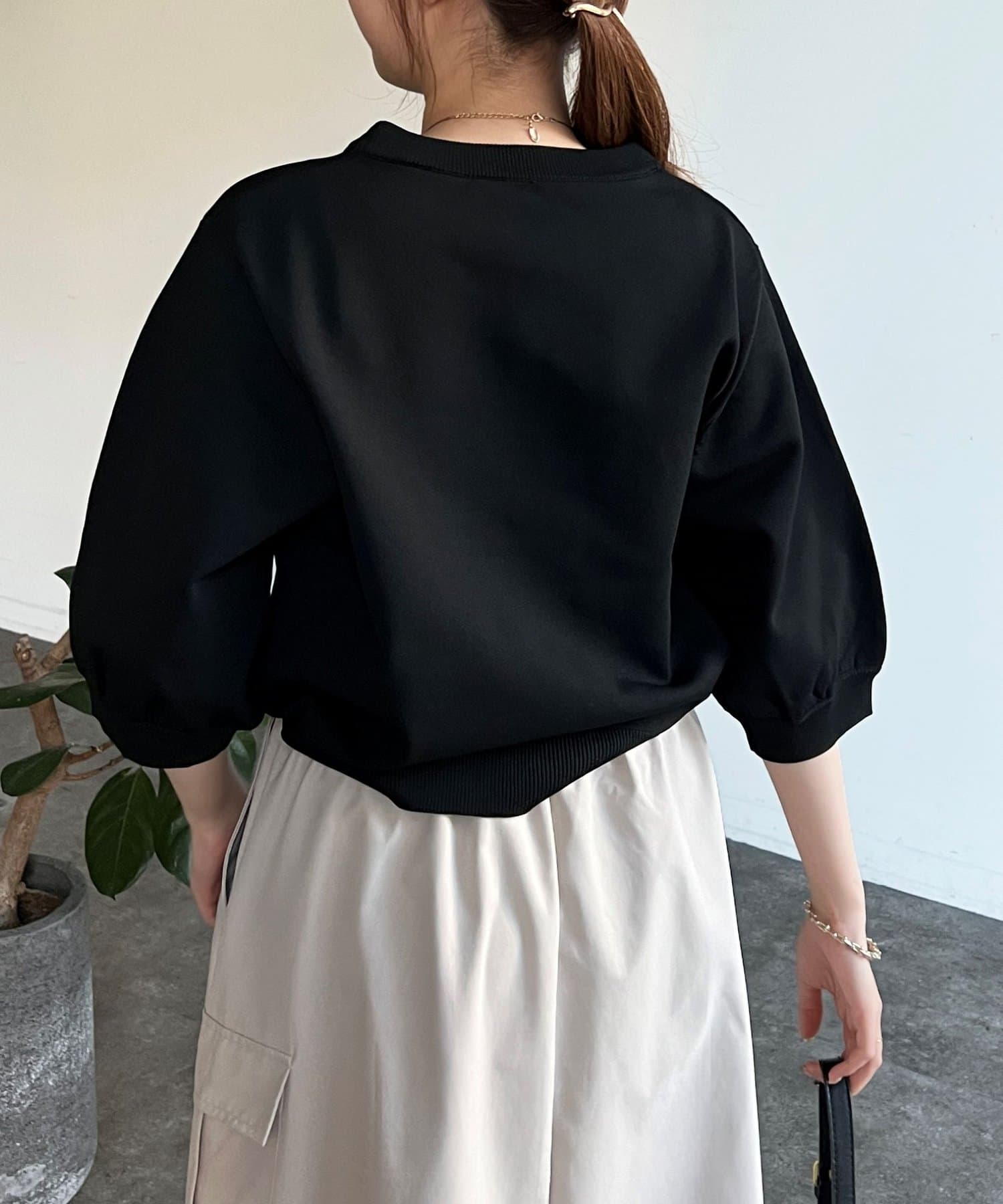 ベーシックで使いやすく、汎用性の高さがポイントの5分袖ニット。