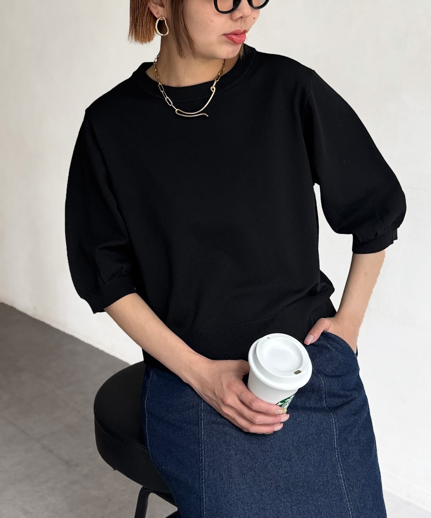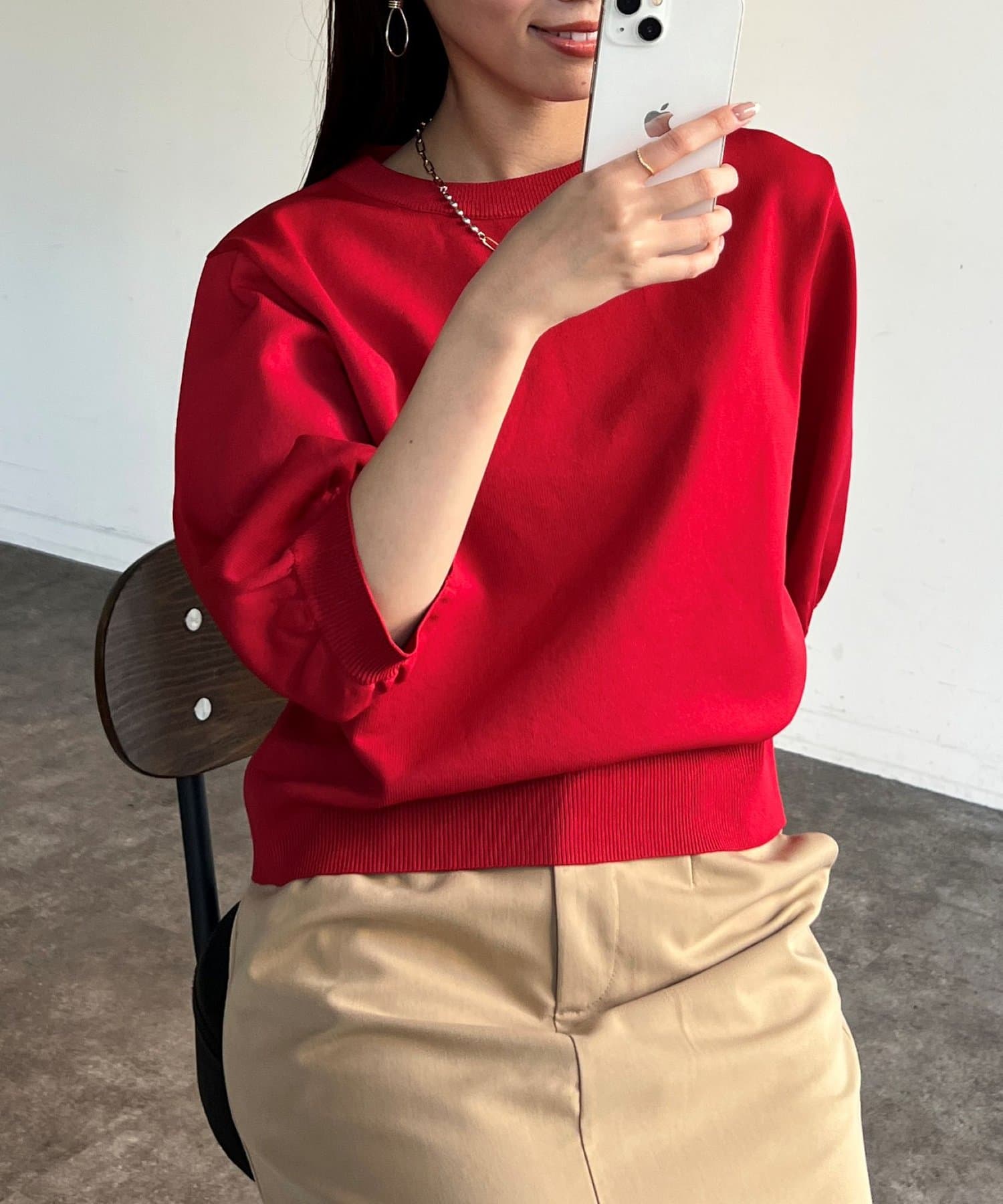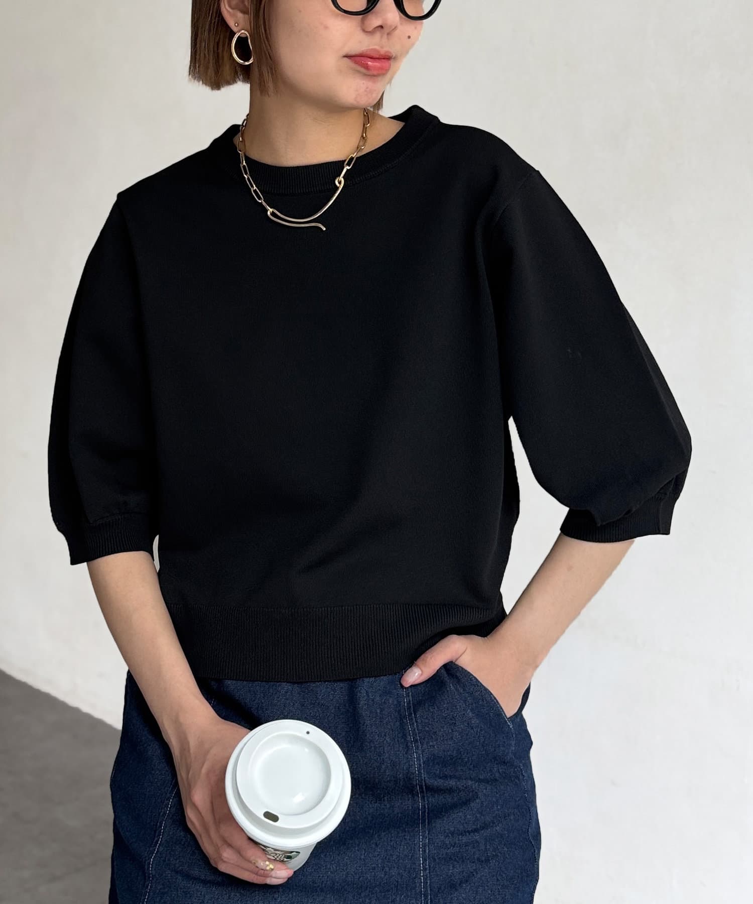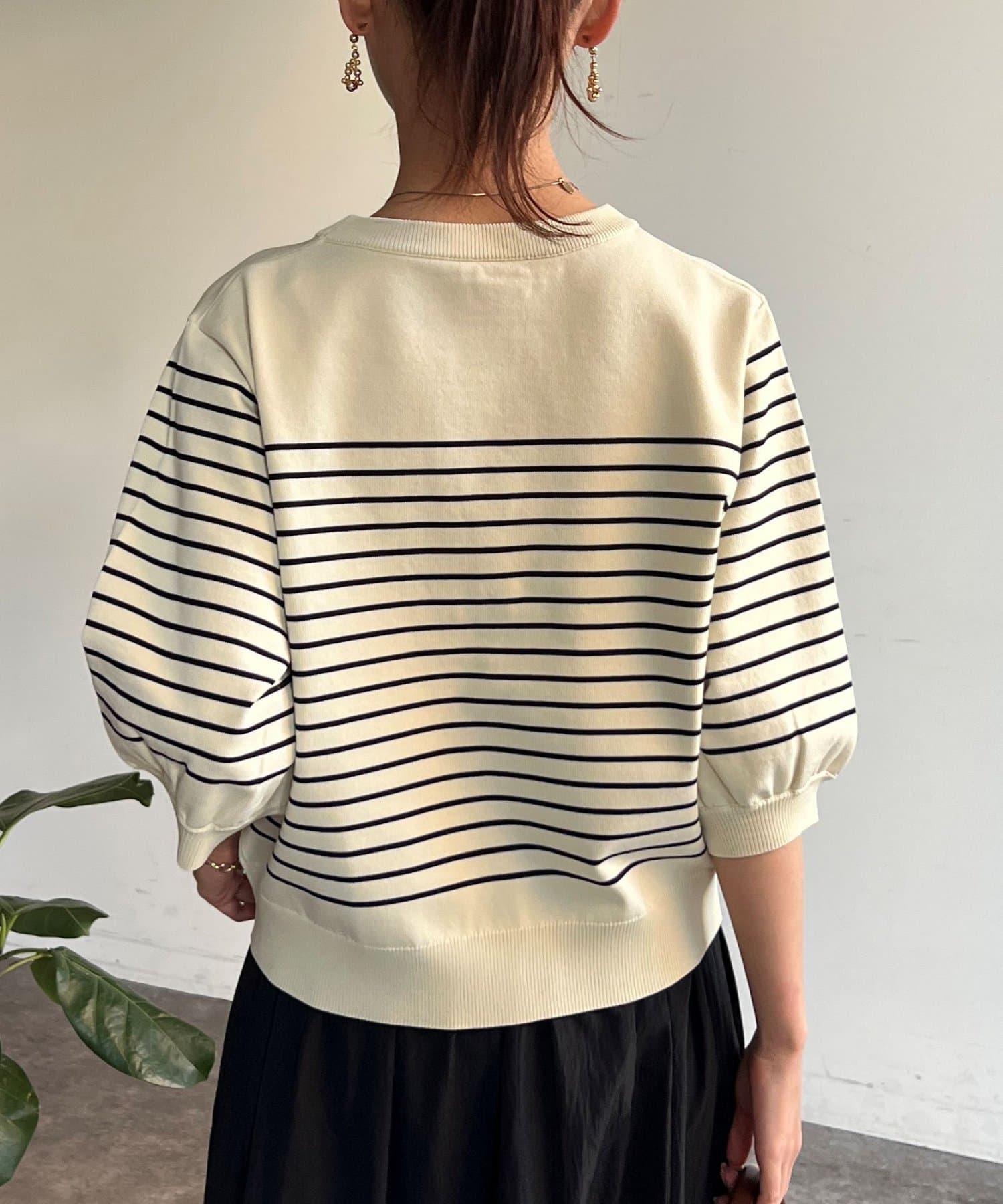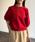ふんわりボリューム袖が魅力的な5分袖ニット