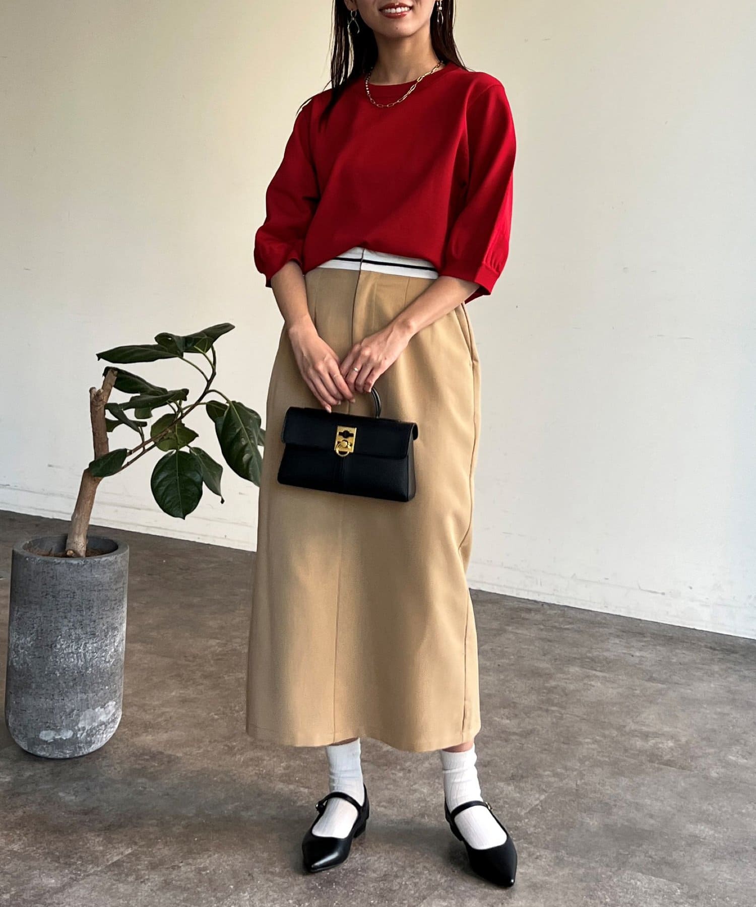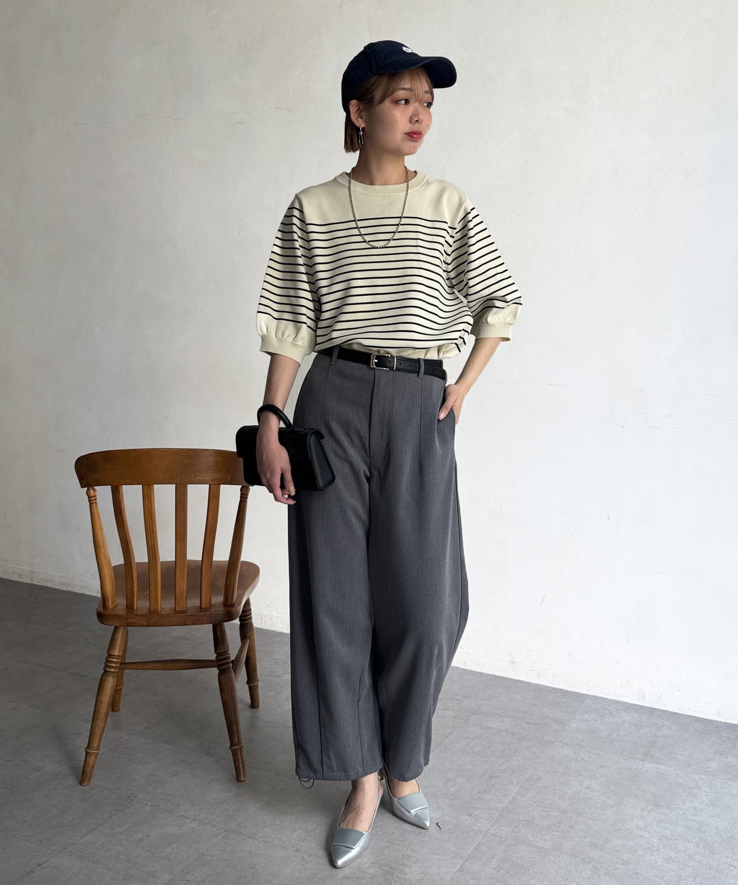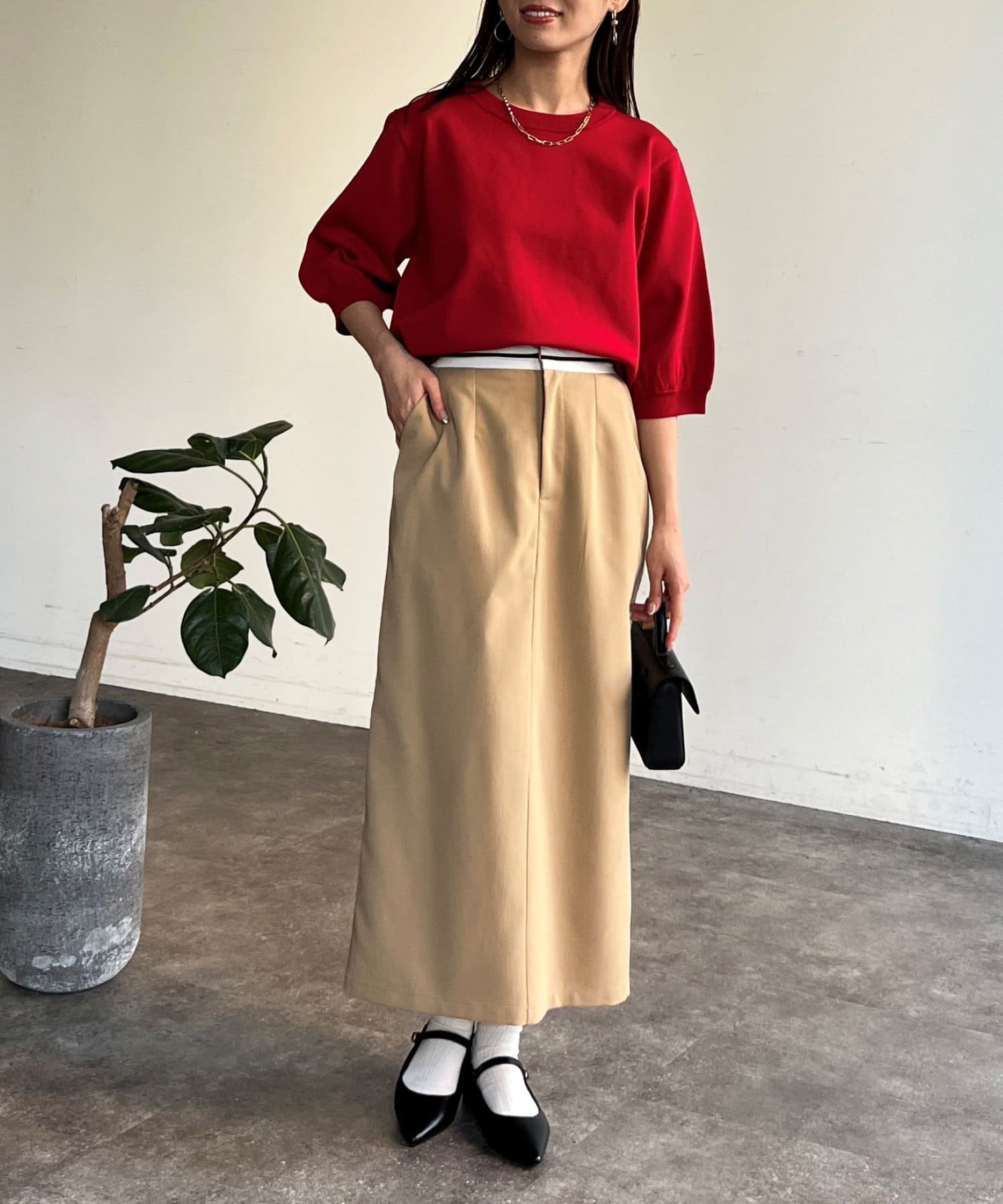 ピタピタしすぎず、程よく身体から離れるシルエットが合わせやすく、オンオフ問わず着ていただけます。