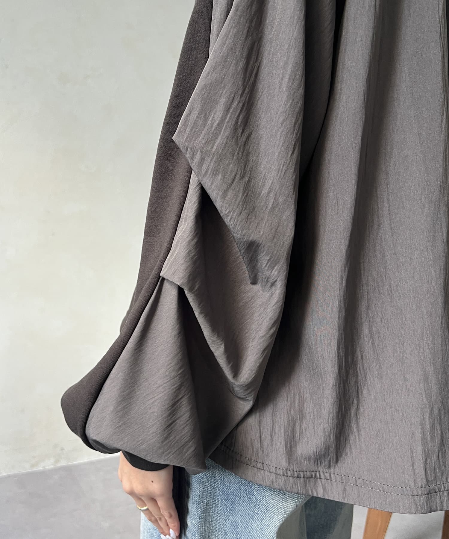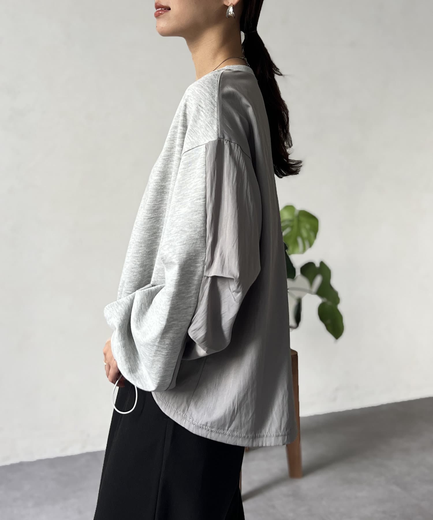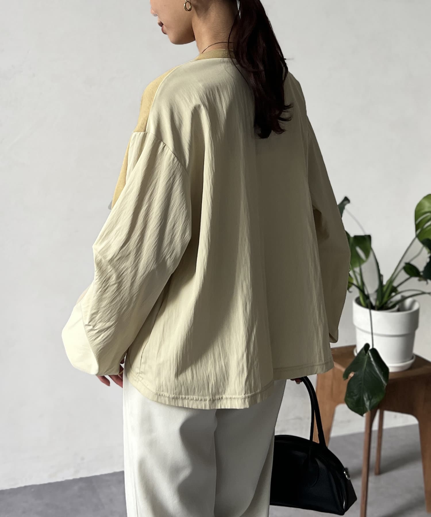 前身頃と後身頃で異素材の生地を使用し一枚でオシャレに。