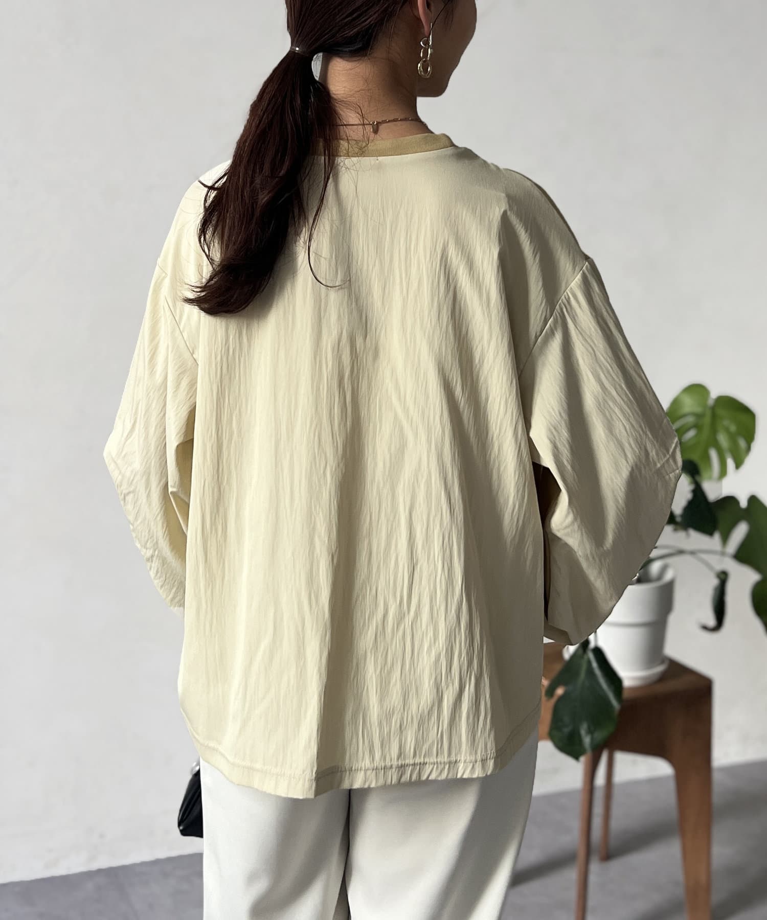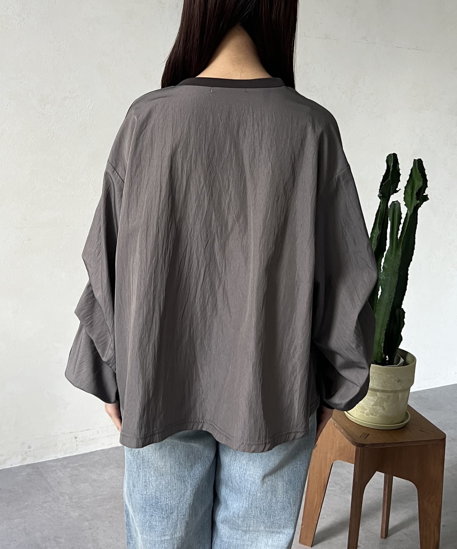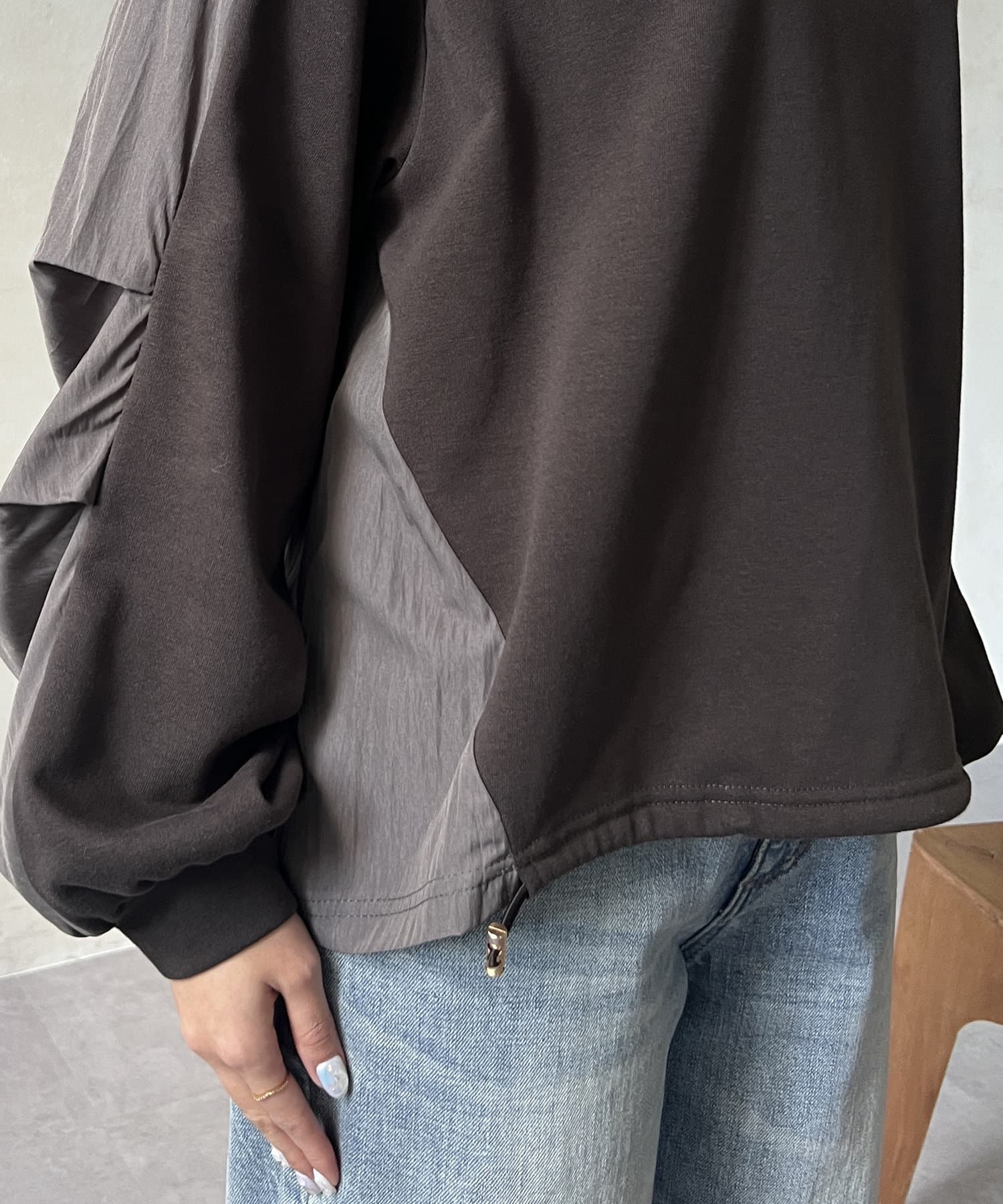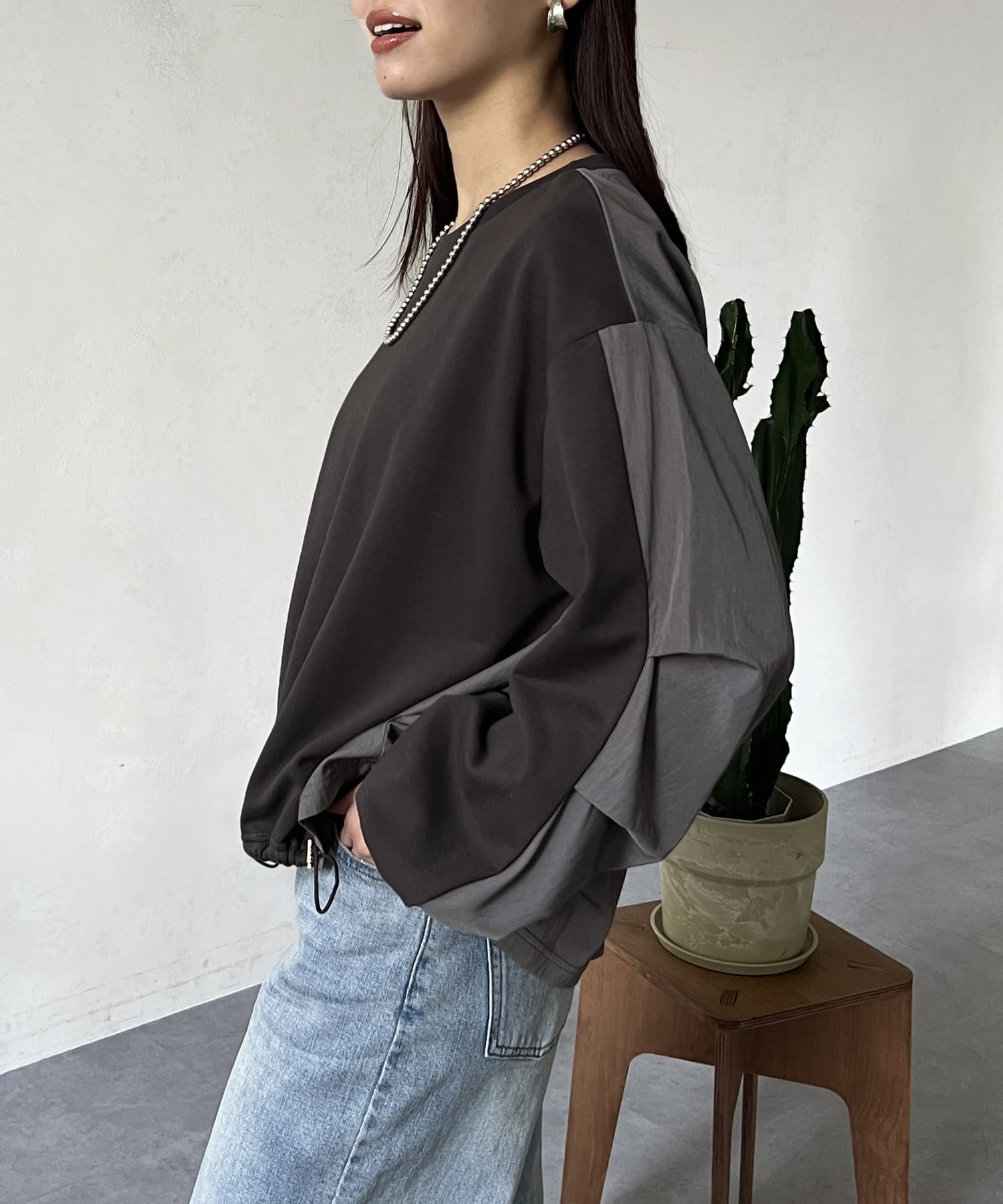 前身頃と後身頃で異素材の生地を使用し一枚でオシャレに。