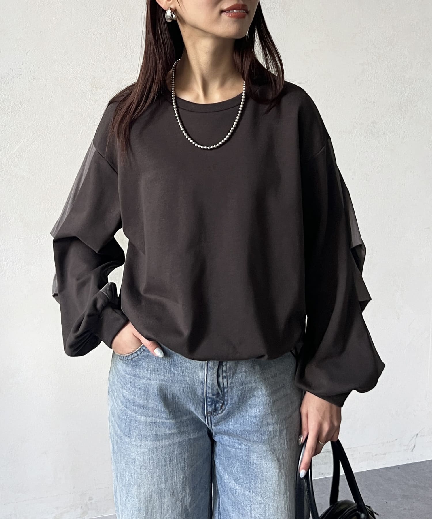 お袖は大きめのギャザーを施し立体感が生まれ女性らしさをプラス。
