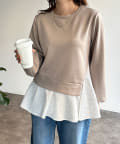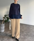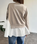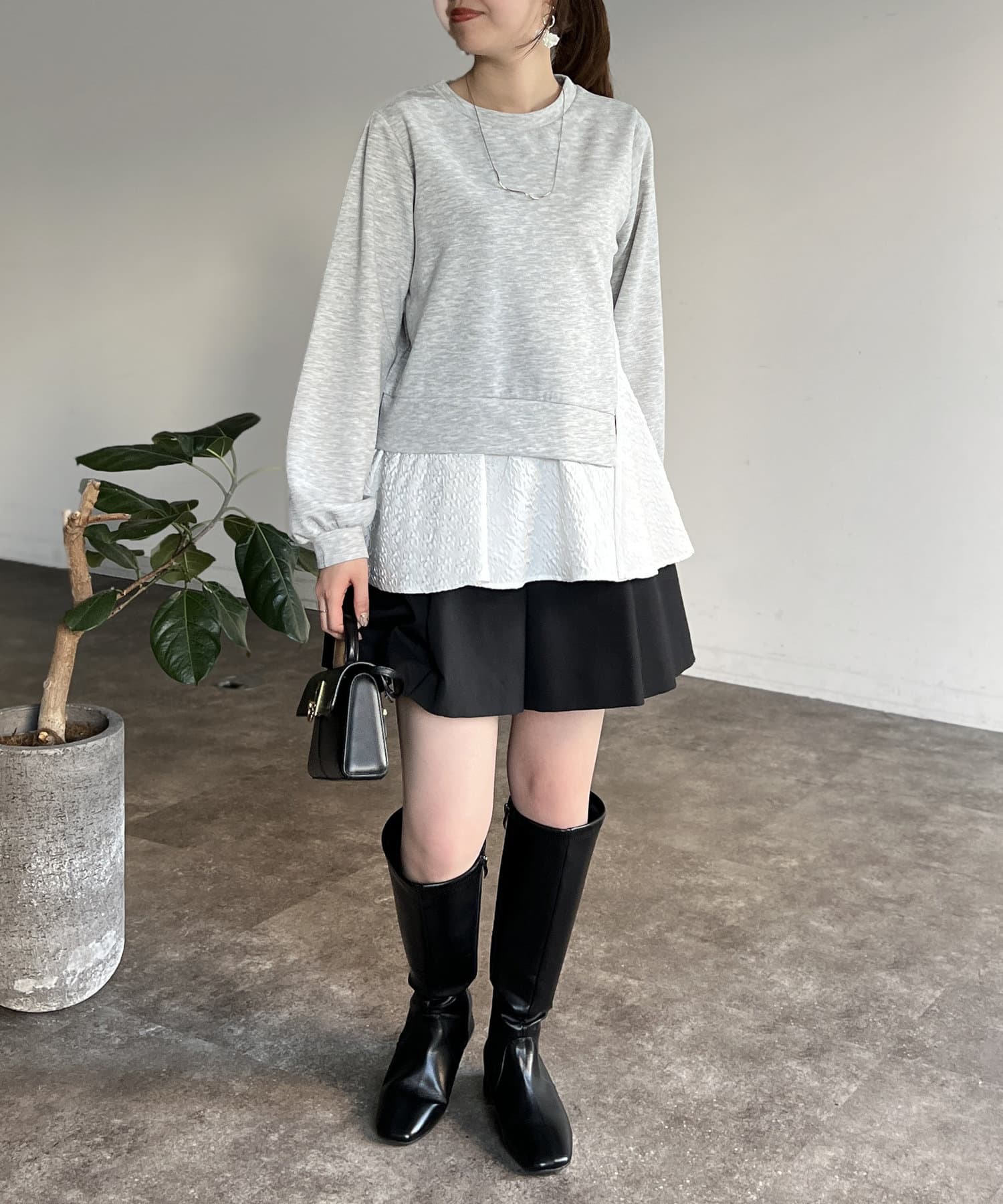 裾口に異素材の生地を使用し、レイヤードスタイルが一枚で完成する嬉しいアイテム♪