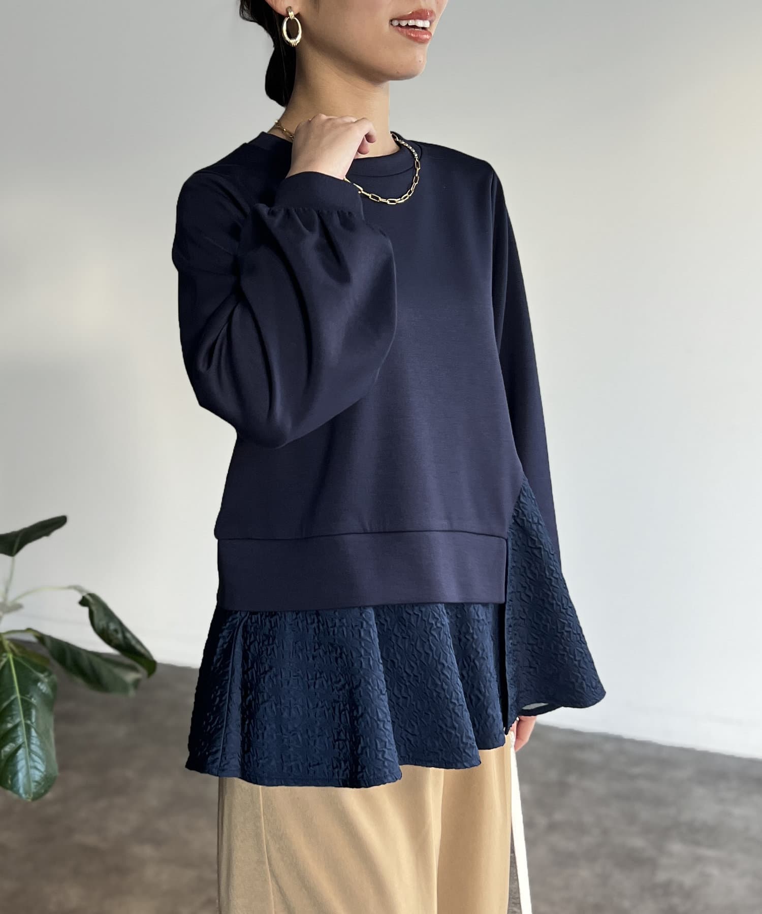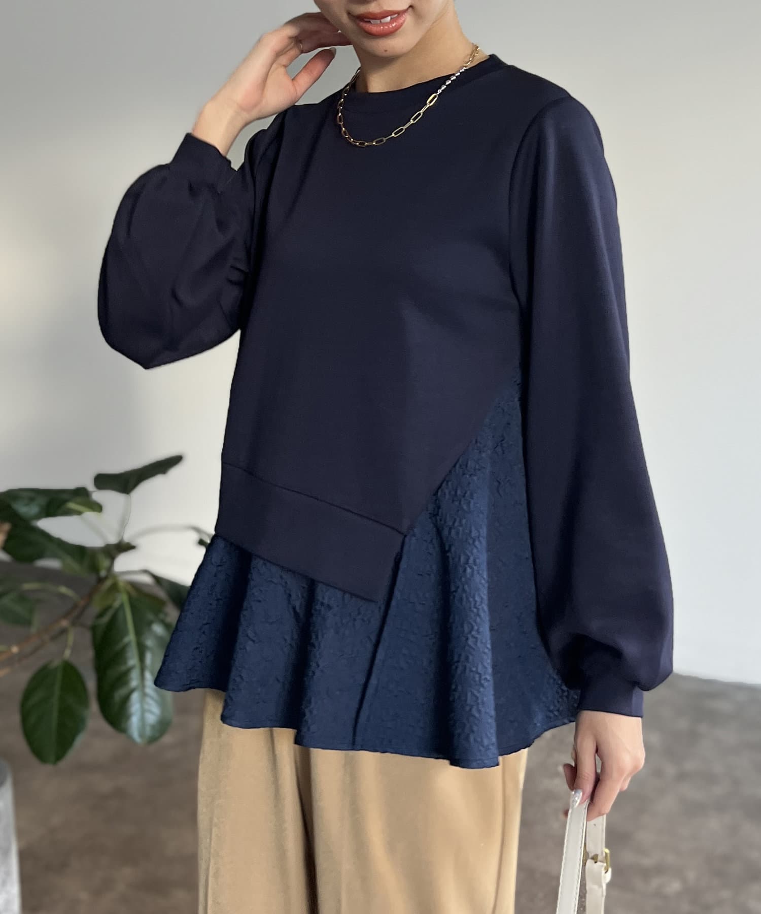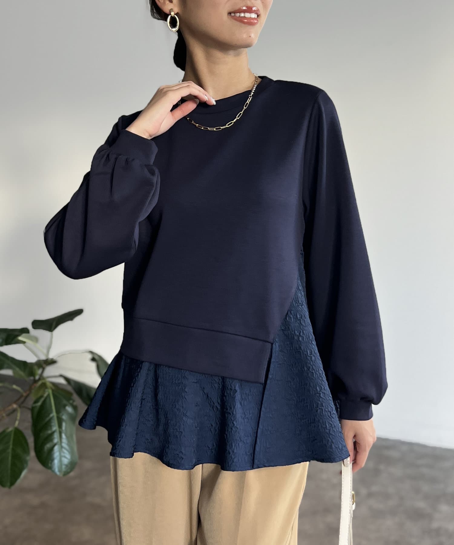 • Chez toi(シェトワ) 異素材ペプラムプルオーバー