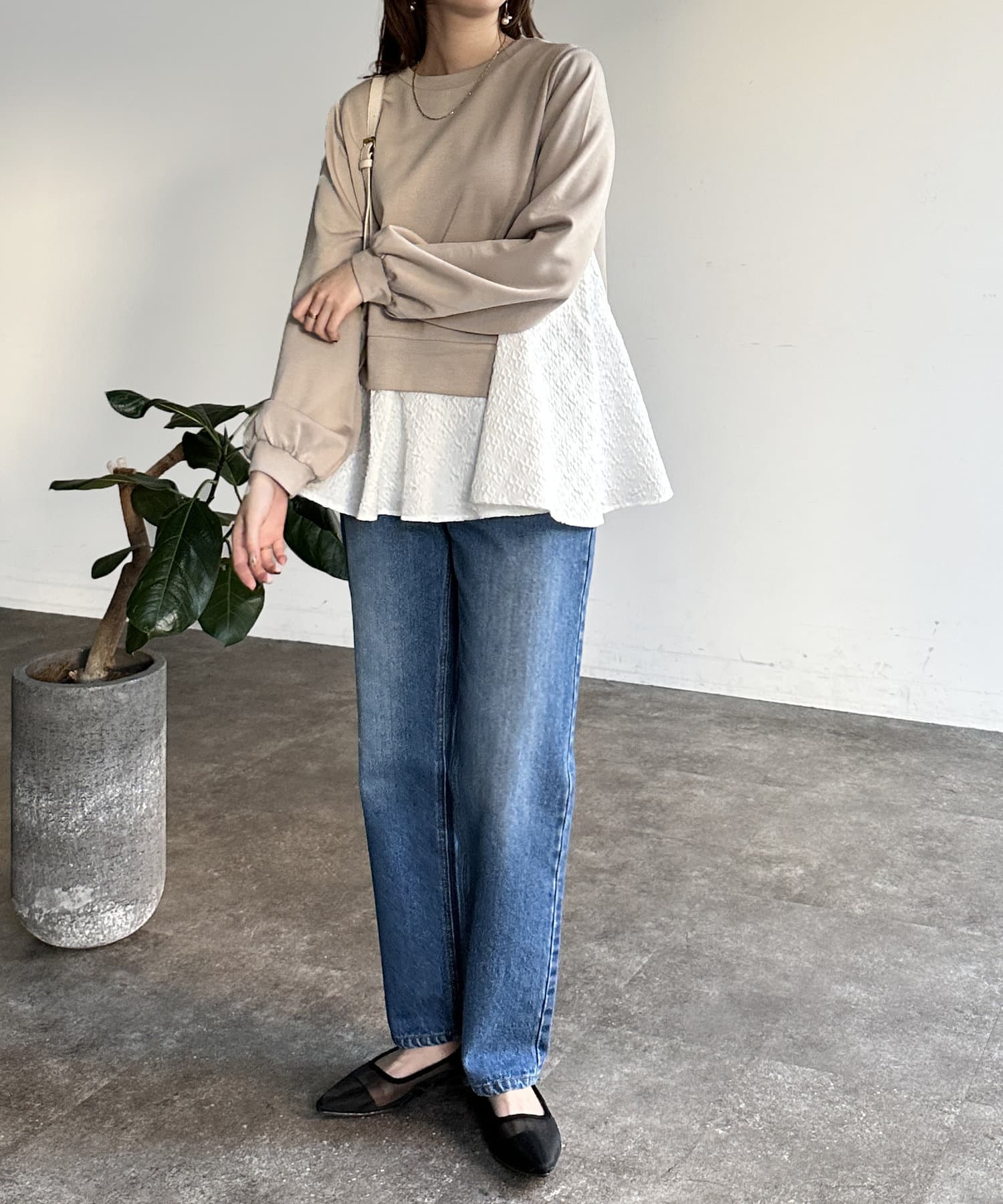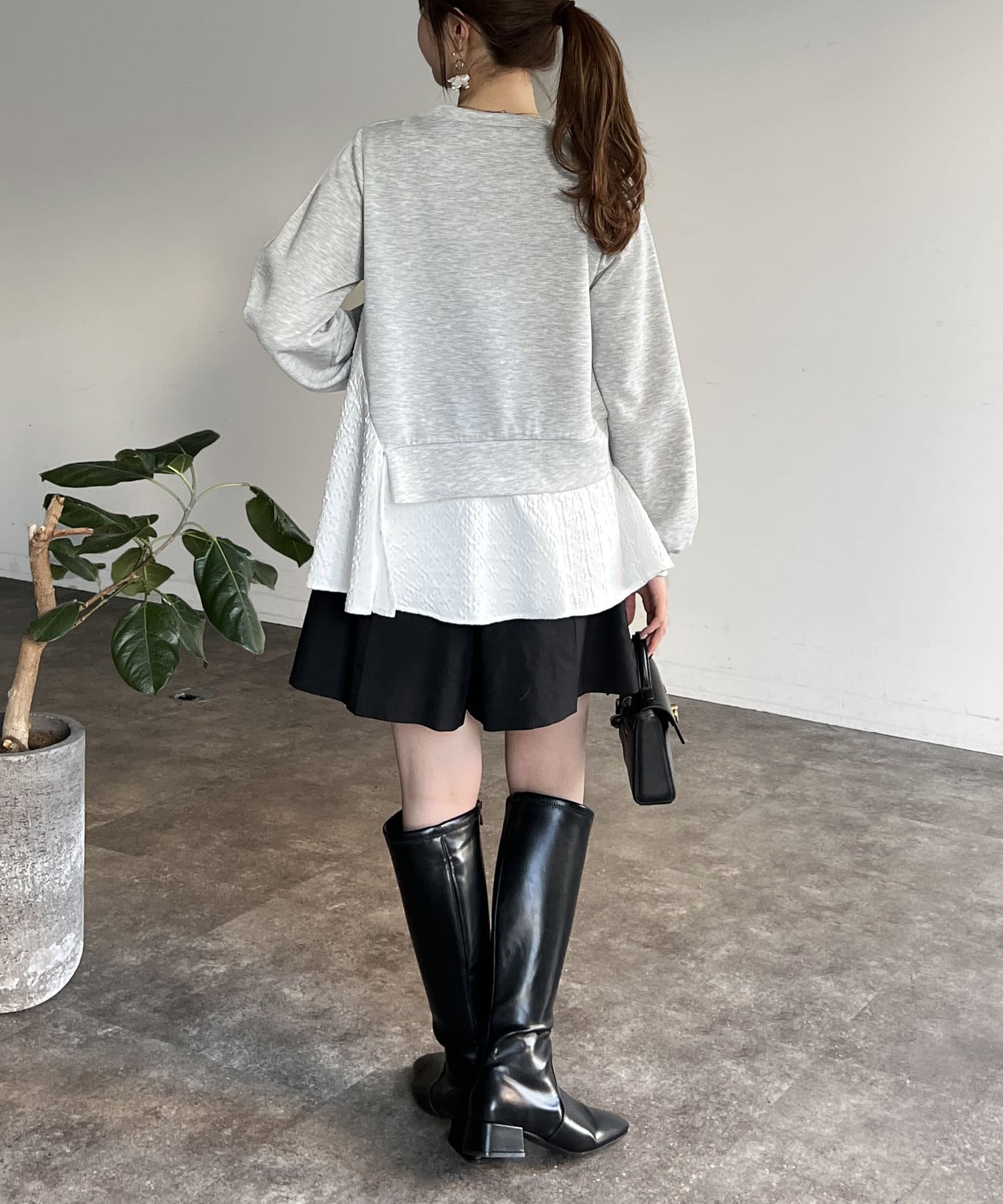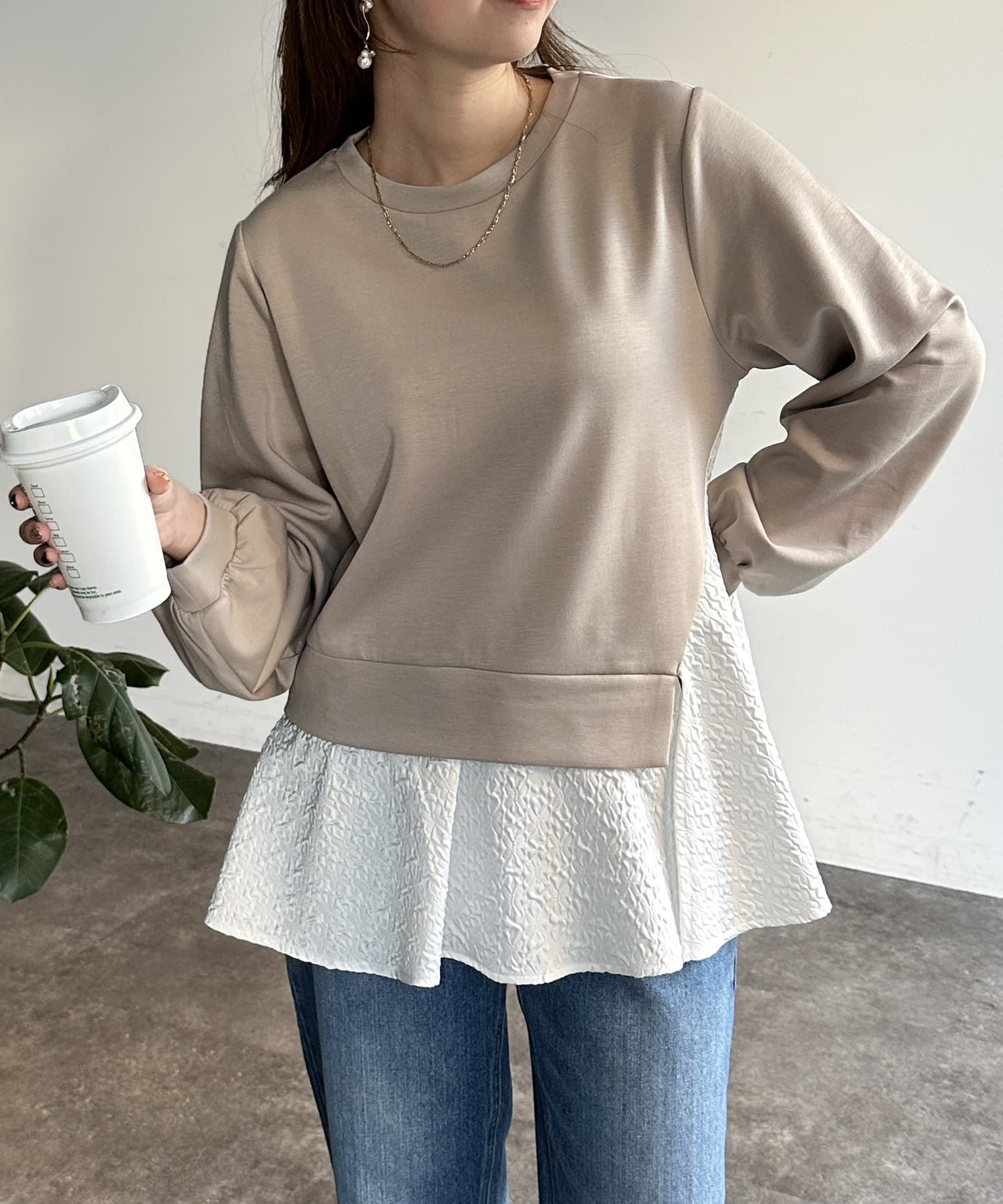 • Chez toi(シェトワ) 異素材ペプラムプルオーバー