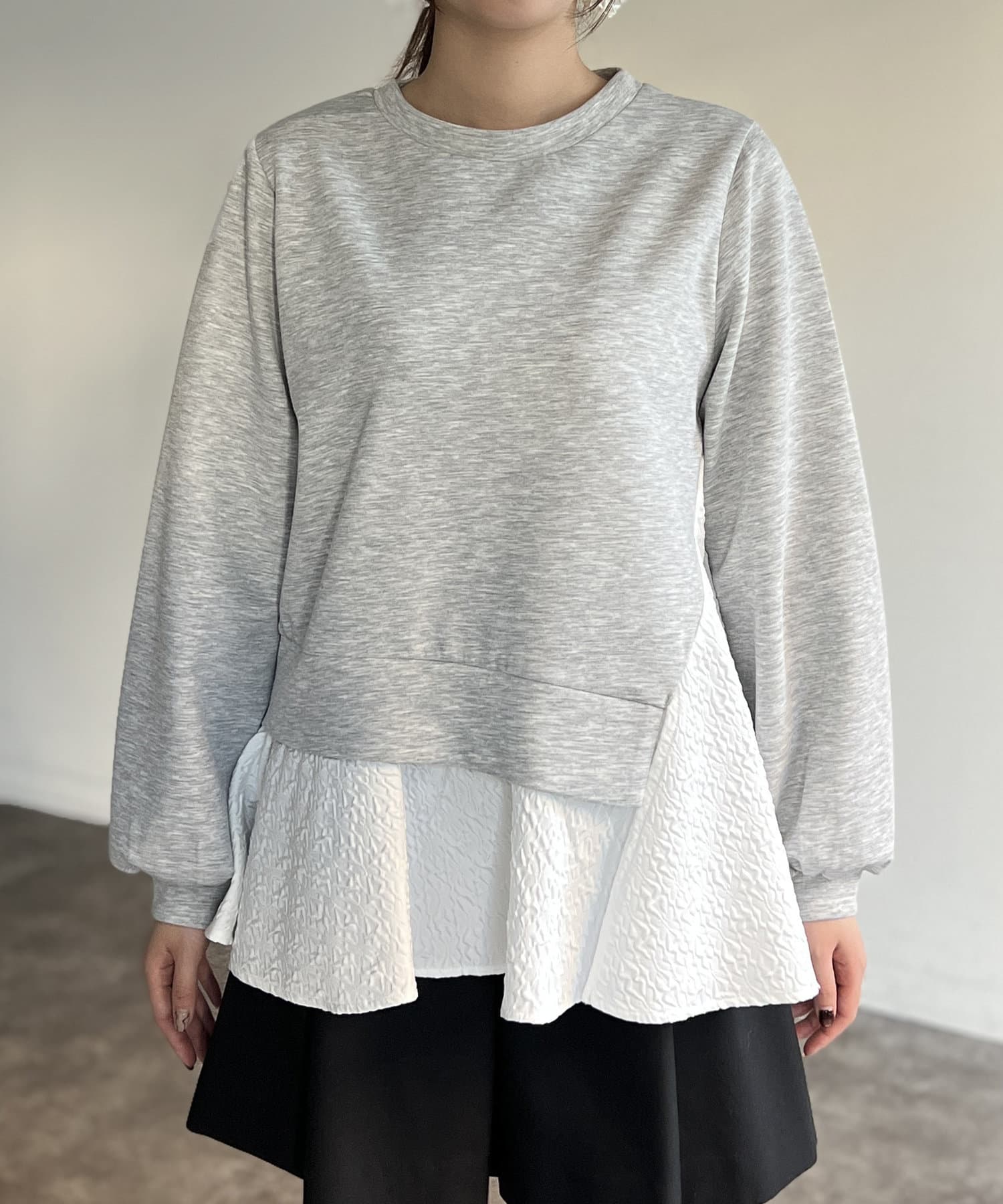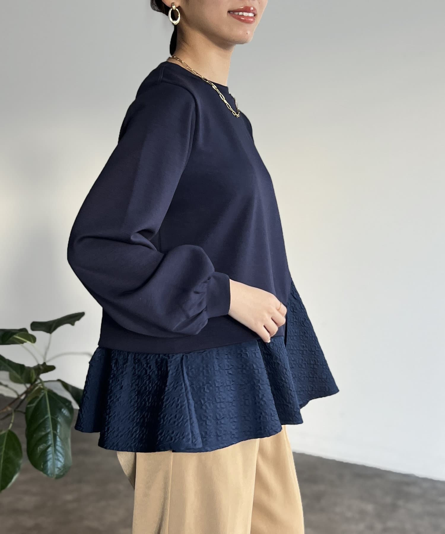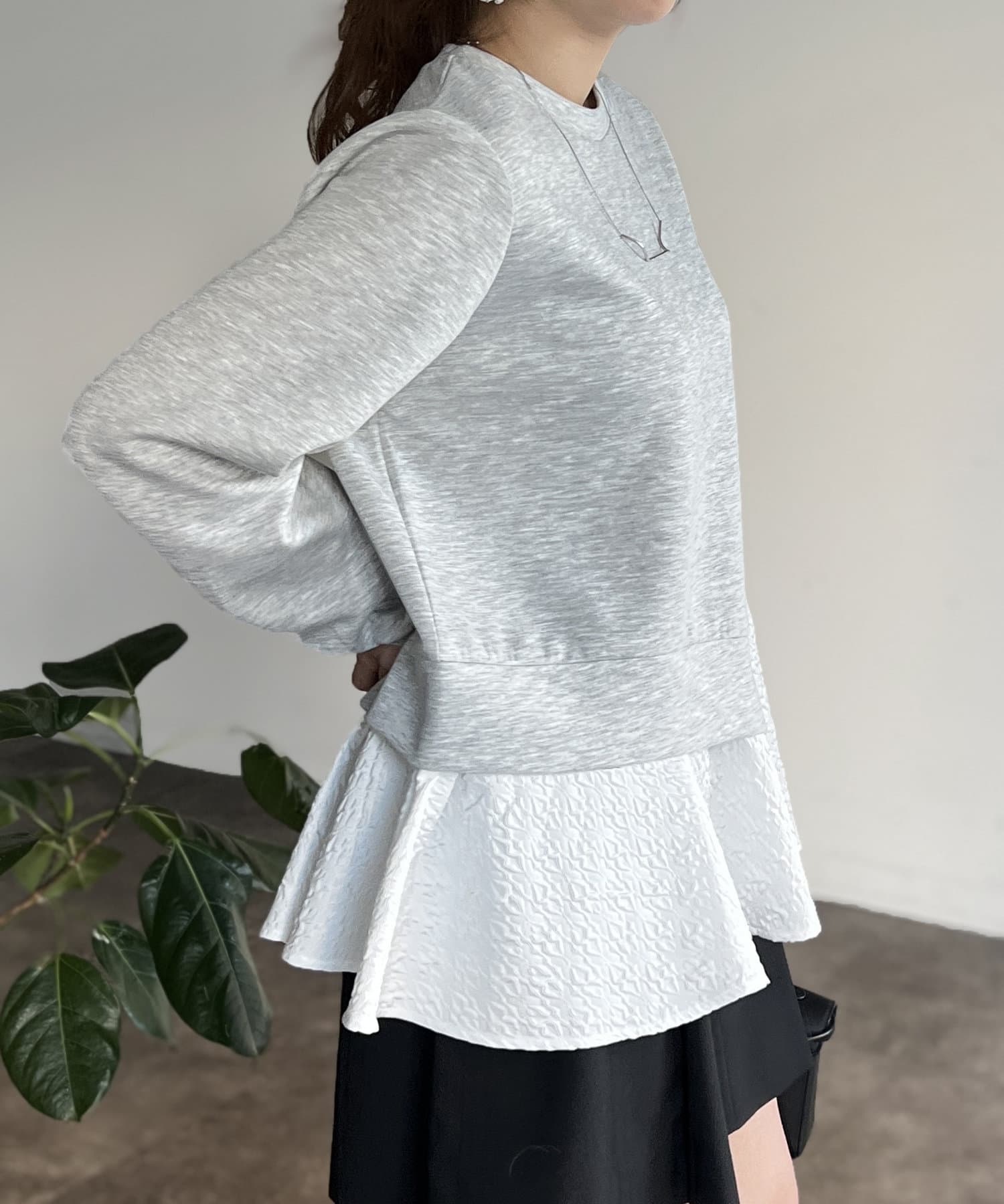 Chez toi(シェトワ) 異素材ペプラムプルオーバー