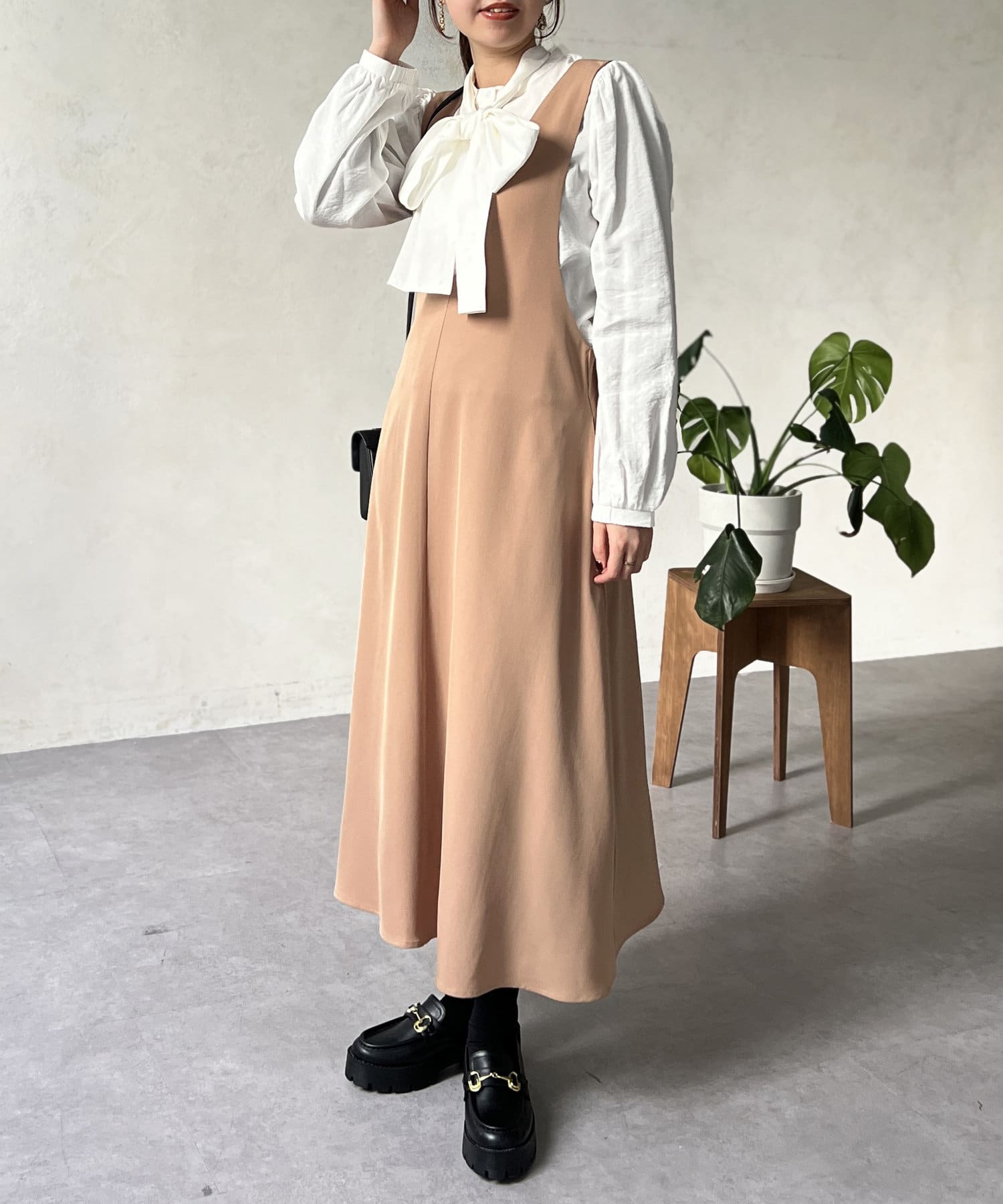 ジャンパースカート。さらっとした生地感でリラクシーな