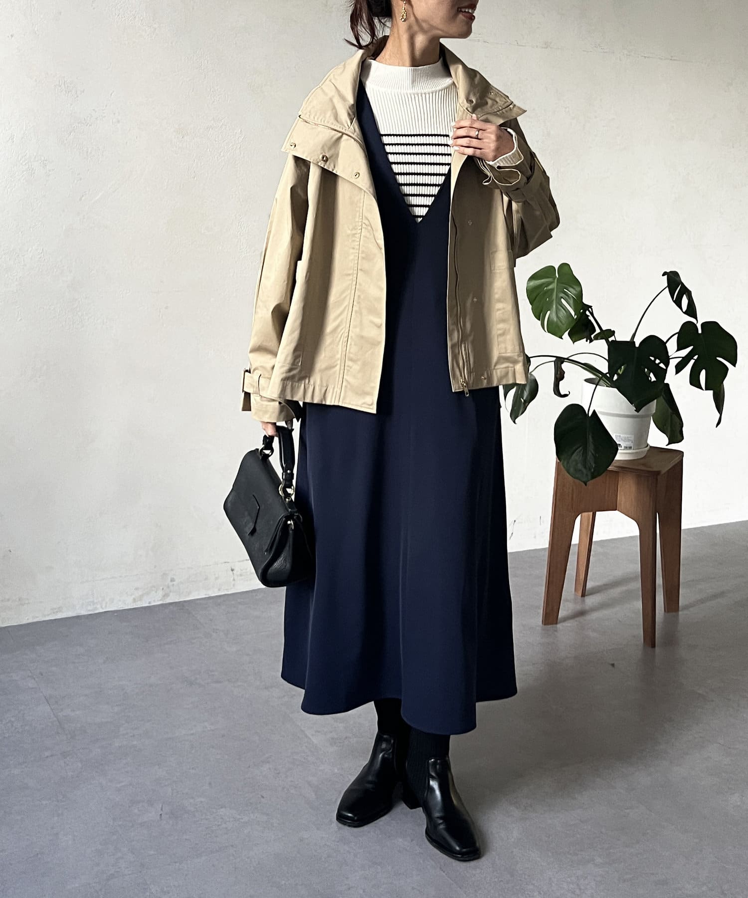 しなやかなストンと落ち感のある素材が上品さをプラスした