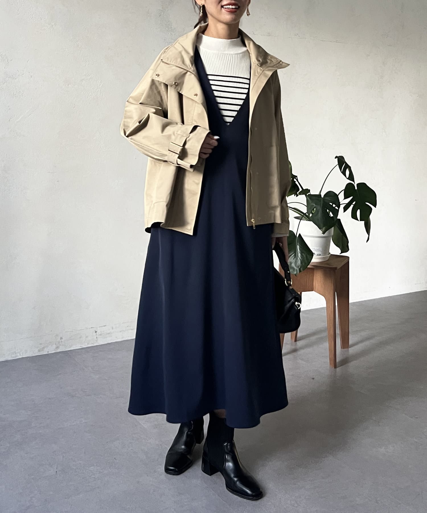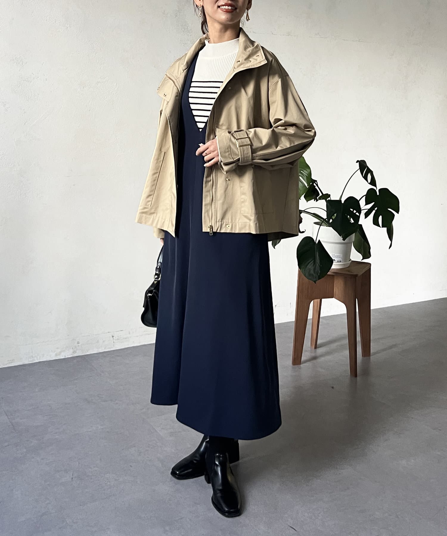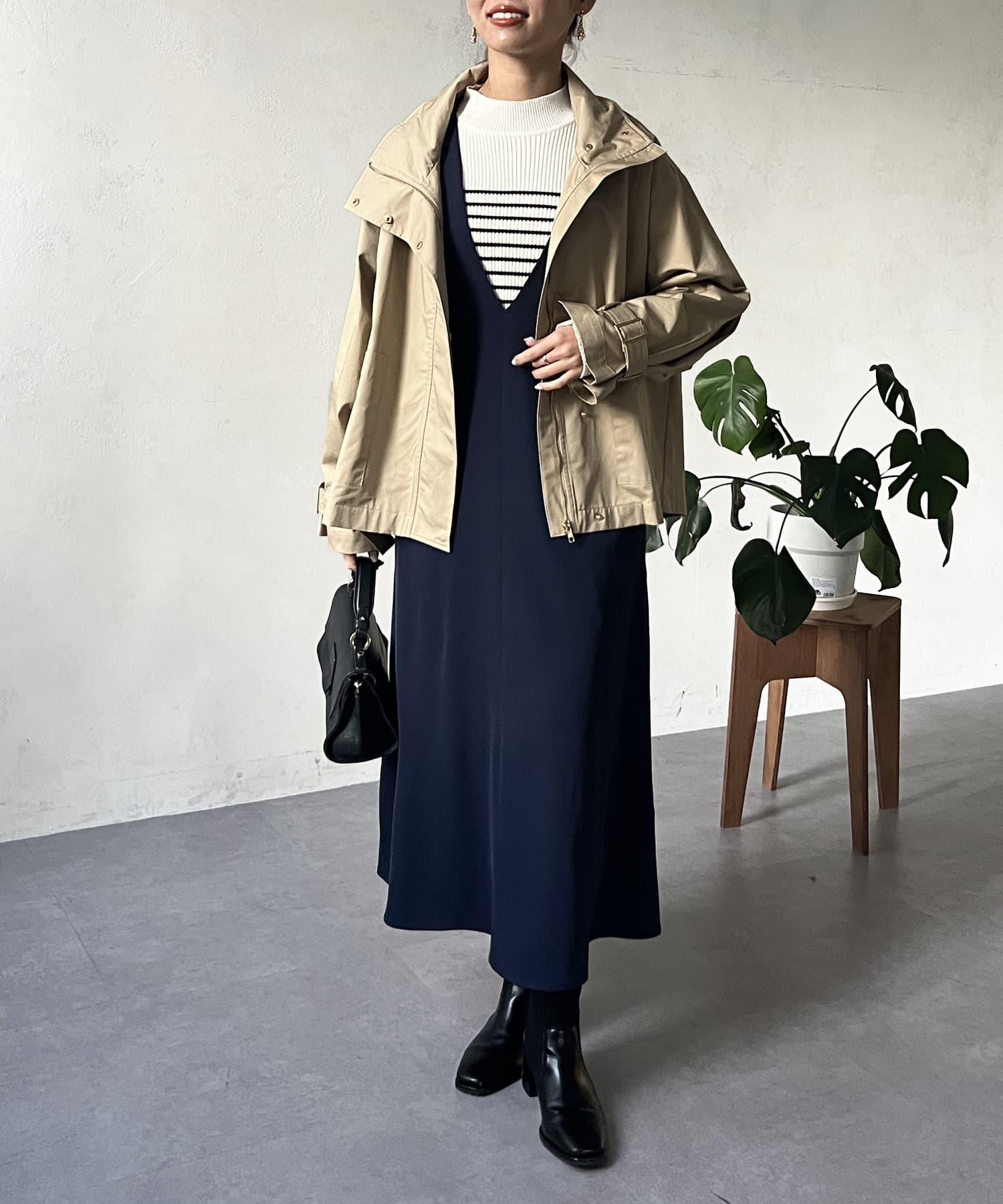 またまだ寒い時期はニットなどと合わせてロングシーズン着用可能。