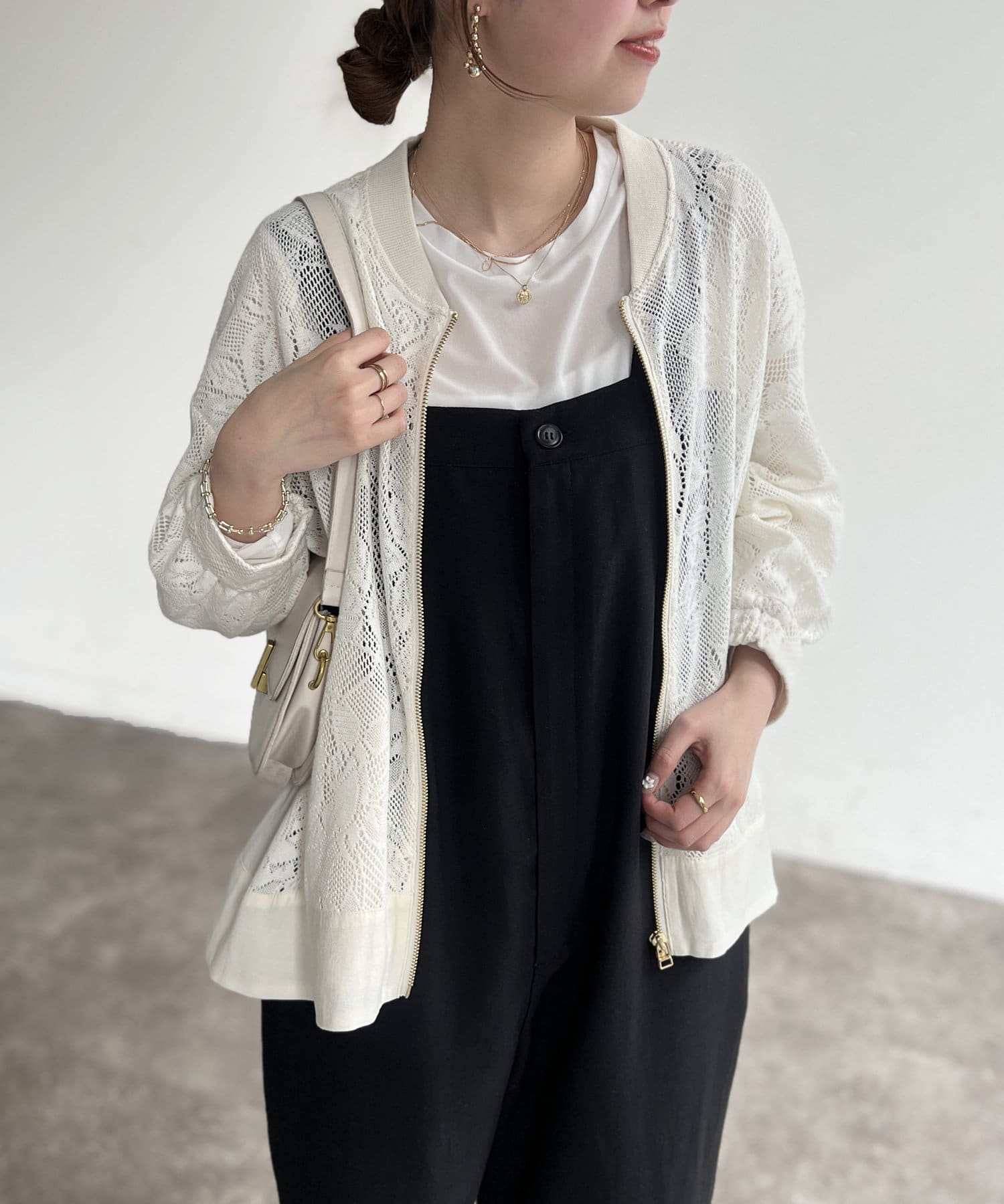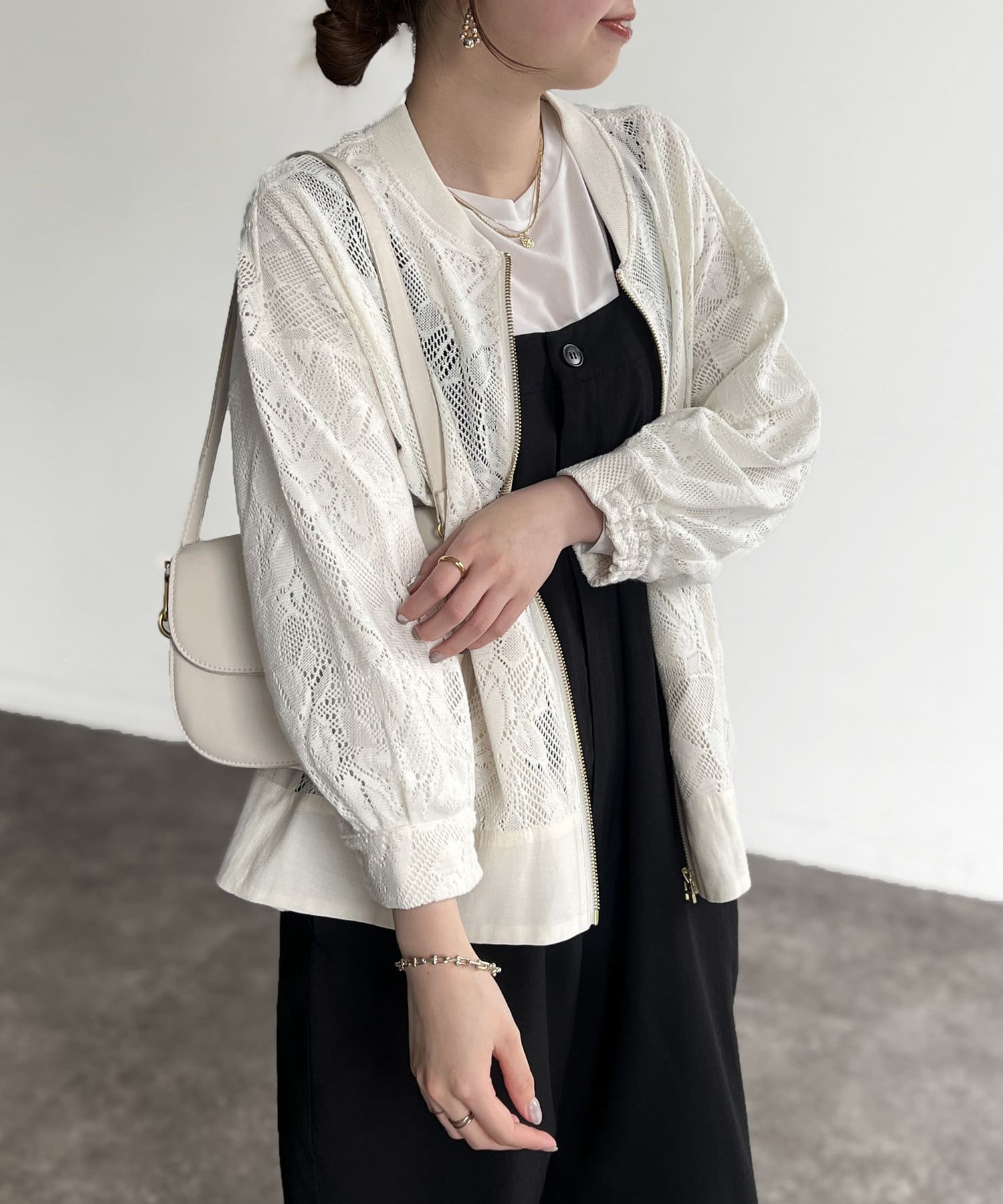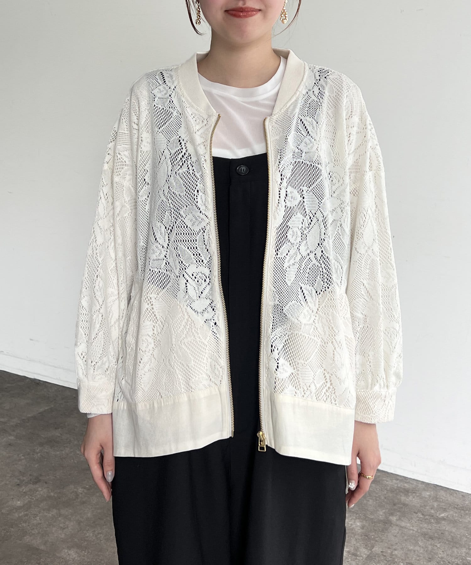 レース素材で作られたブルゾンが女性らしいエアリー感を演出!