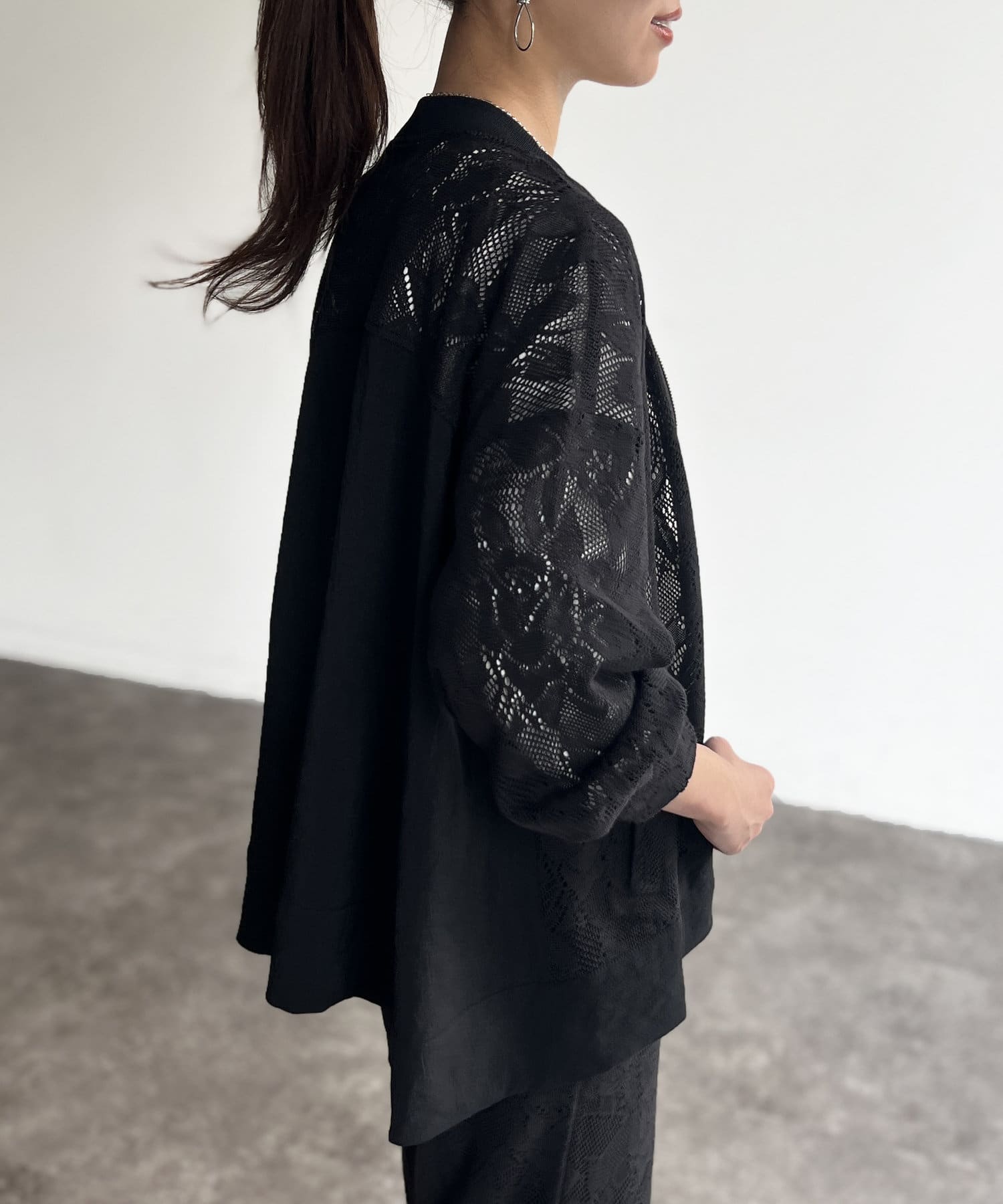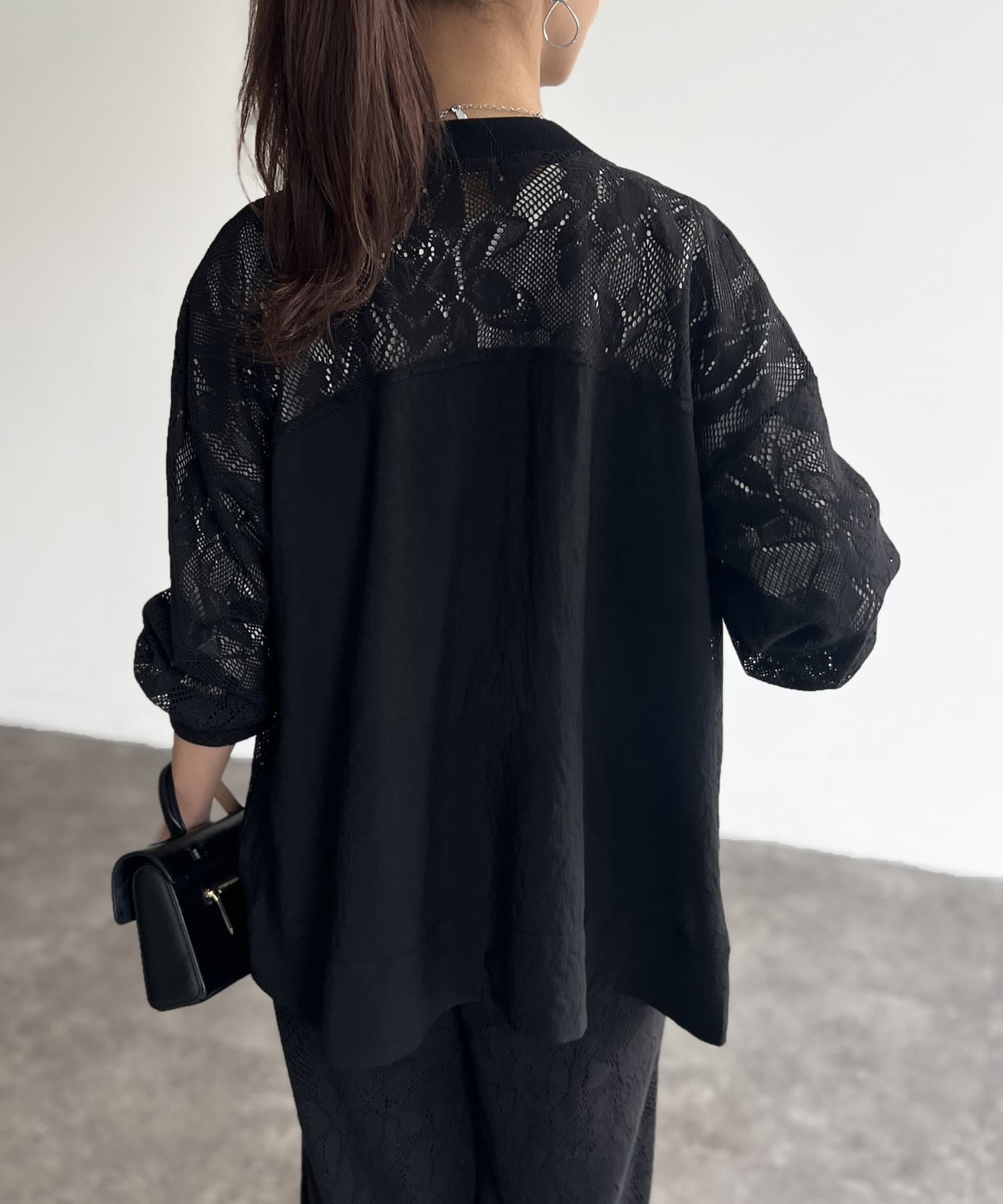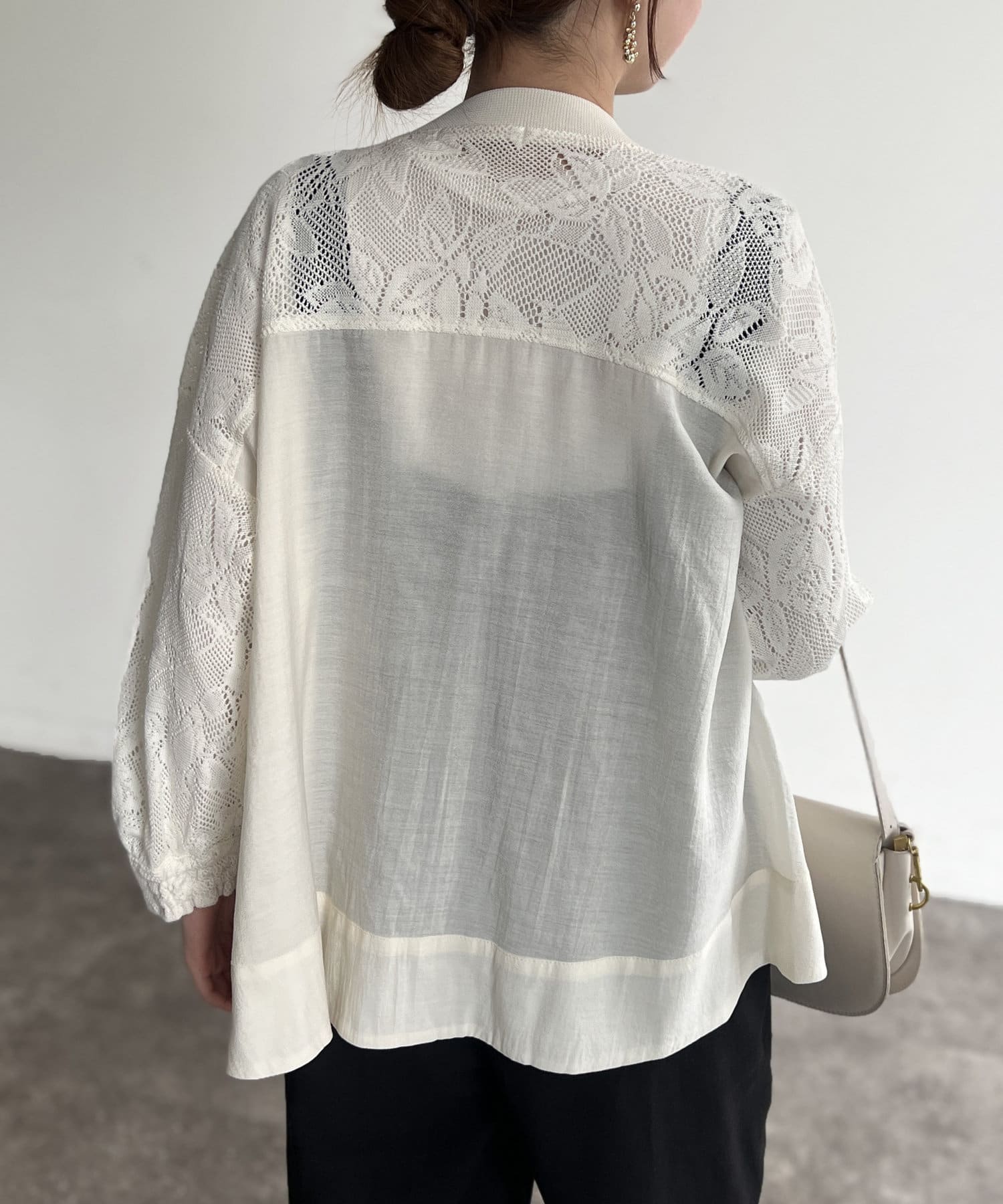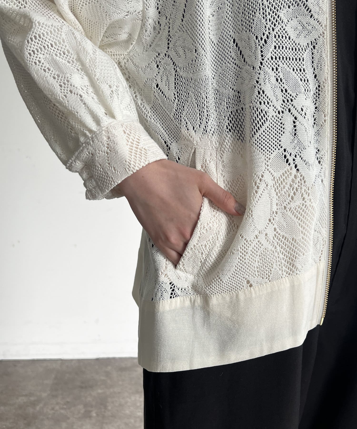 レース素材で作られたブルゾンが女性らしいエアリー感を演出!