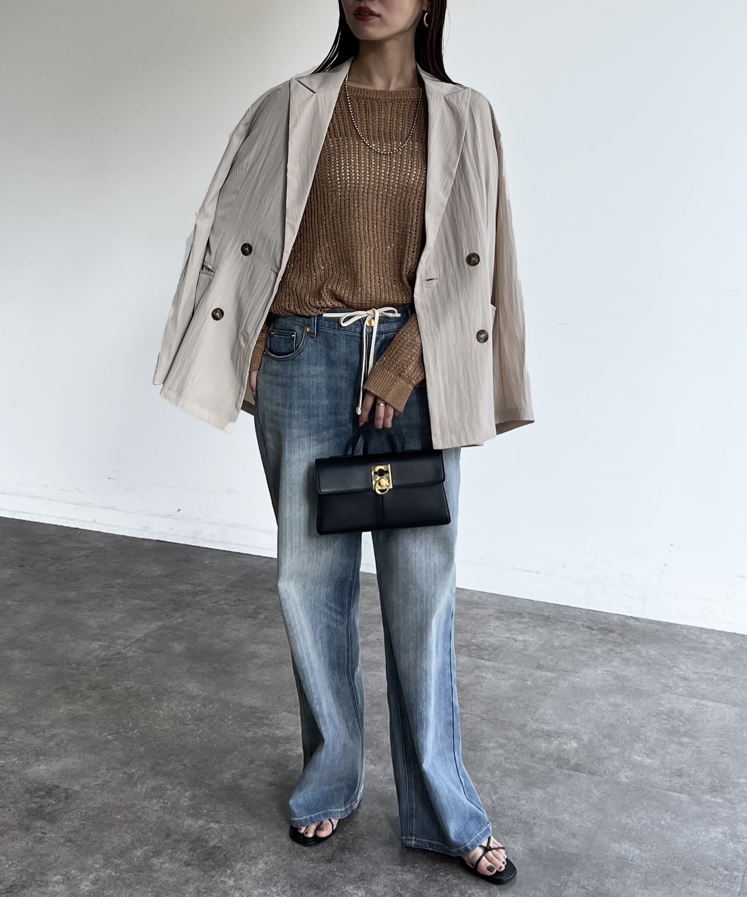 Tシャツやデニムと合わせてラフなスタイルにもオシャレに決まります。