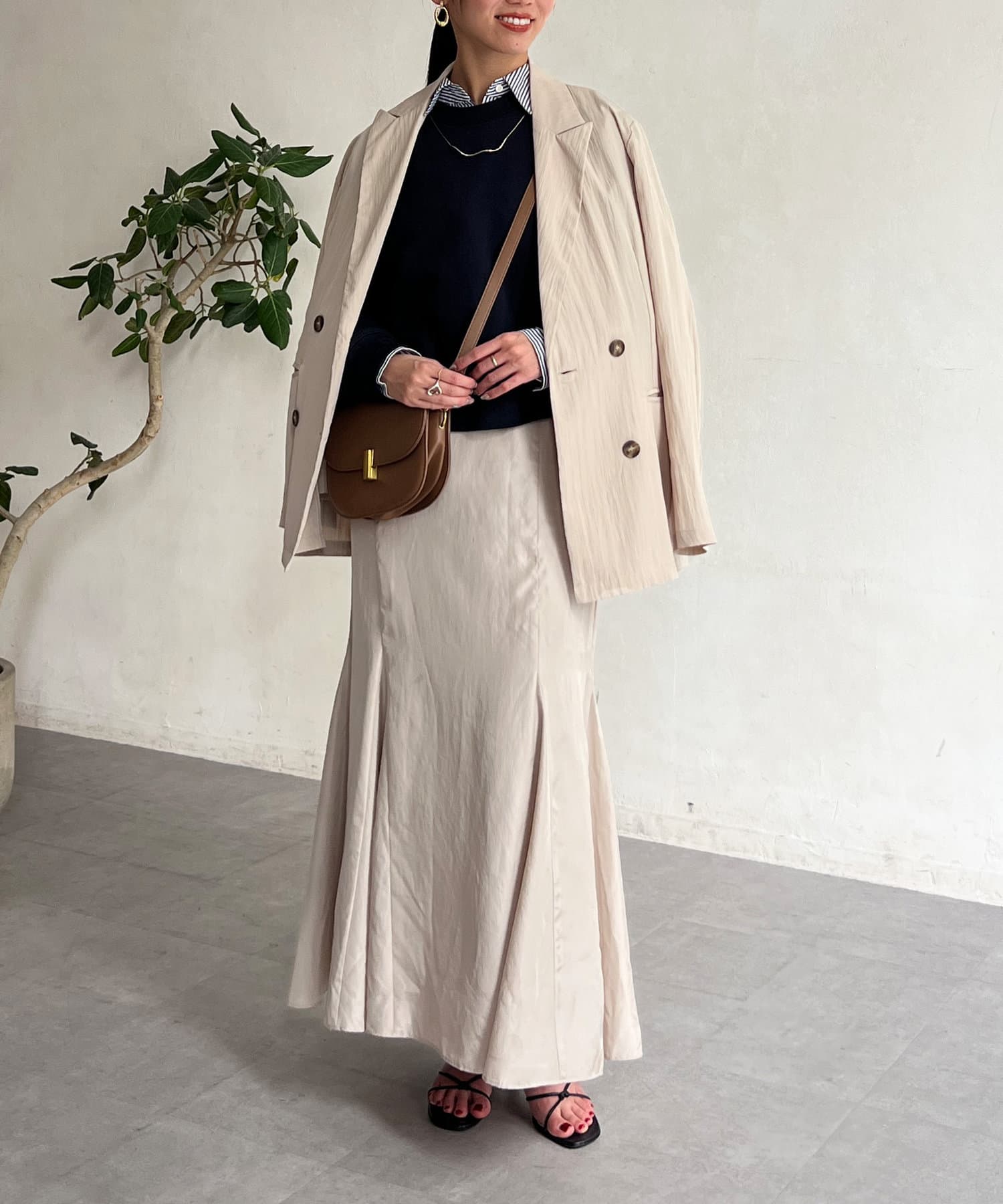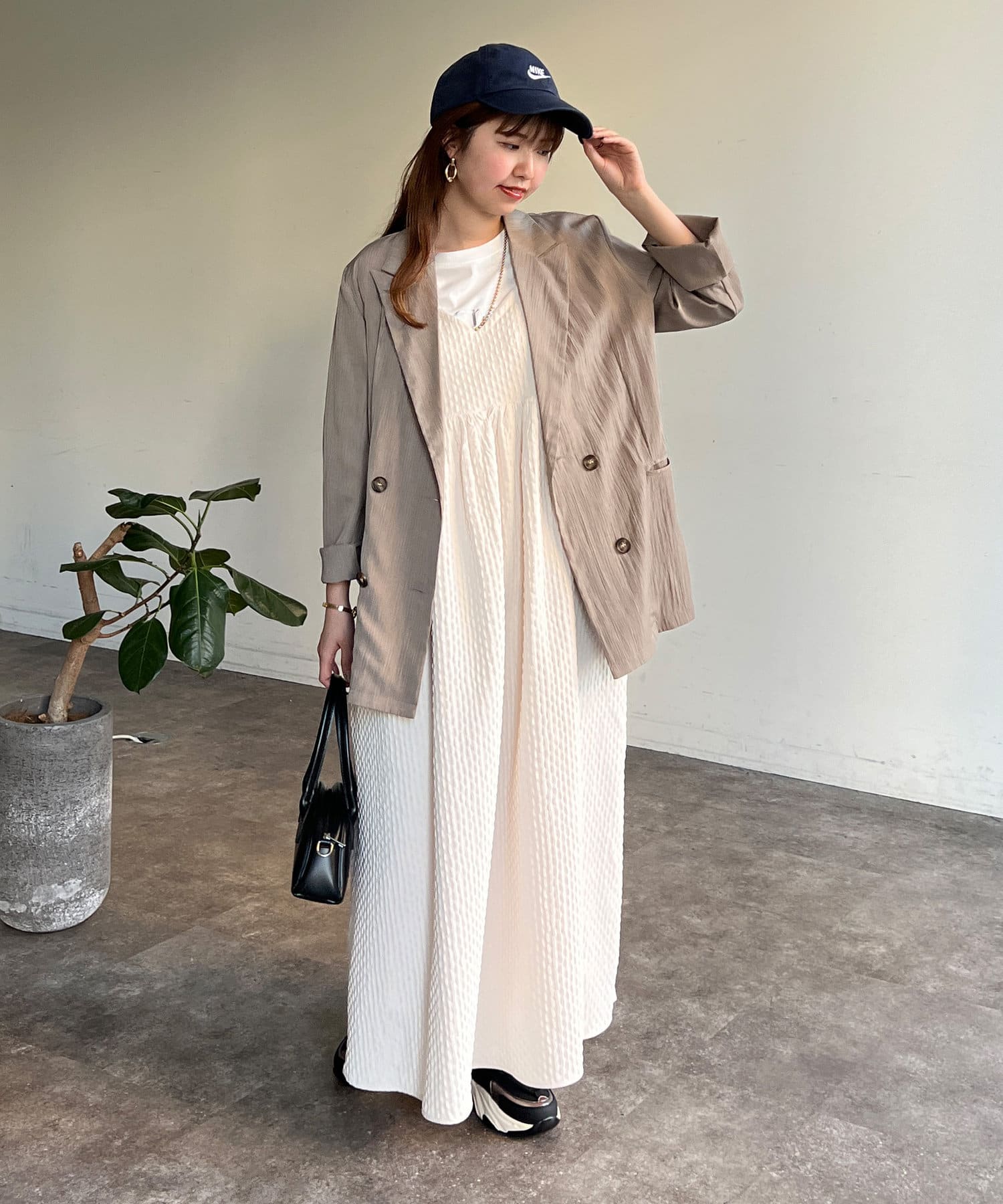 ワンピースやスカートなどと合わせていただき、きれい目カジュアルスタイルや