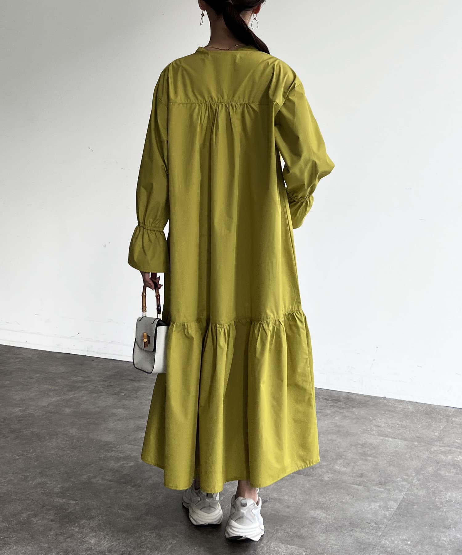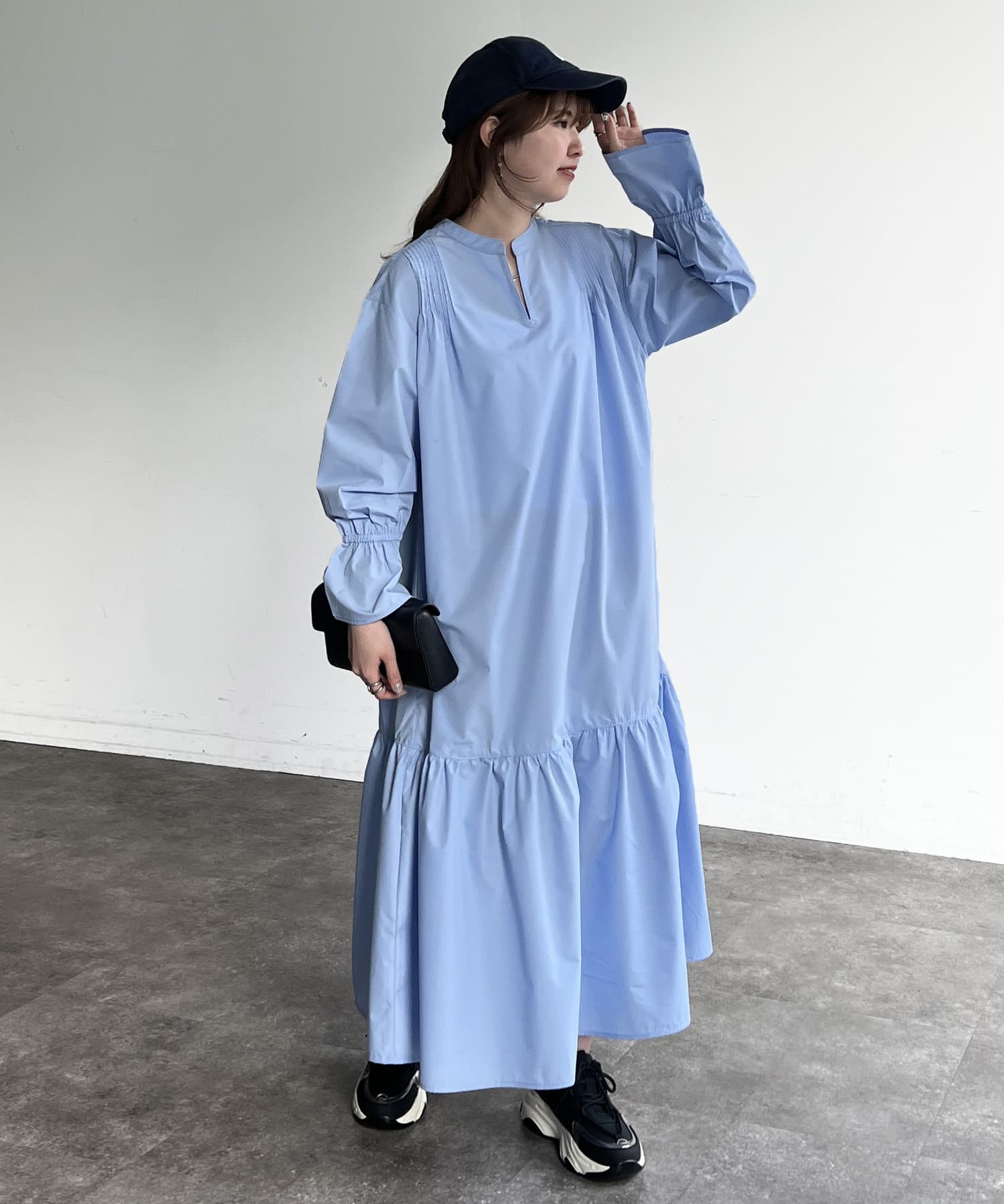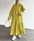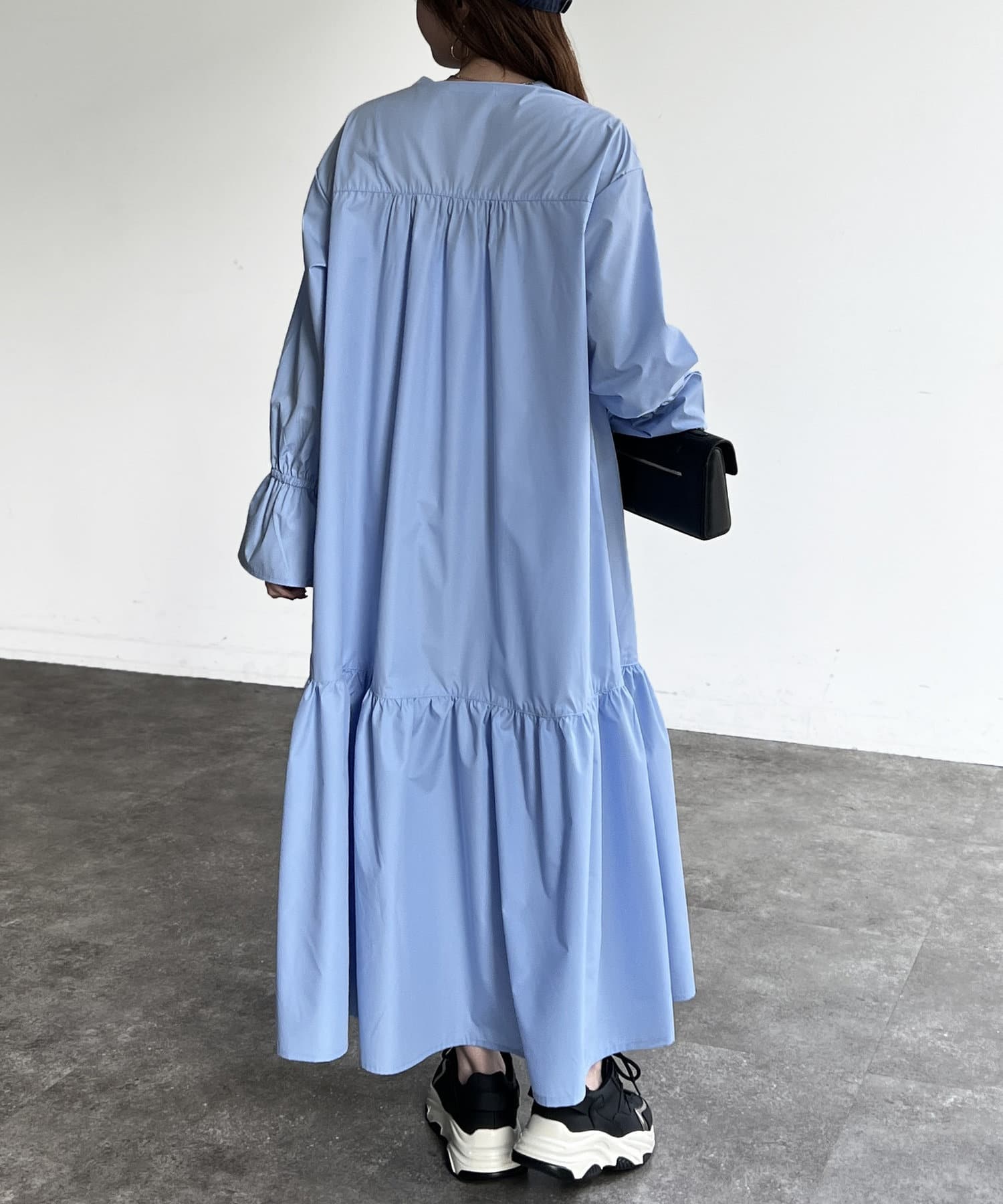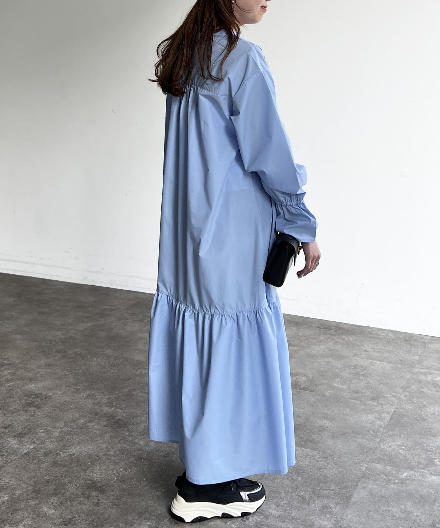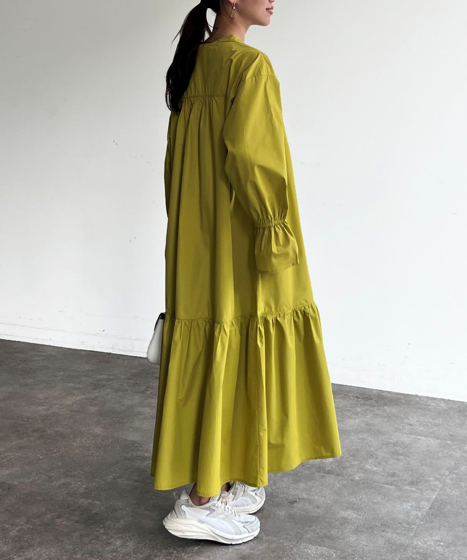 裾に向かって広がりの出るシルエットで、切り替えのティアードシルエットが大人ガーリーな雰囲気を醸し出してくれます。